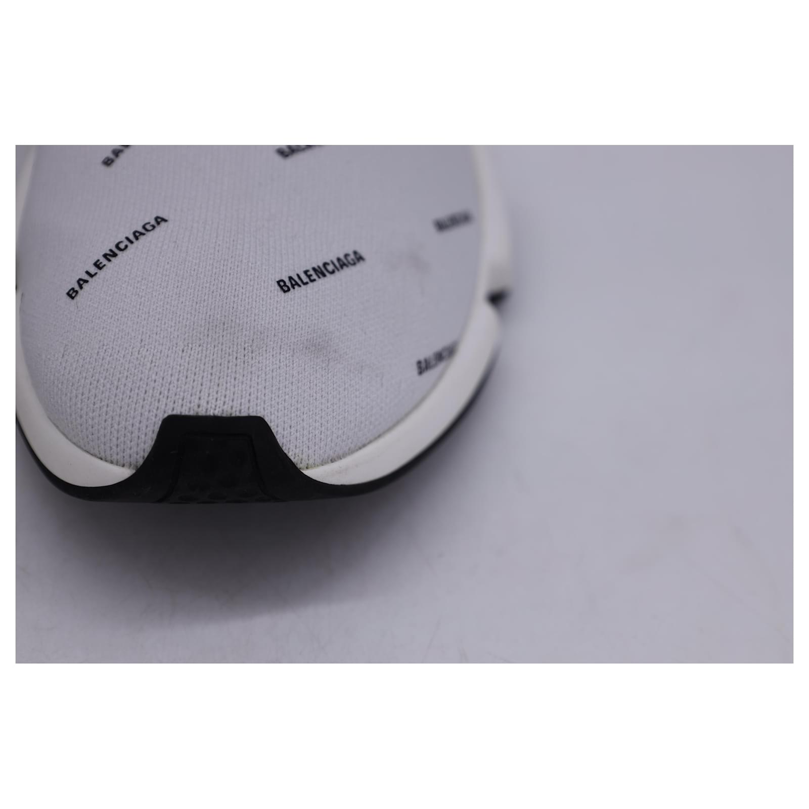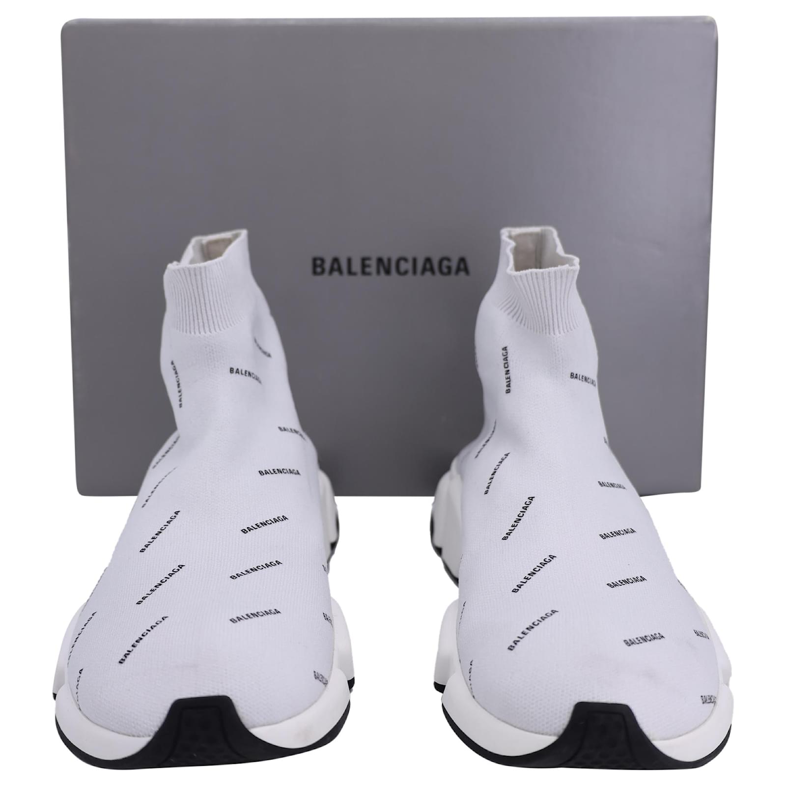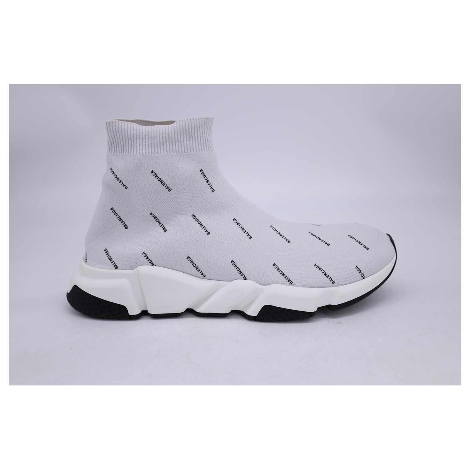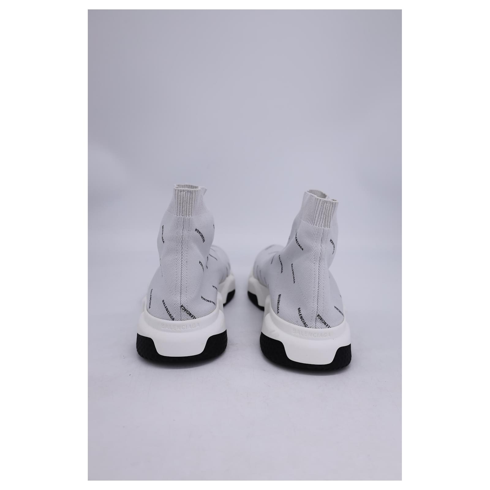 Balenciaga Speed All Over Logo Knitted High-Top Sneakers in White Polyester