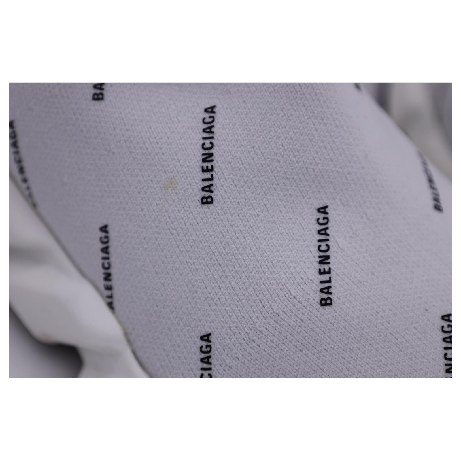 Step into the future of fashion with the Balenciaga Speed All Over Logo Knitted High-Top Sneakers in pristine white polyester. These cutting-edge sneakers feature a sleek, sock-like silhouette adorned with the iconic Balenciaga logo, making a bold statement with every step. Crafted from high-quality knitted polyester, they offer unparalleled comfort and flexibility, allowing for easy movement throughout your day. The chunky sole not only provides excellent cushioning but also adds a contemporary edge to your look. Perfect for elevating casual outfits or making a striking impression, these high-top sneakers are a must-have for any style-savvy individual looking to embrace modern luxury.