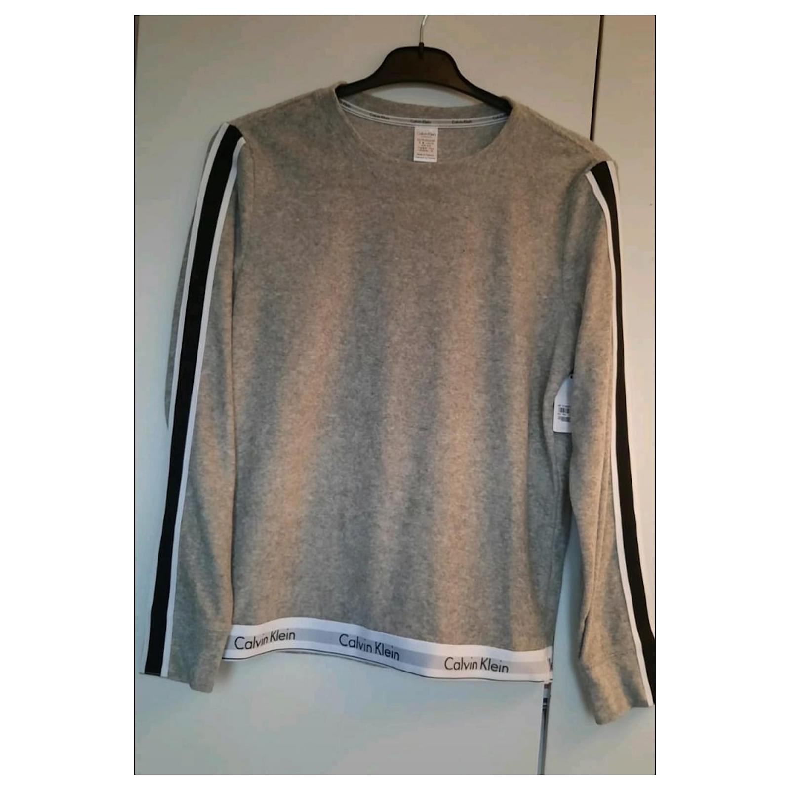 Calvin Klein sweatshirt size XS color: gray ,white and black stripes on the sleeves. New with tag 80% brushed jersey cotton.
