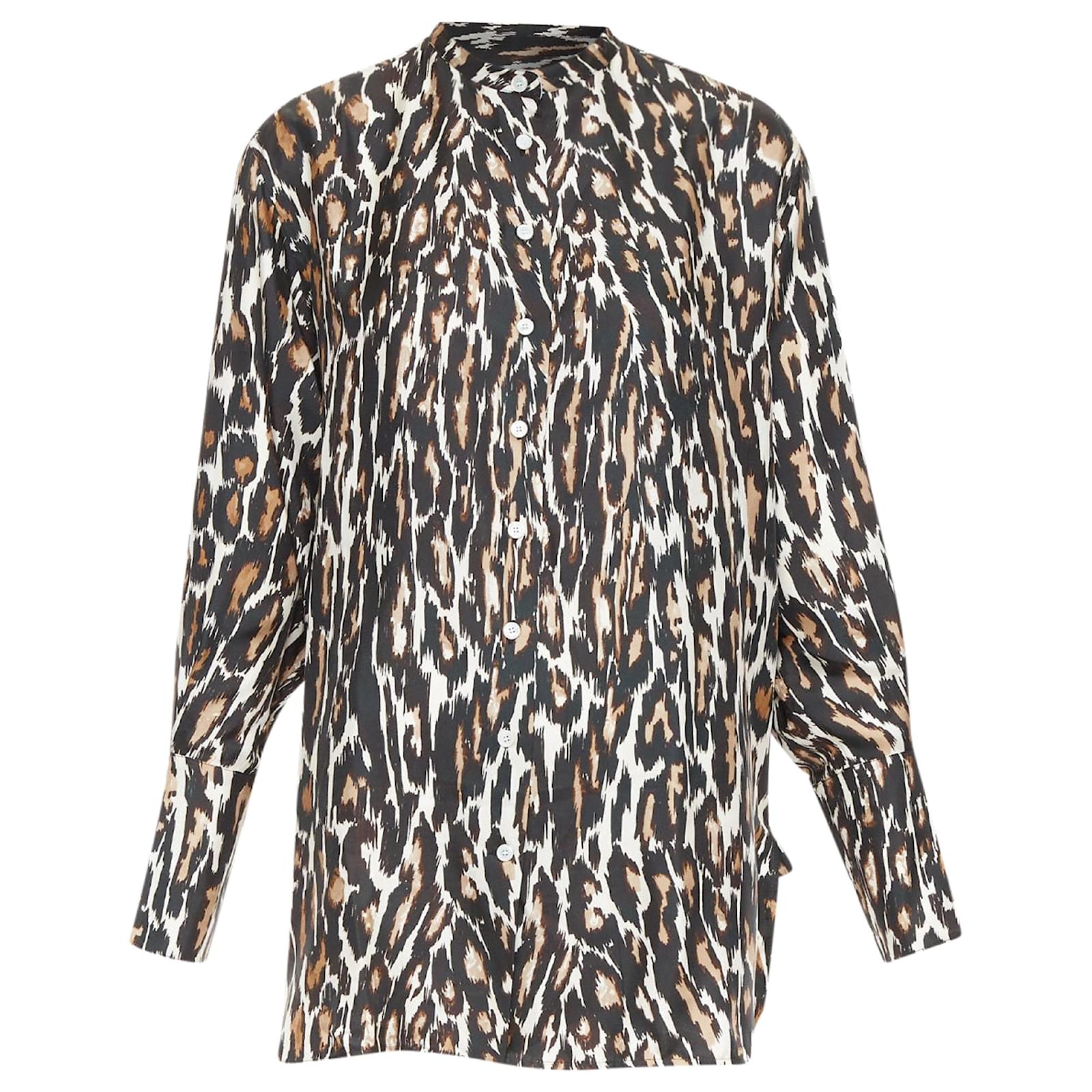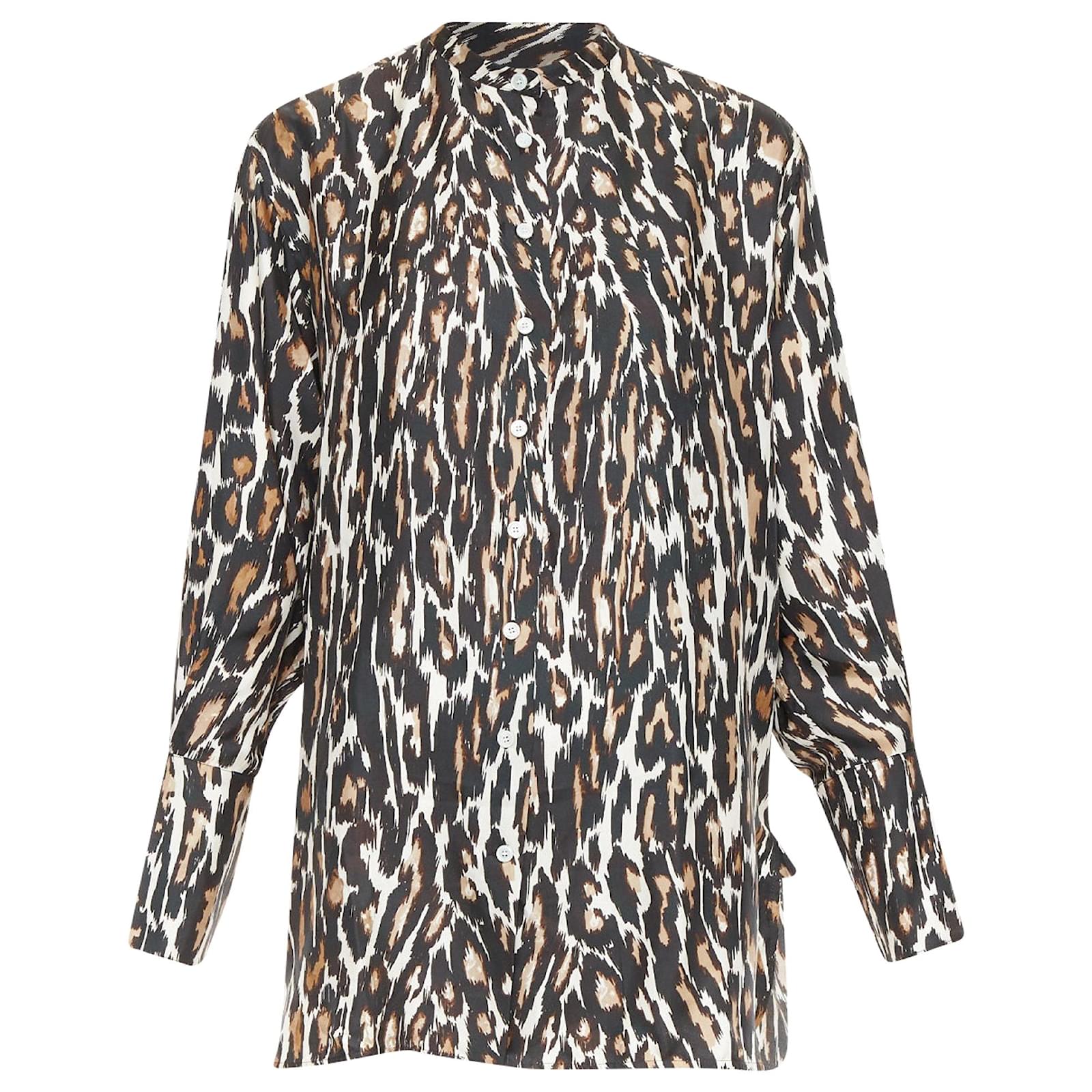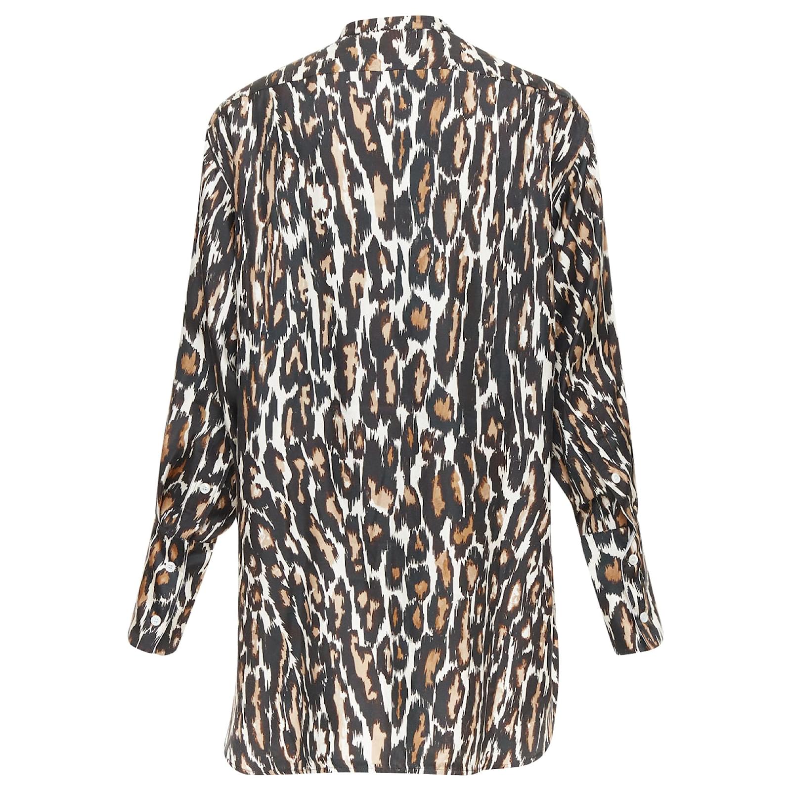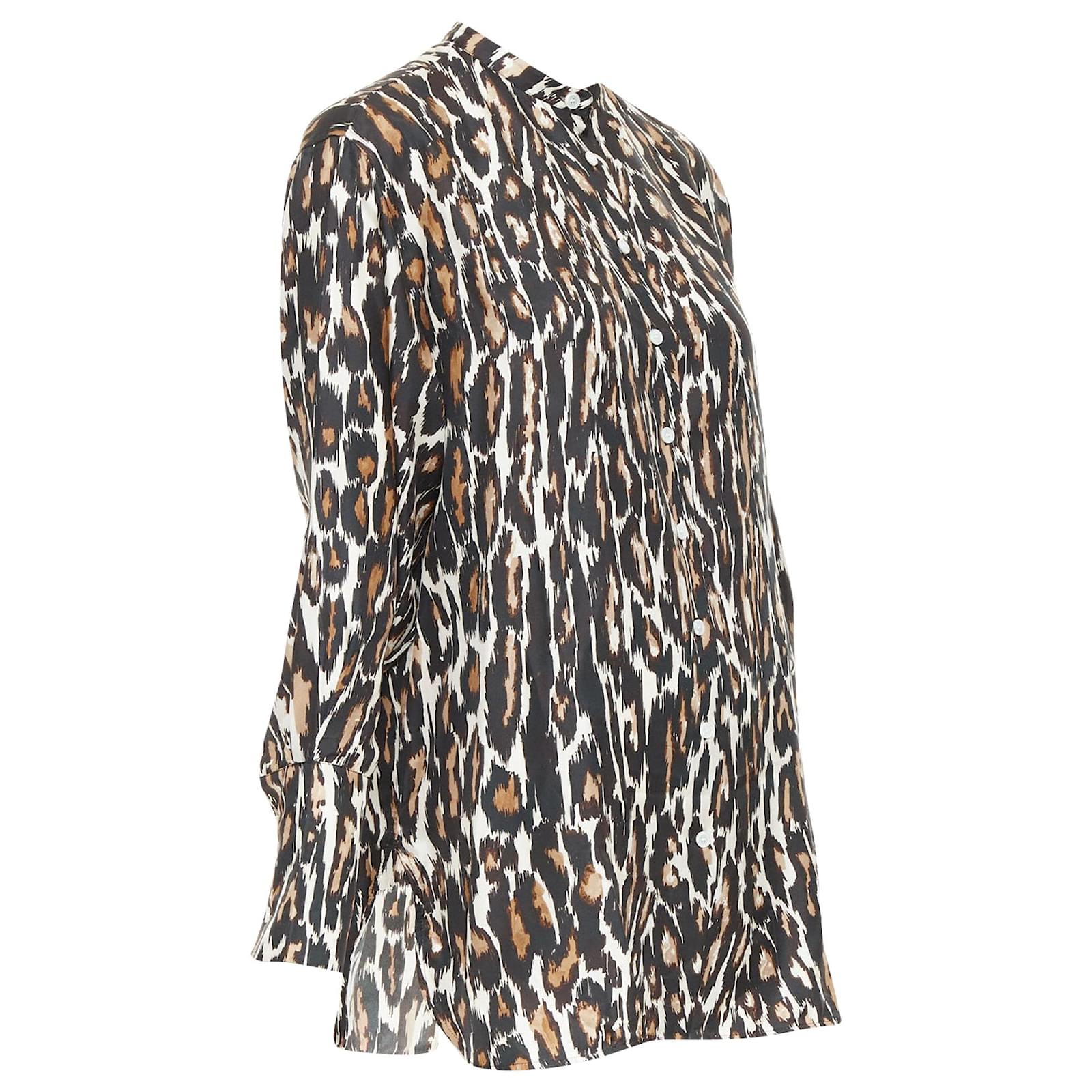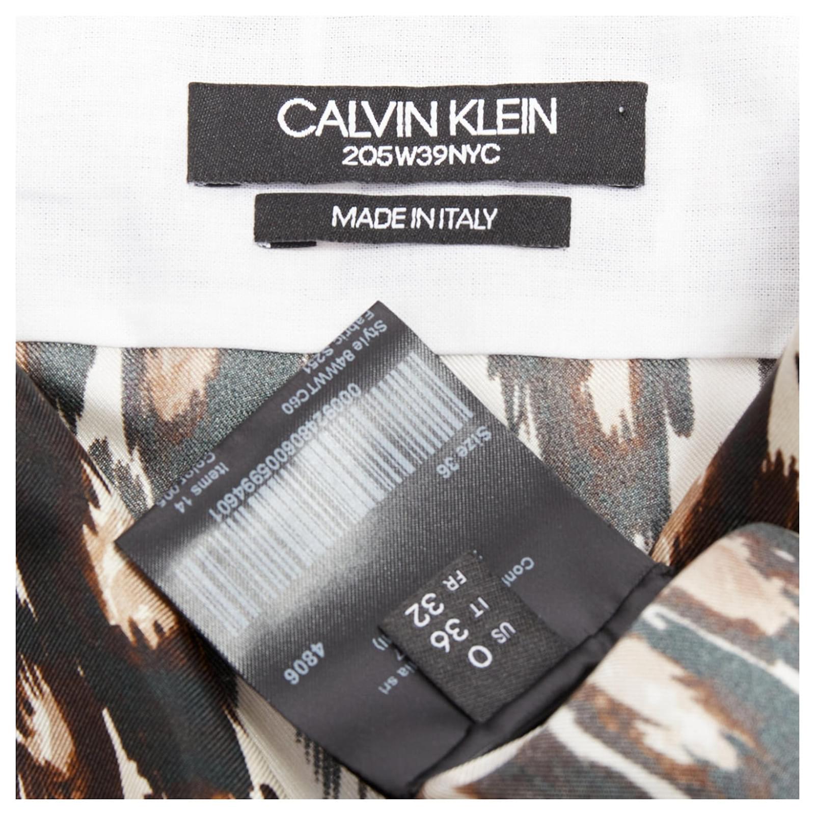 CALVIN KLEIN 205W39NYC Raf Simons 100% silk brown black leopard print shirt US0 XSReference: SNKO/A00600Brand: Calvin KleinDesigner: Raf SimonsMaterial: SilkColor: Brown, CreamPattern: LeopardClosure: ButtonExtra Details: Animal print shirt with a jewel neckline and puff sleeves. Features a high-low hemline.Made in: ItalyCONDITION:Condition: Excellent, this item was pre-owned and is in excellent condition. Comes with: Style code present (Generic) SIZINGDesigner size: US0Size reference: US0 / UK6 / IT38 / FR34 / XXS-XSSize note: This item fits larger to size.MEASUREMENTS: Shoulder to shoulder: 43cm / 16.8"Chest: 56cm / 21.8"Waist: 56cm / 21.8"Hip: 58cm / 22.6"Length: 79cm / 30.8"Sleeve length: 57cm / 22.2" Calvin Klein. This Calvin Klein item is authentic.Measurments: length: 790 mm strap length: 0 mm handle drop: 0 mm