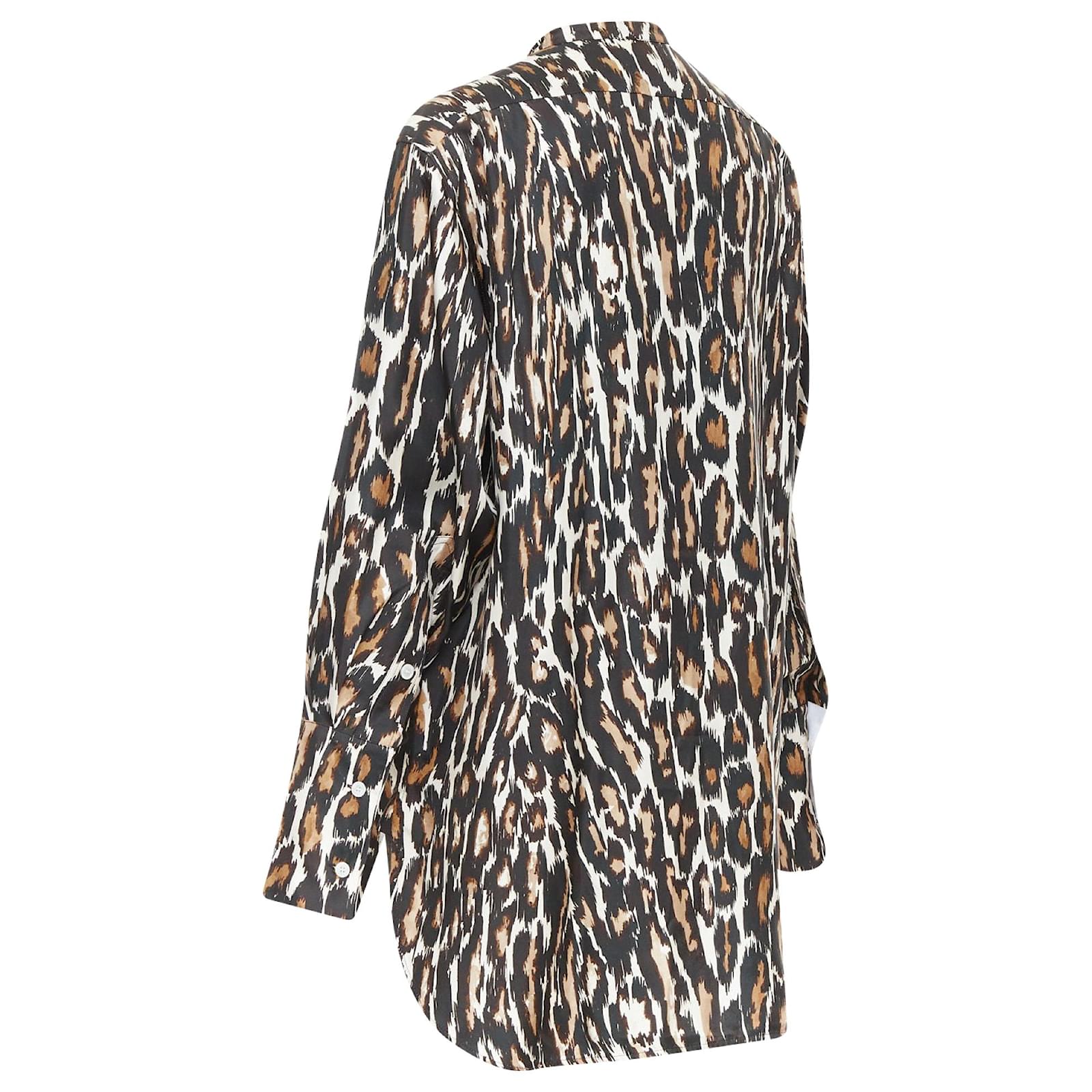 CALVIN KLEIN 205W39NYC Raf Simons silk brown black leopard print shirt US0 XS