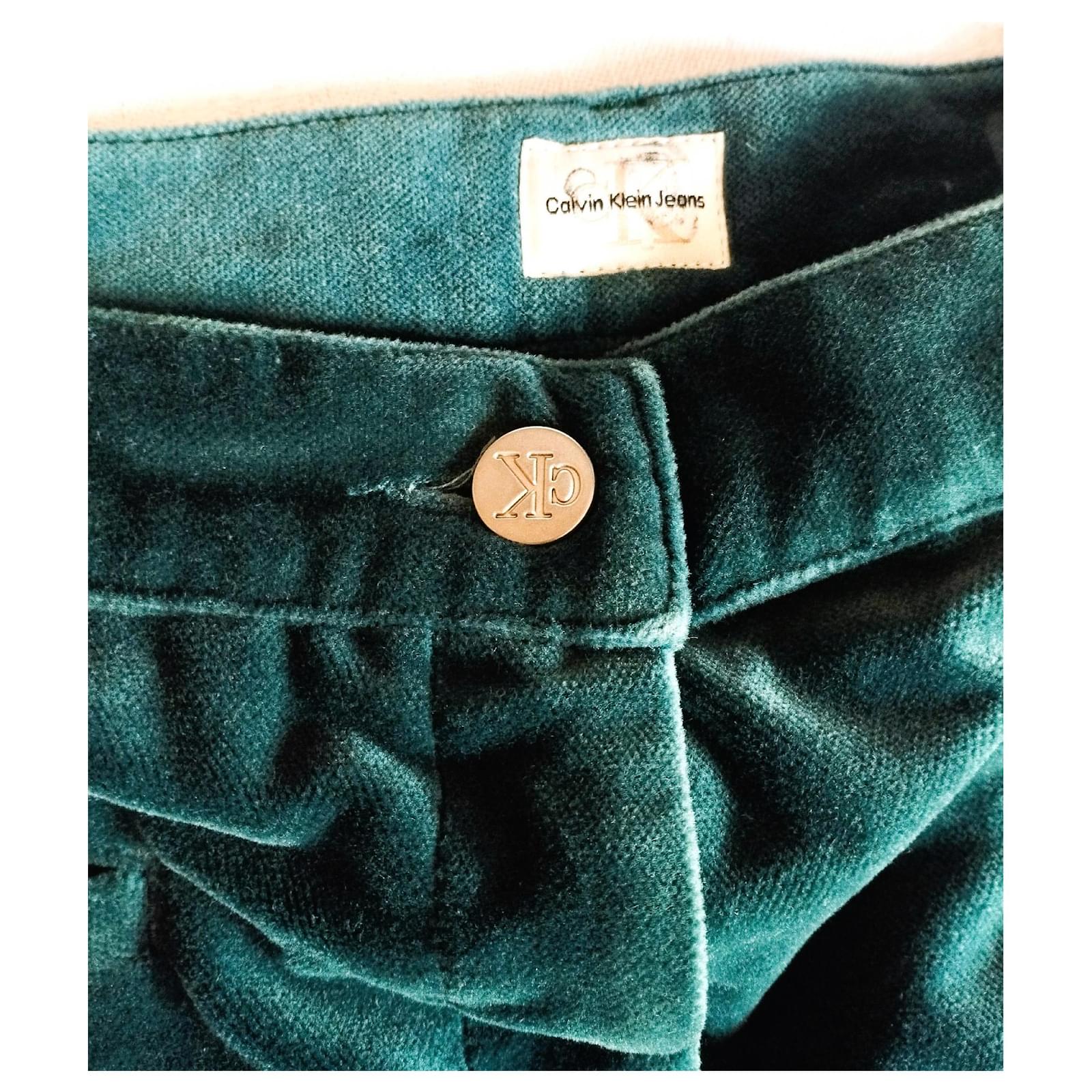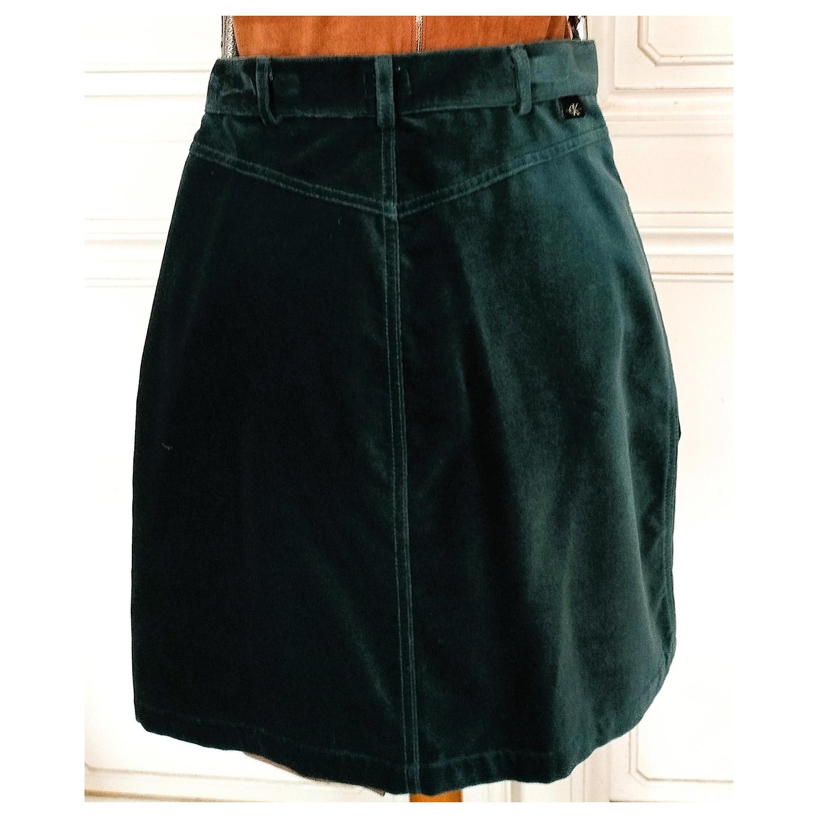CALVIN KLEIN SKIRT SKIRT TRENDY PANNE VELVET EMERALD W 28 OR T 34 Green