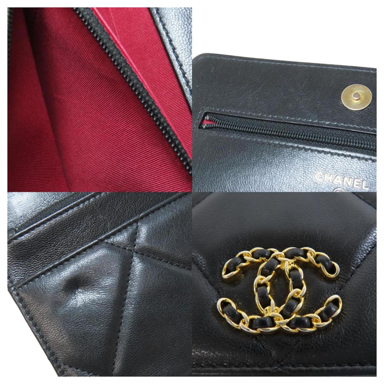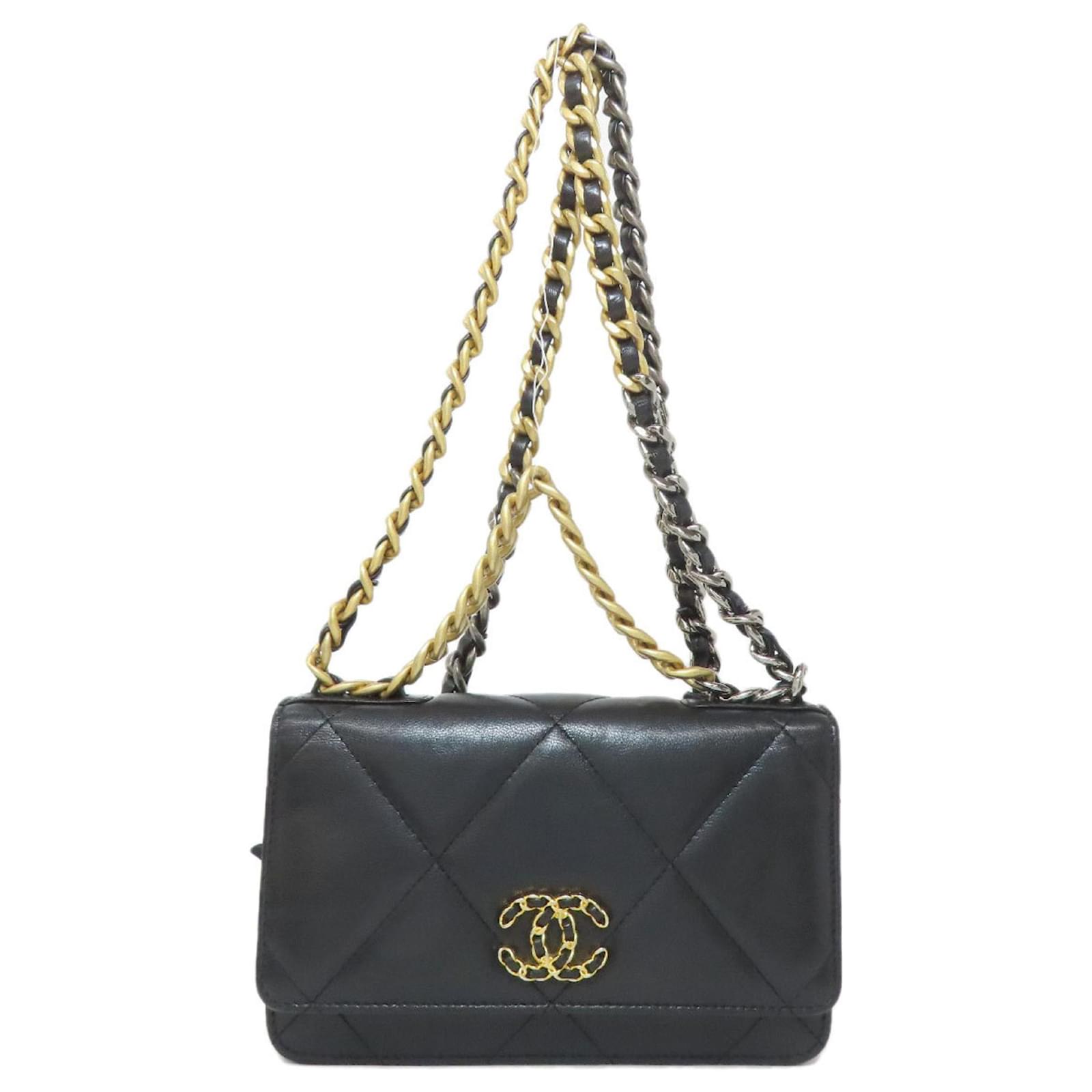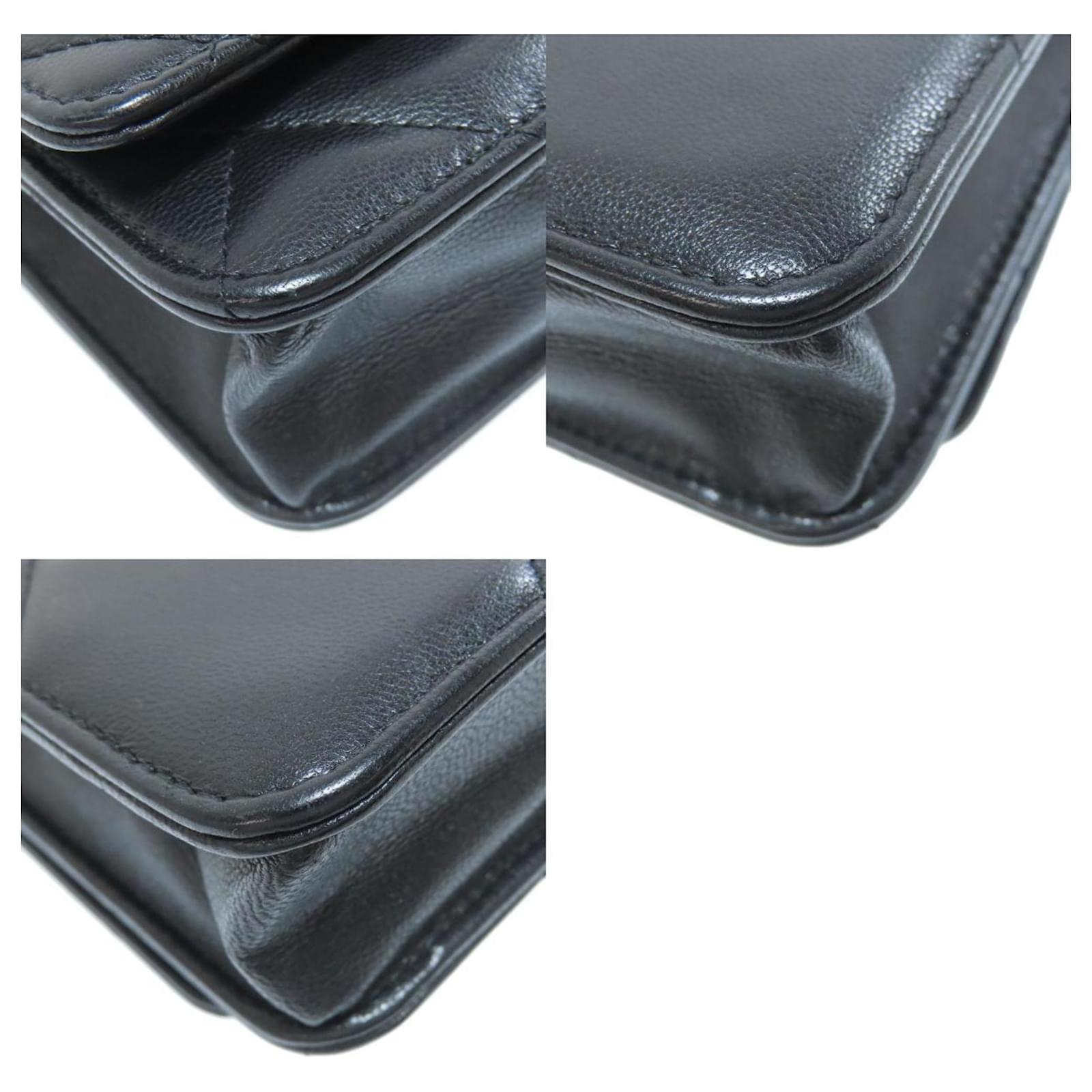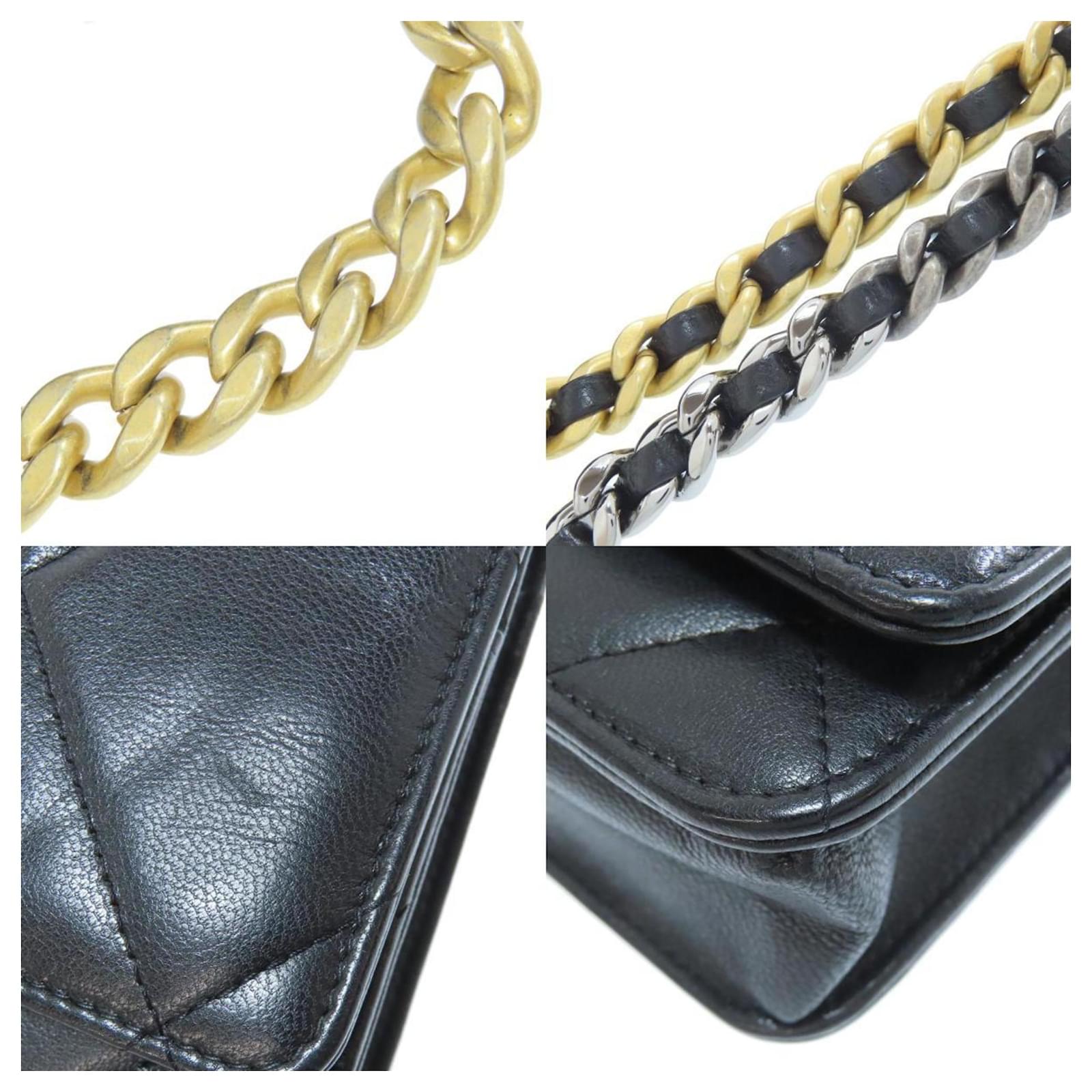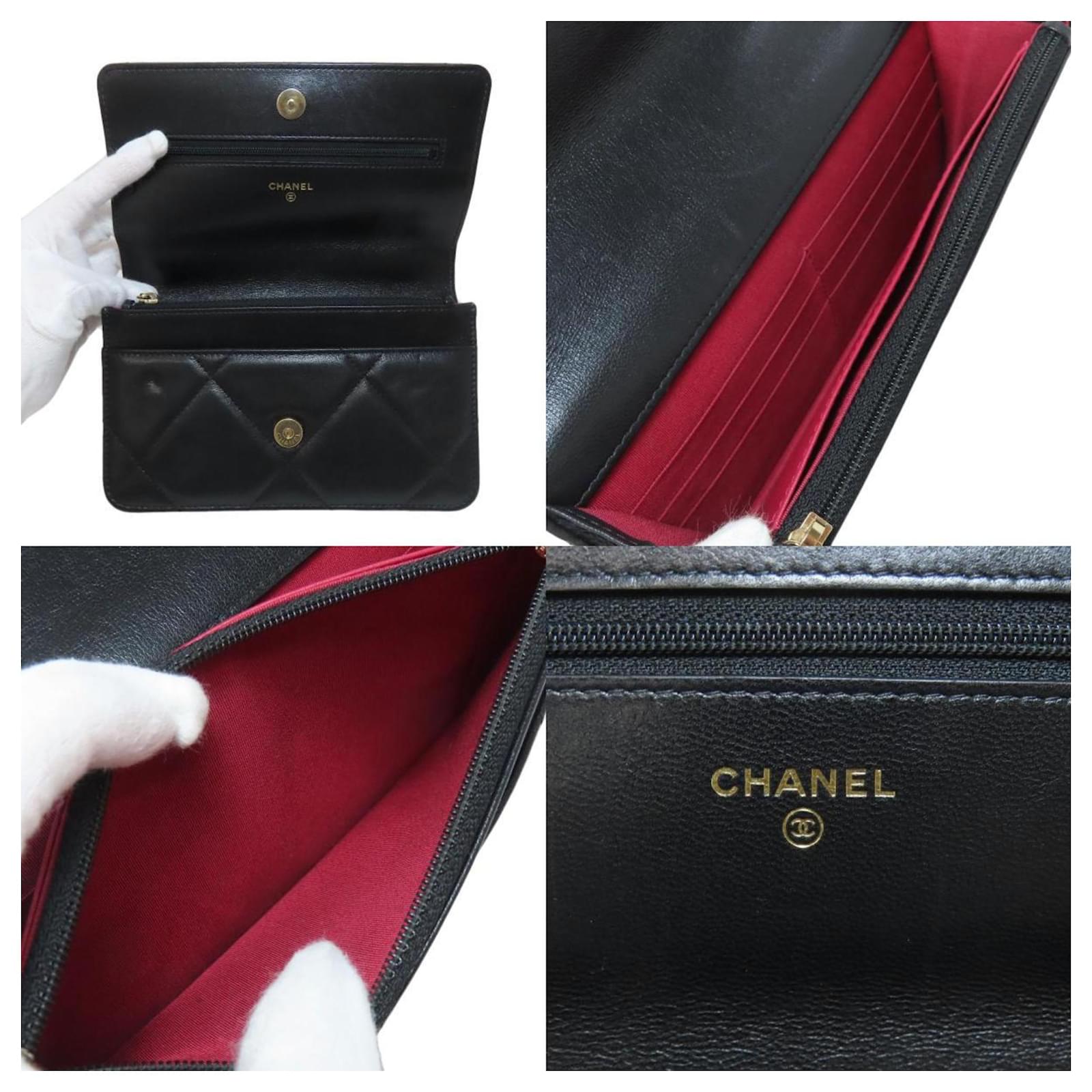 This Chanel chain wallet is crafted from black lambskin leather, presenting a sophisticated design suitable for women. It measures 12cm x 19cm x 4cm (4.72'' x 7.48'' x 1.57'') and features a shoulder strap for versatile carrying options.