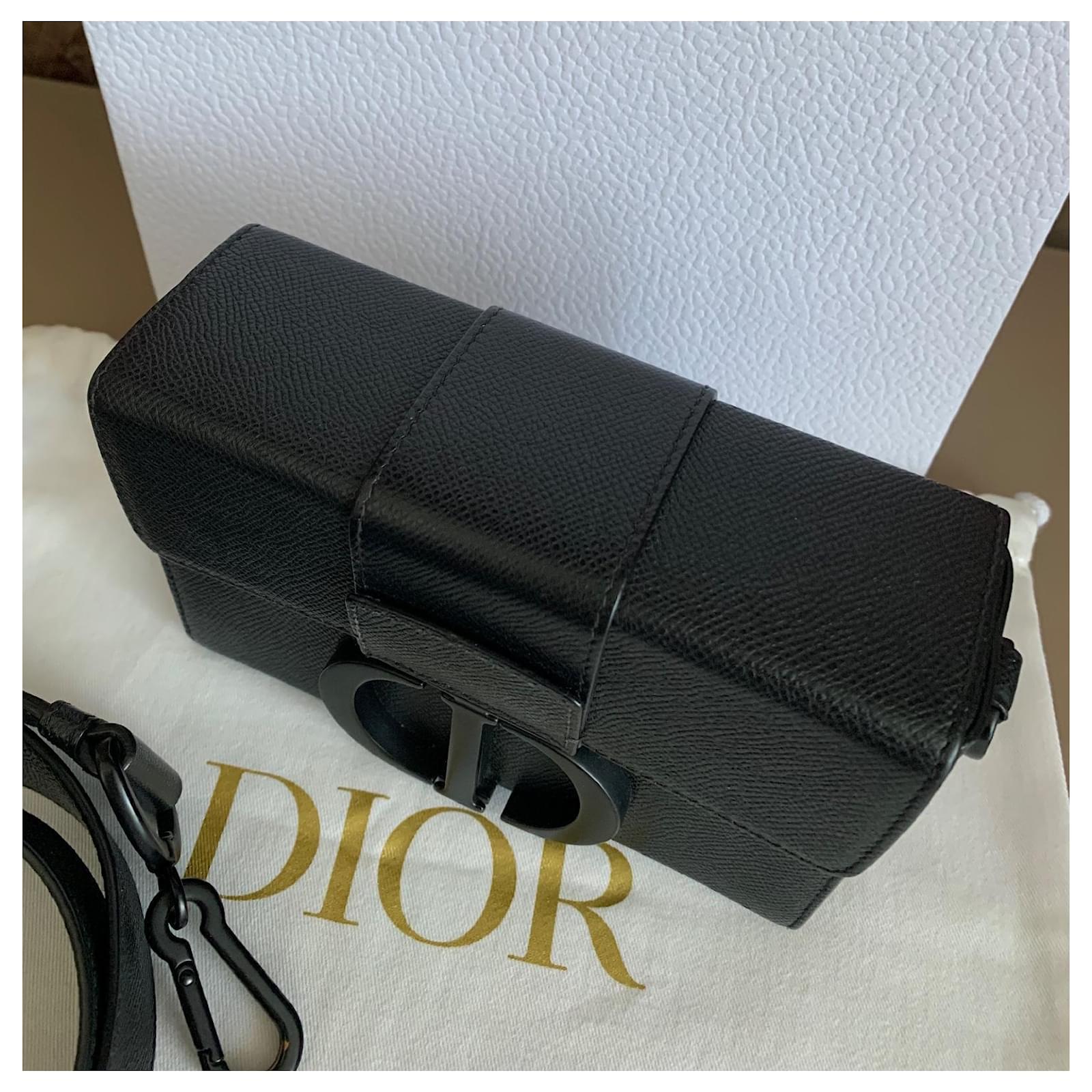 Christian Dior 30 Montaigne Box bag in black grained leather, matte black hardware.