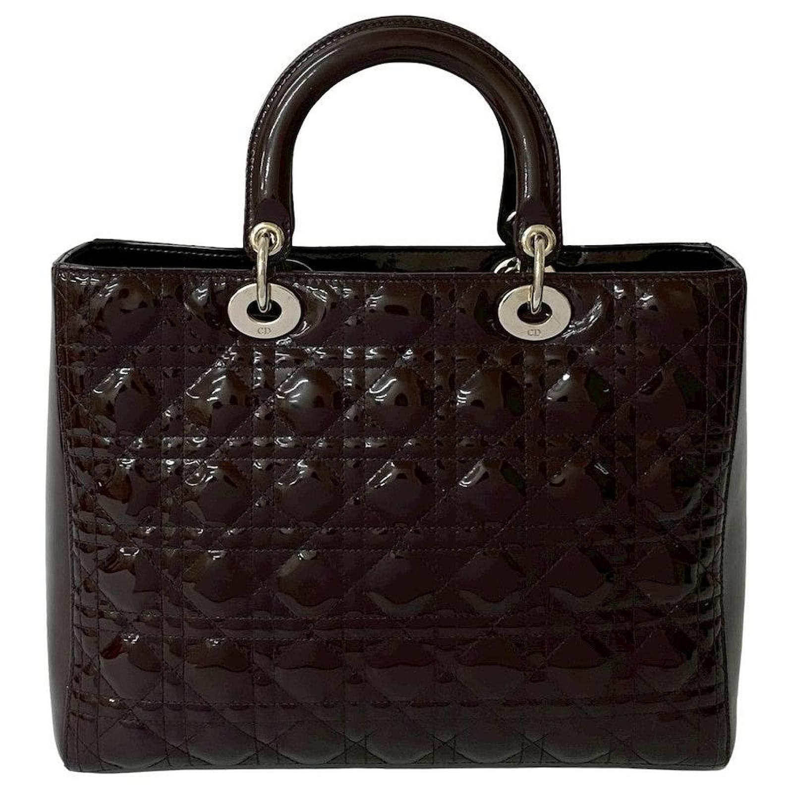 Christian Dior Lady Dior Patent Leather 2way Bag Brown