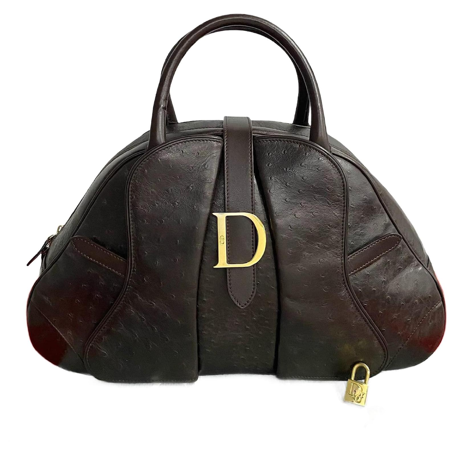 Christian Dior Ostrich Handbag Brown