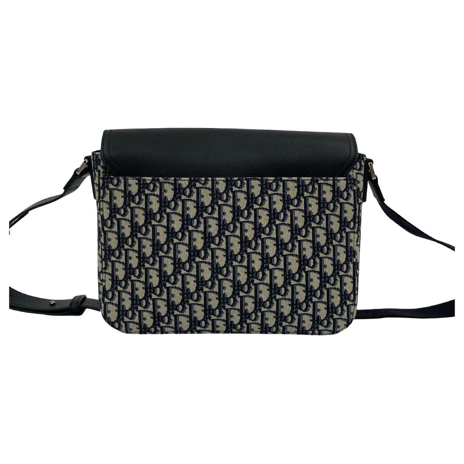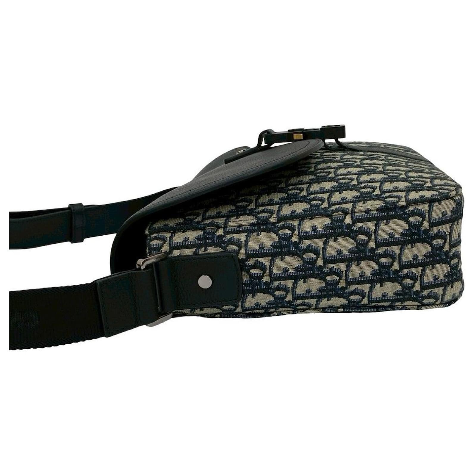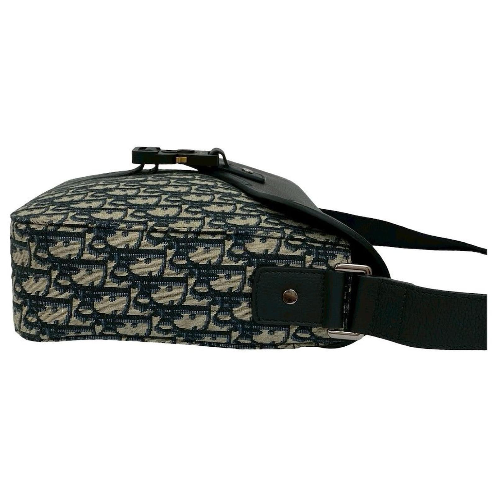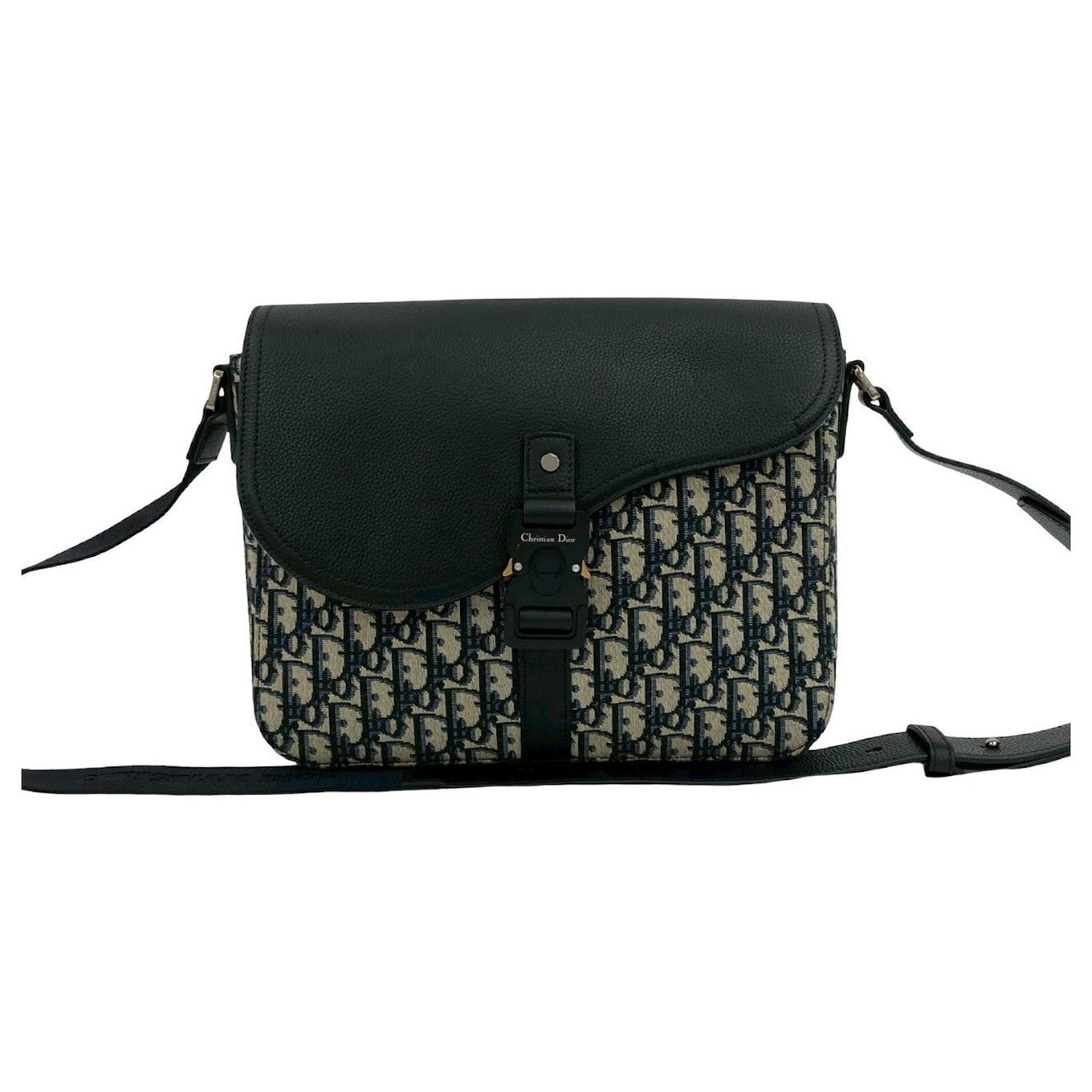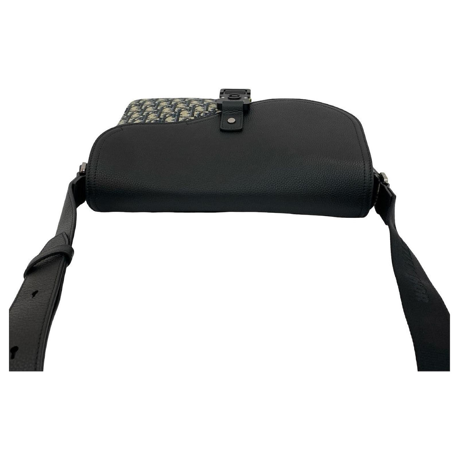 Christian Dior Saddle Oblique Canvas Leather Shoulder Bag Black