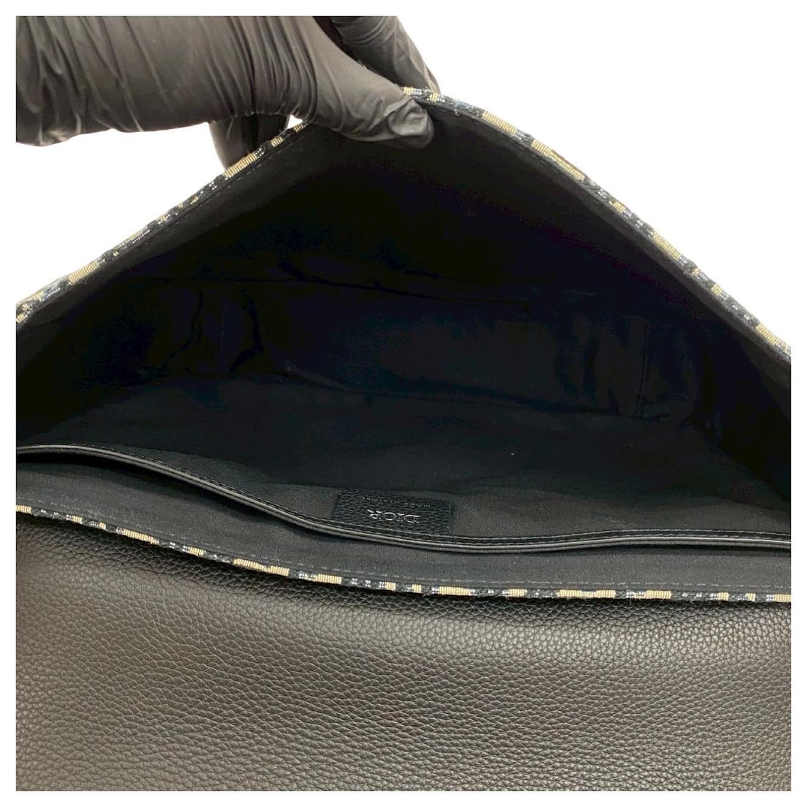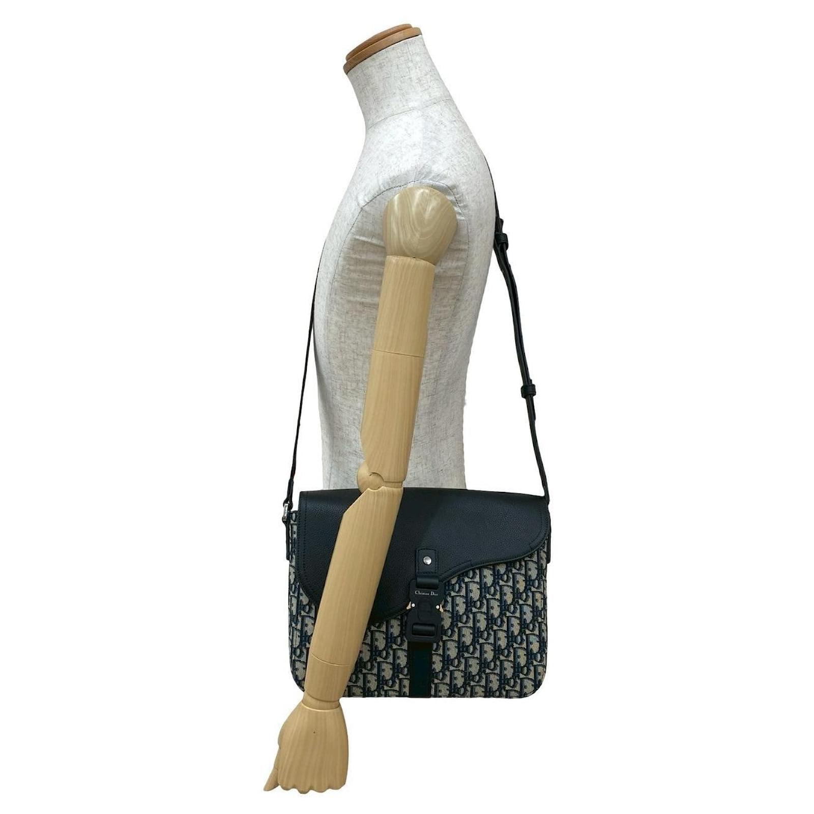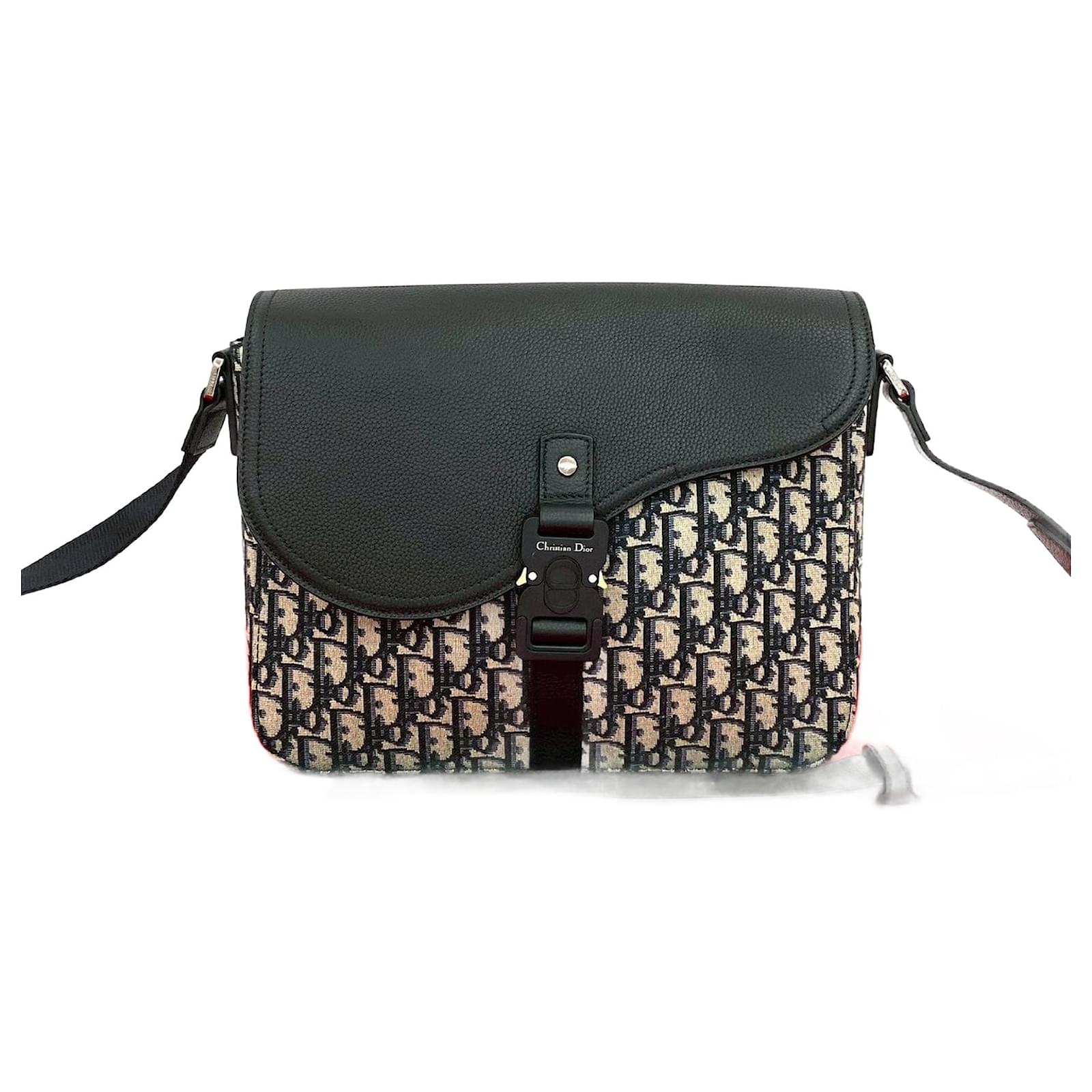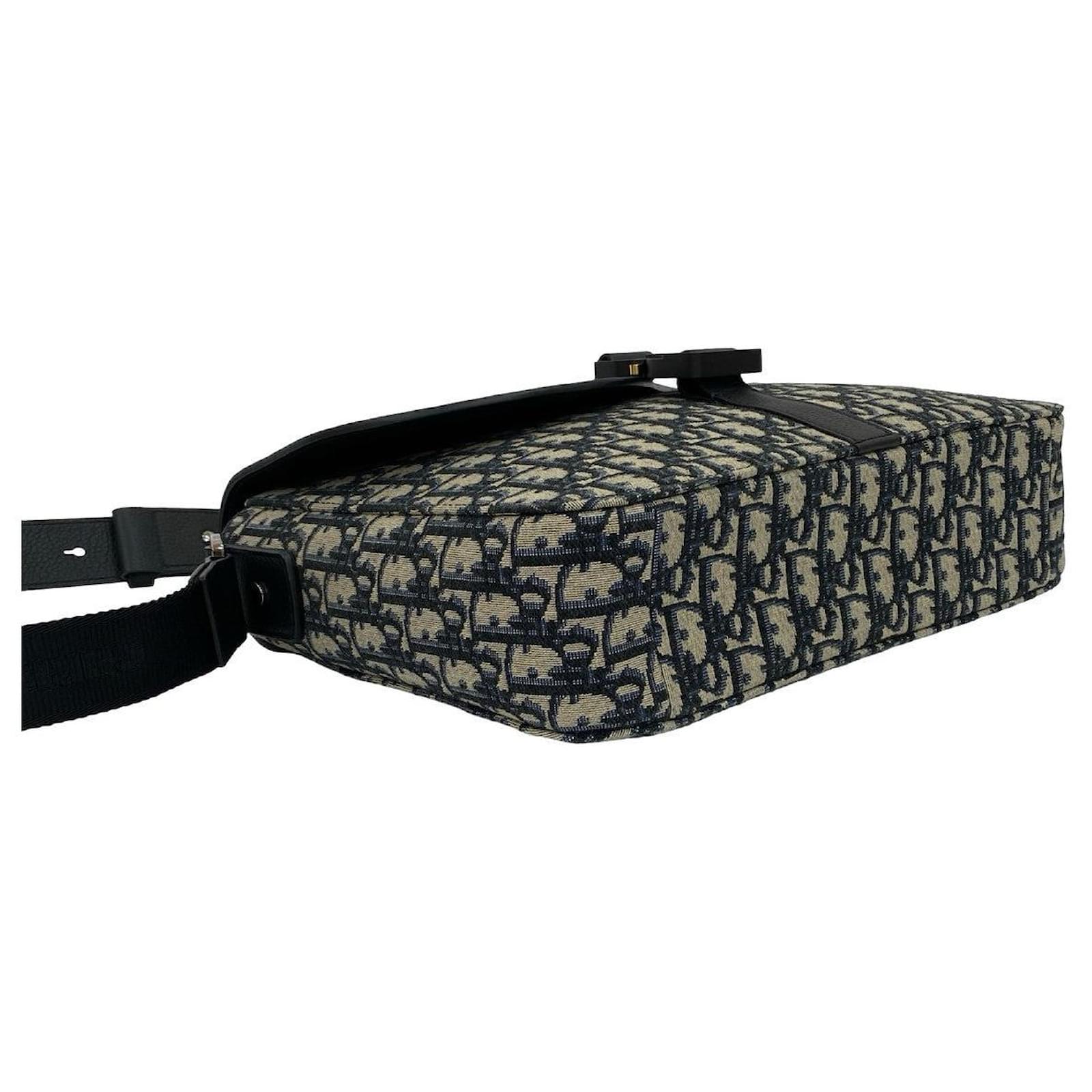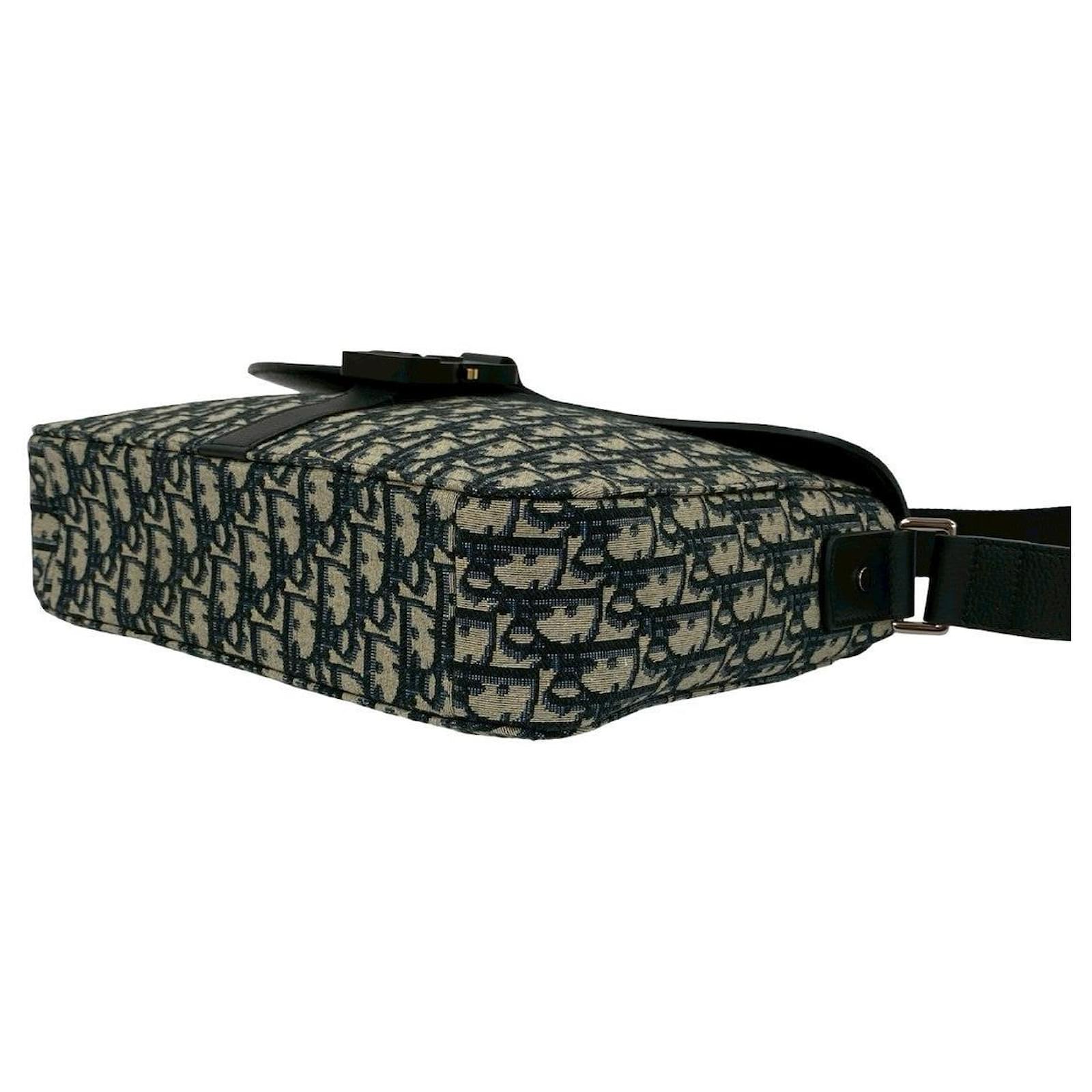 Christian Dior Saddle Oblique Canvas Leather Shoulder Bag Black