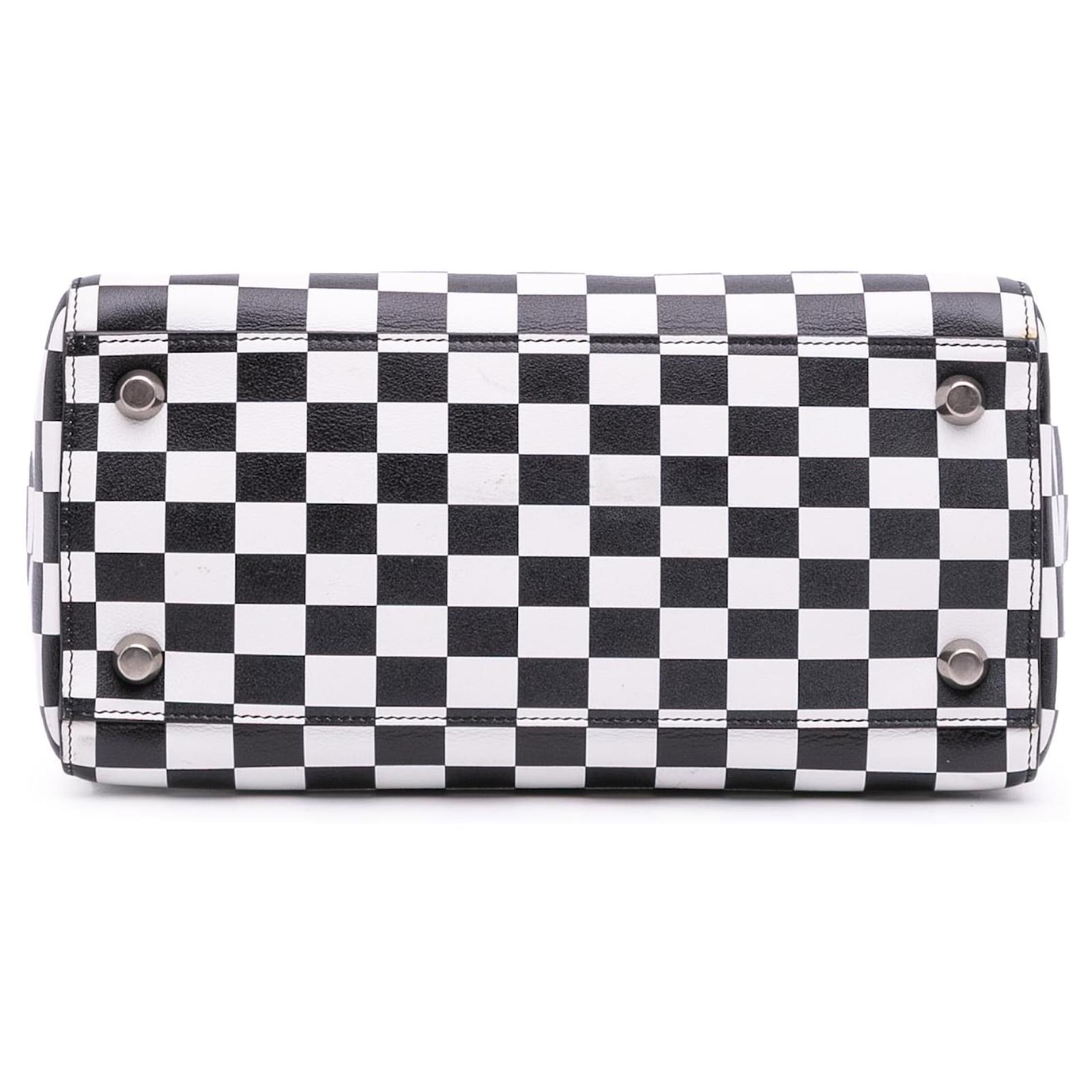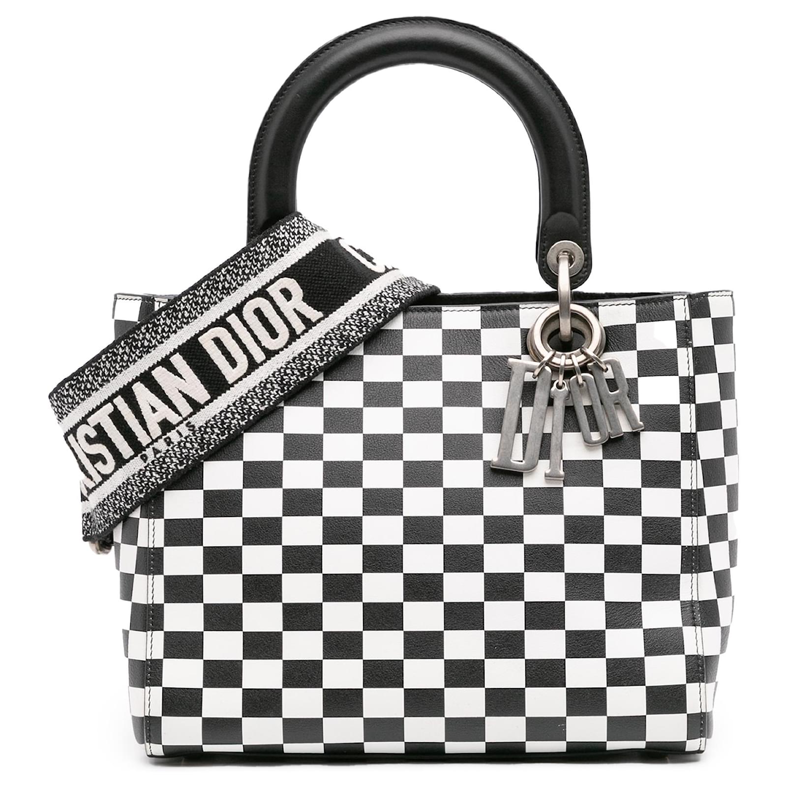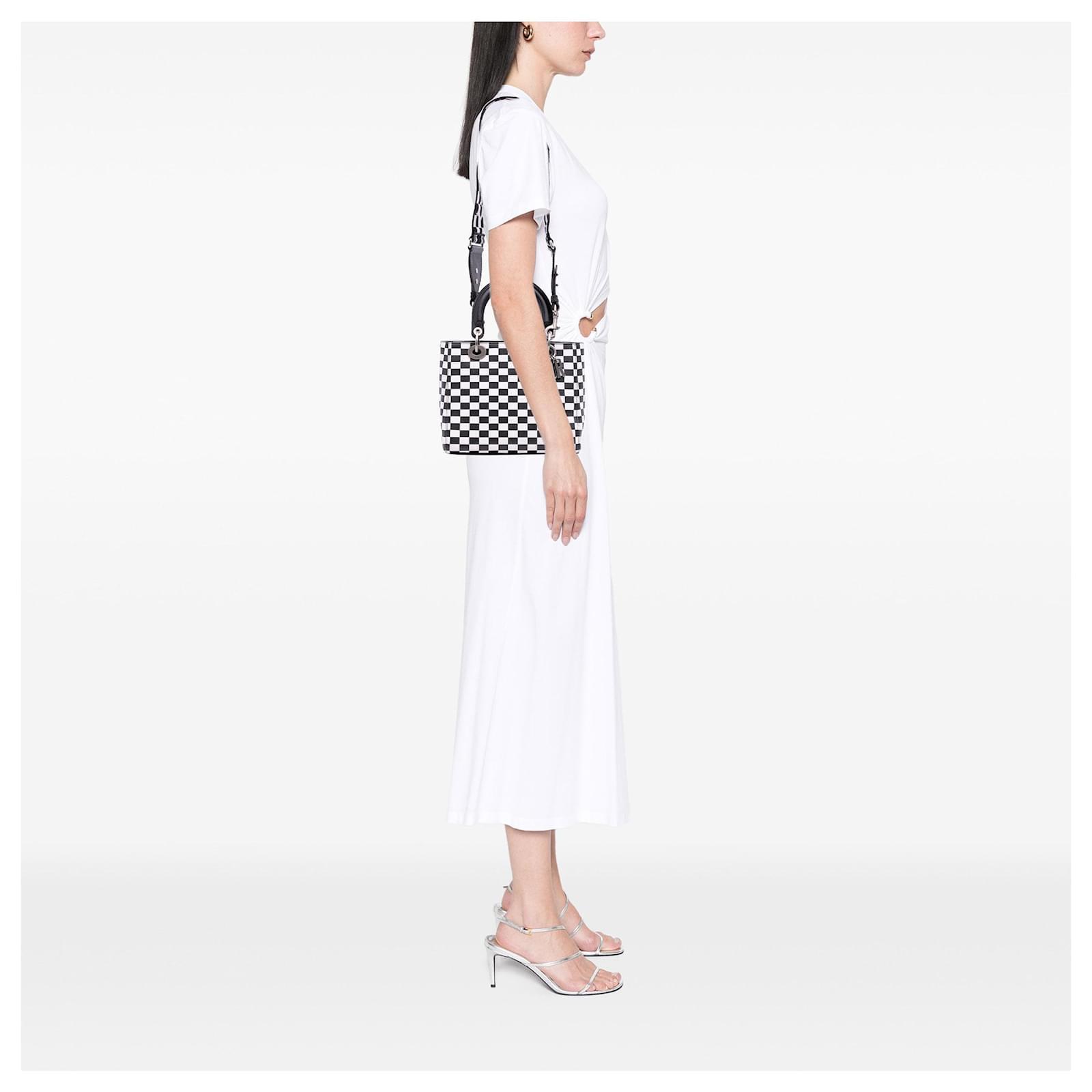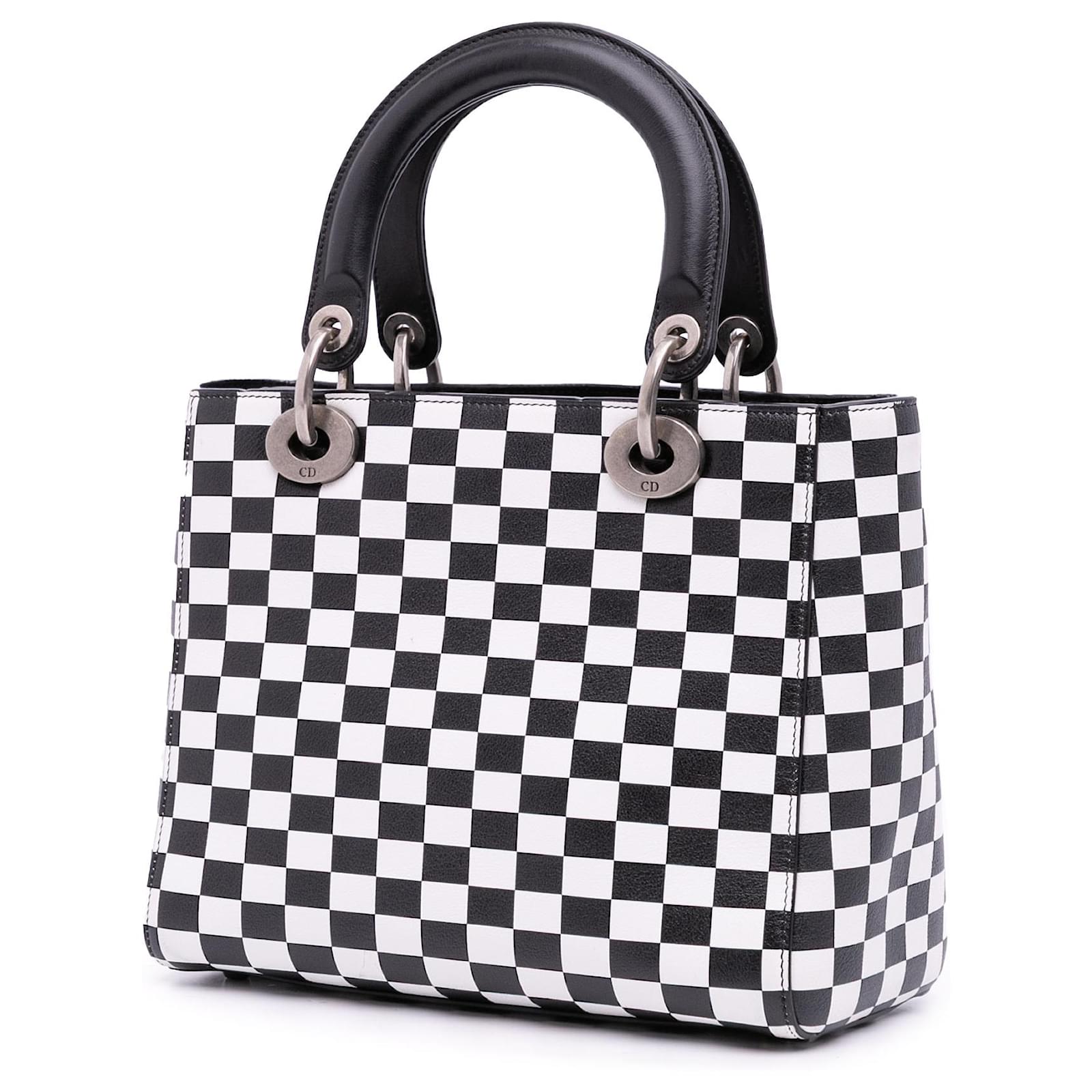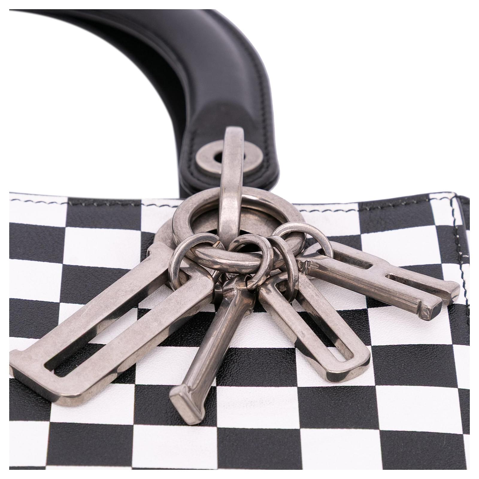 Dior Black Medium Calfskin Checkered Lady Dior White