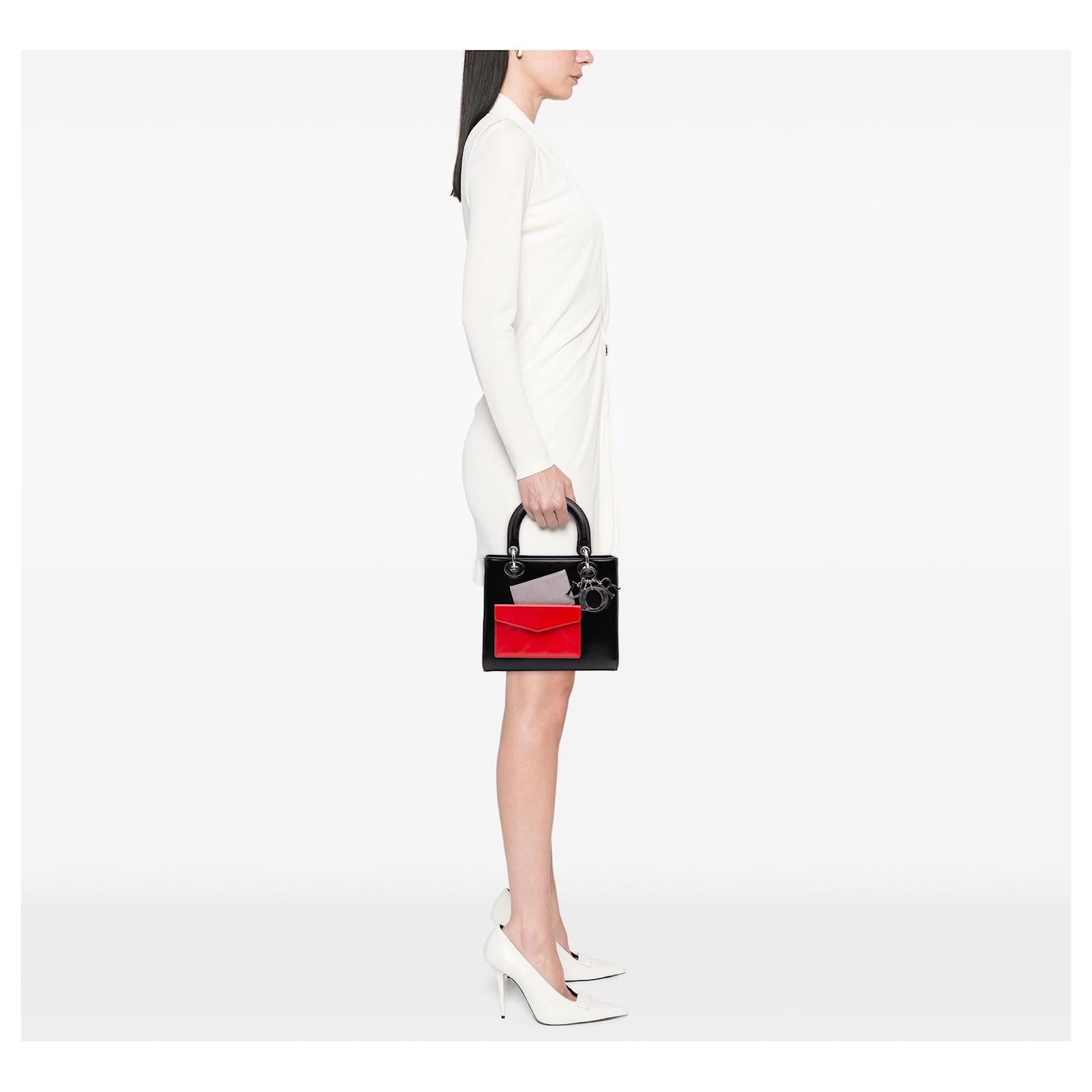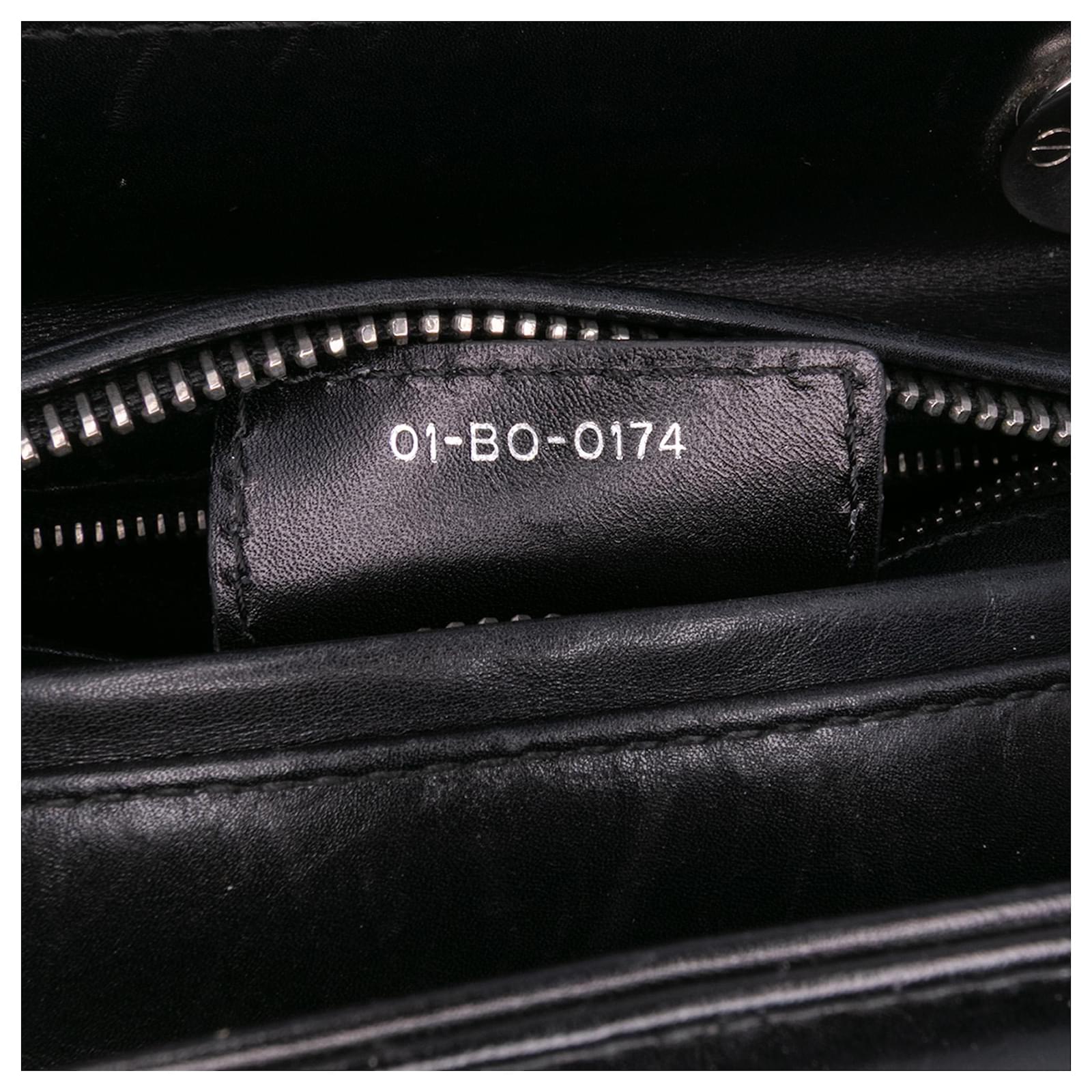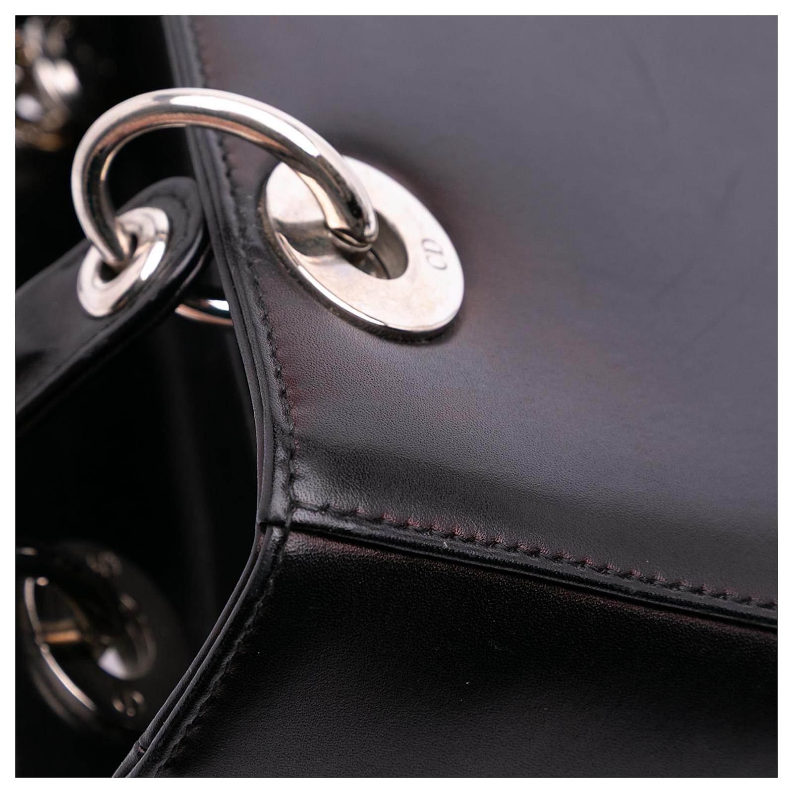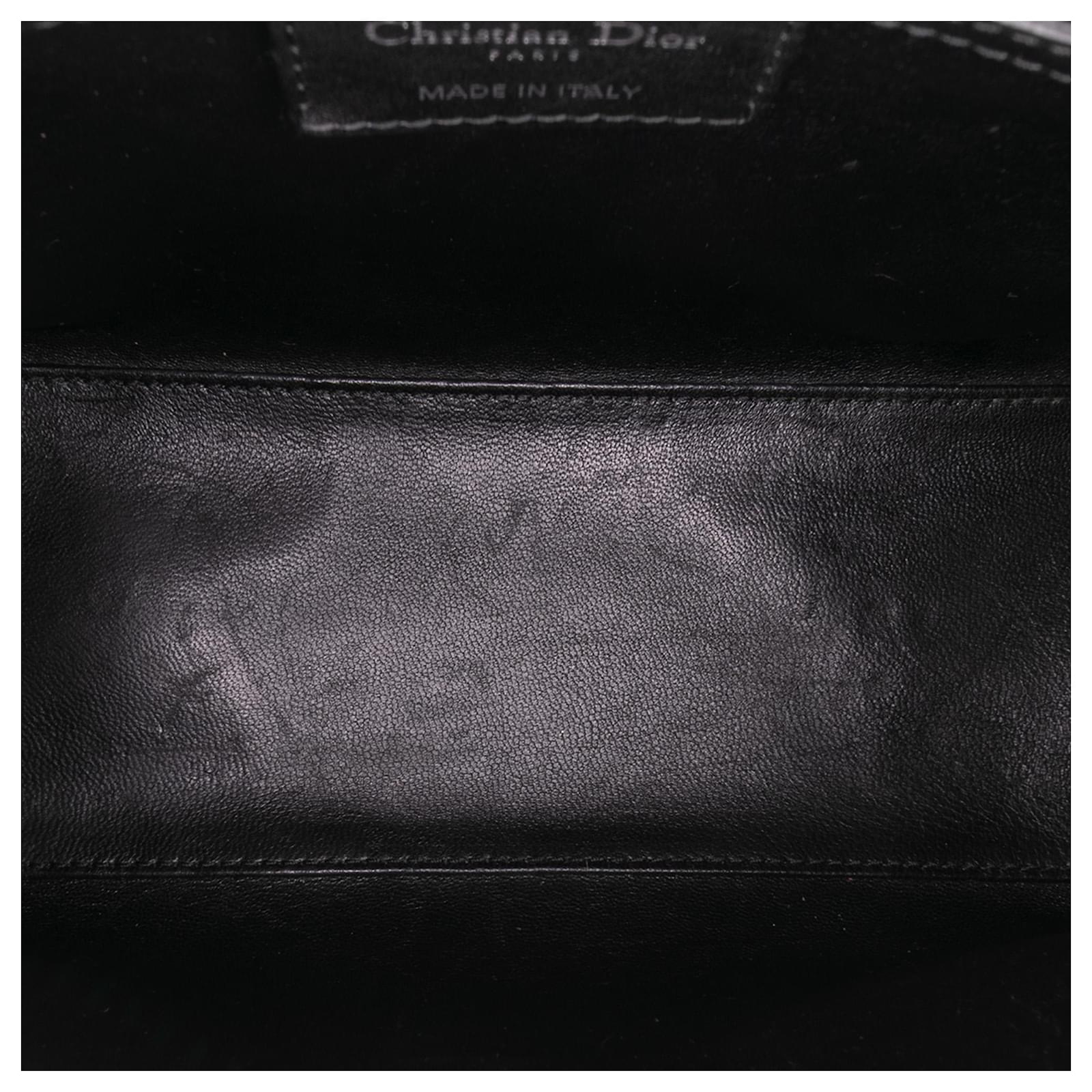 The Lady Dior features a leather body, flat leather top handles, a detachable flat shoulder strap, a top zip closure, and an interior zip pocket. It carries a B+ condition rating.