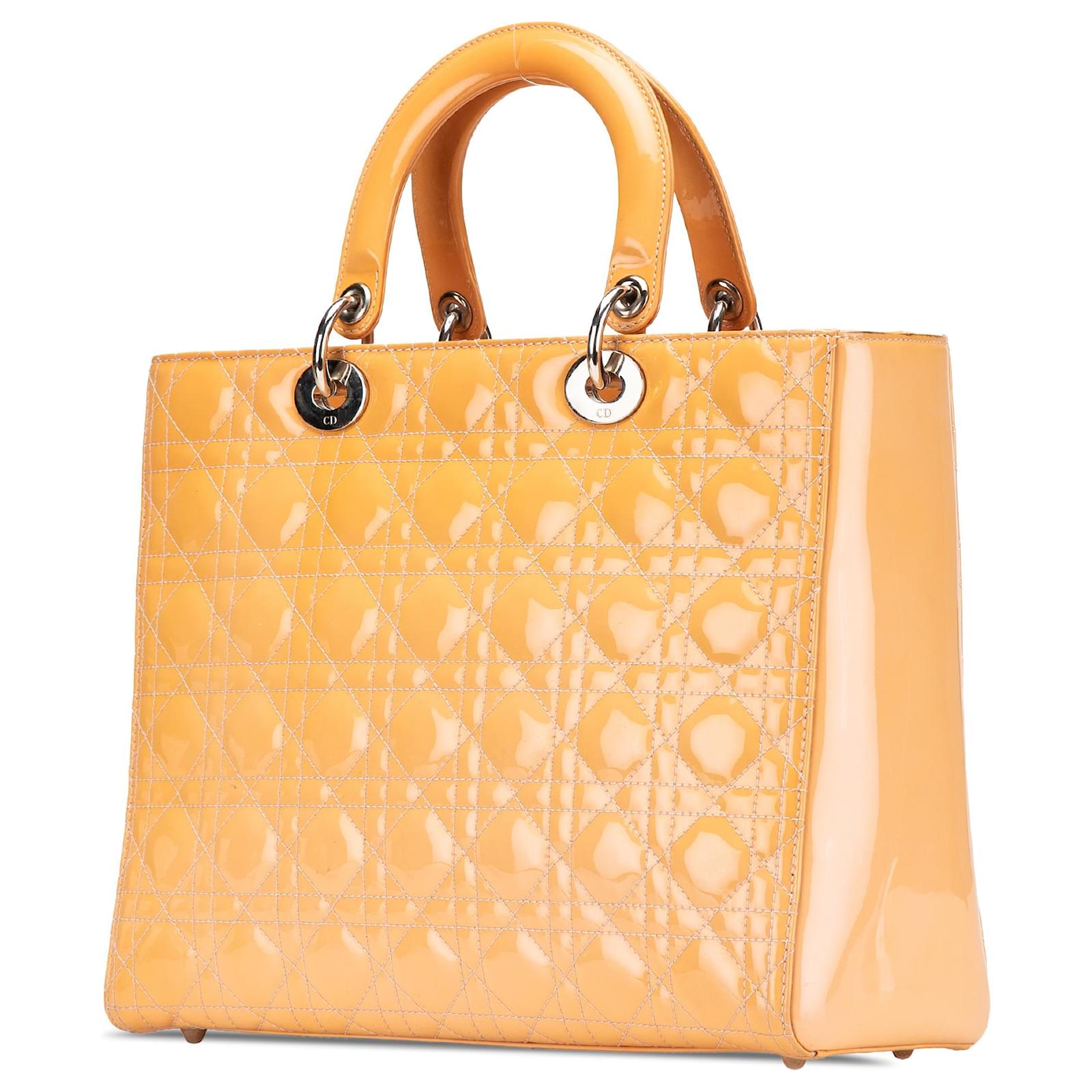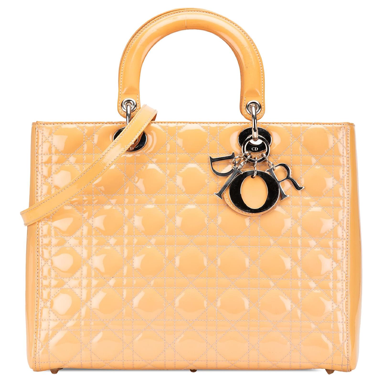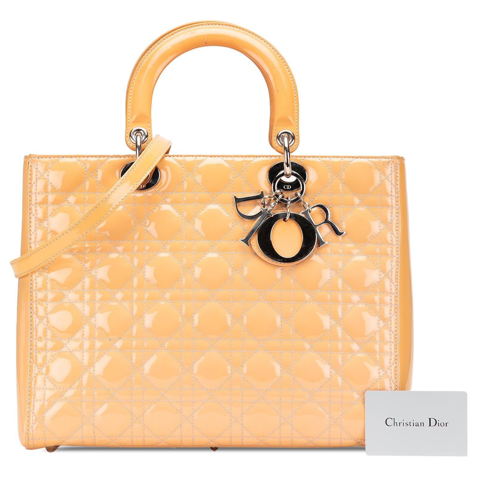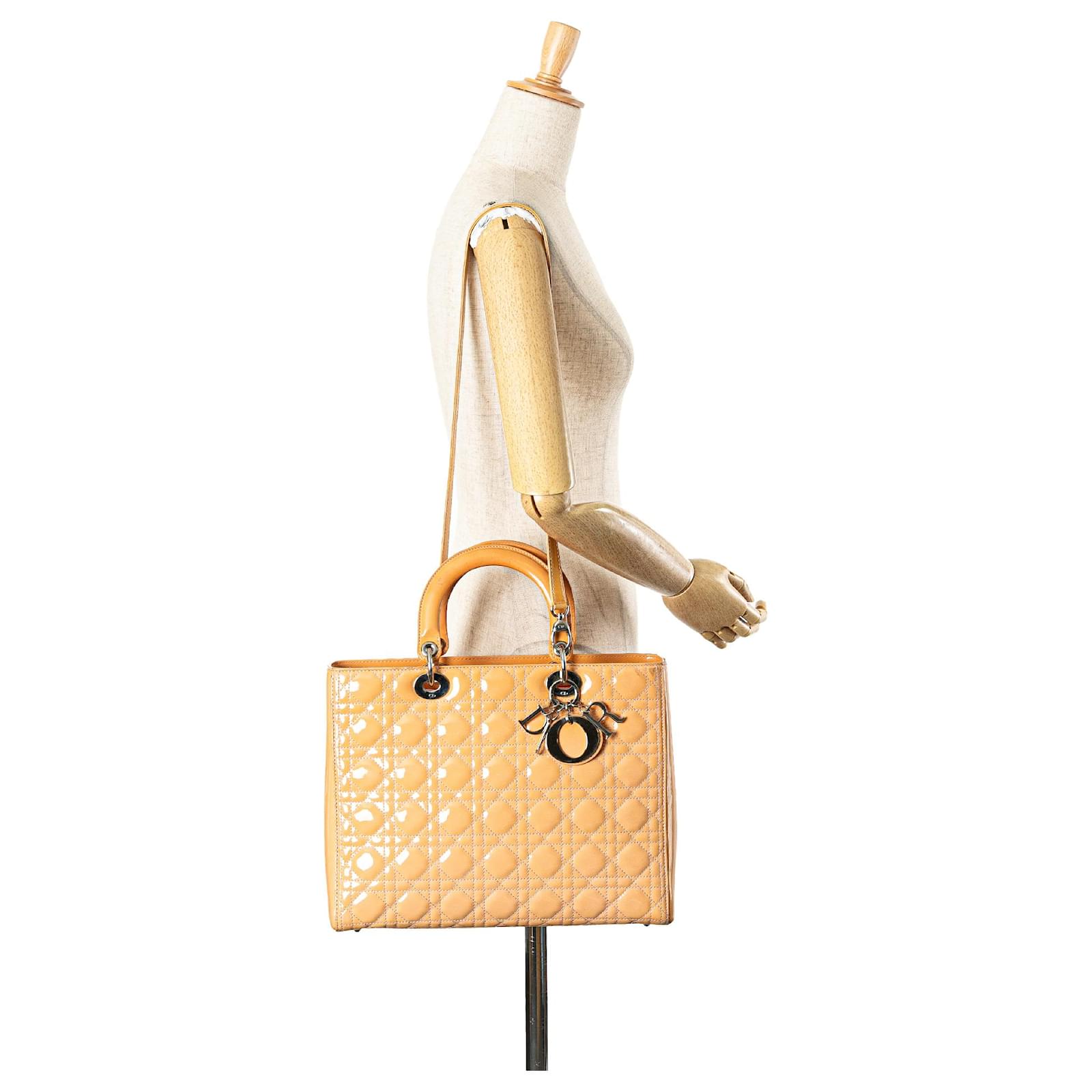 Dior Brown Large Patent Cannage Lady Dior Beige