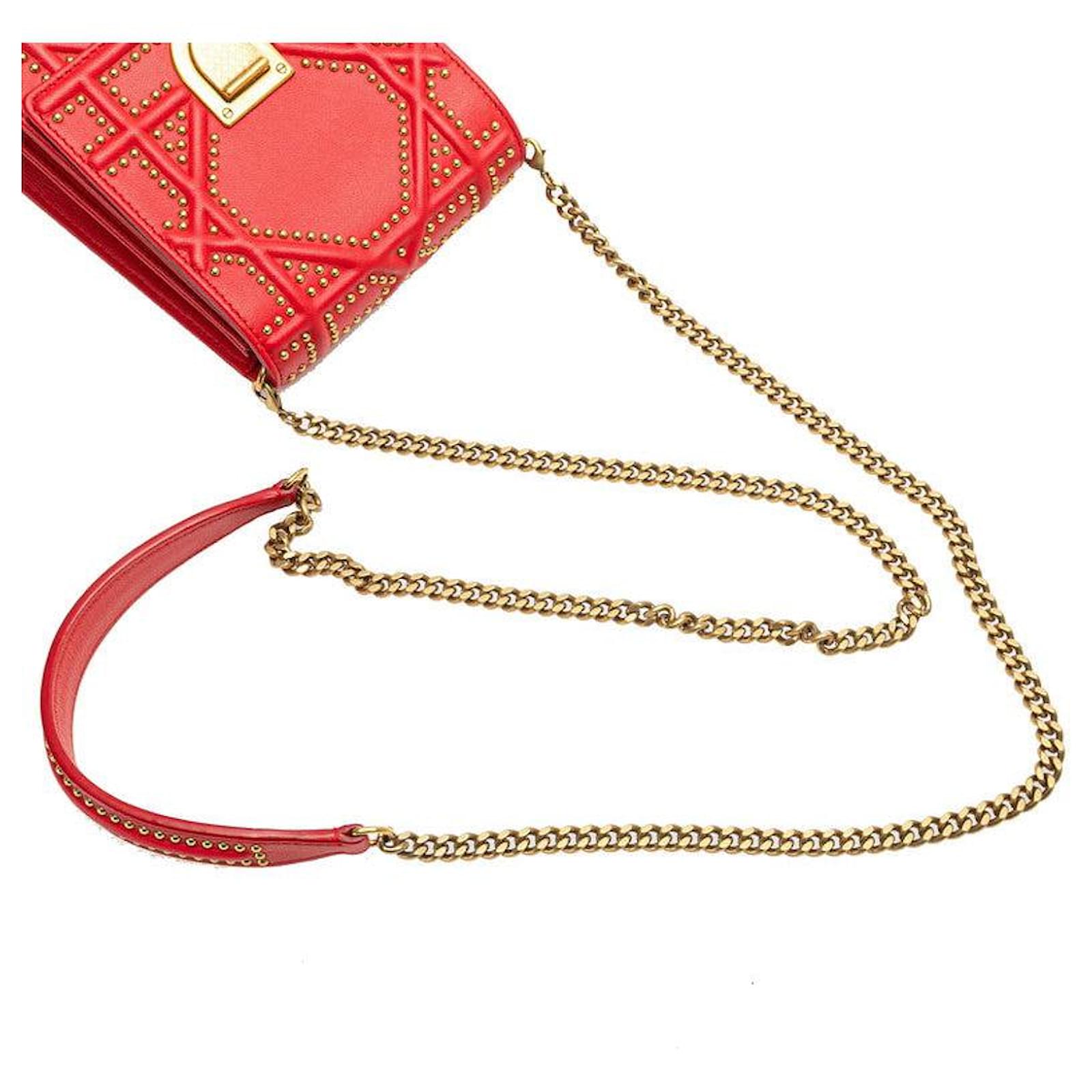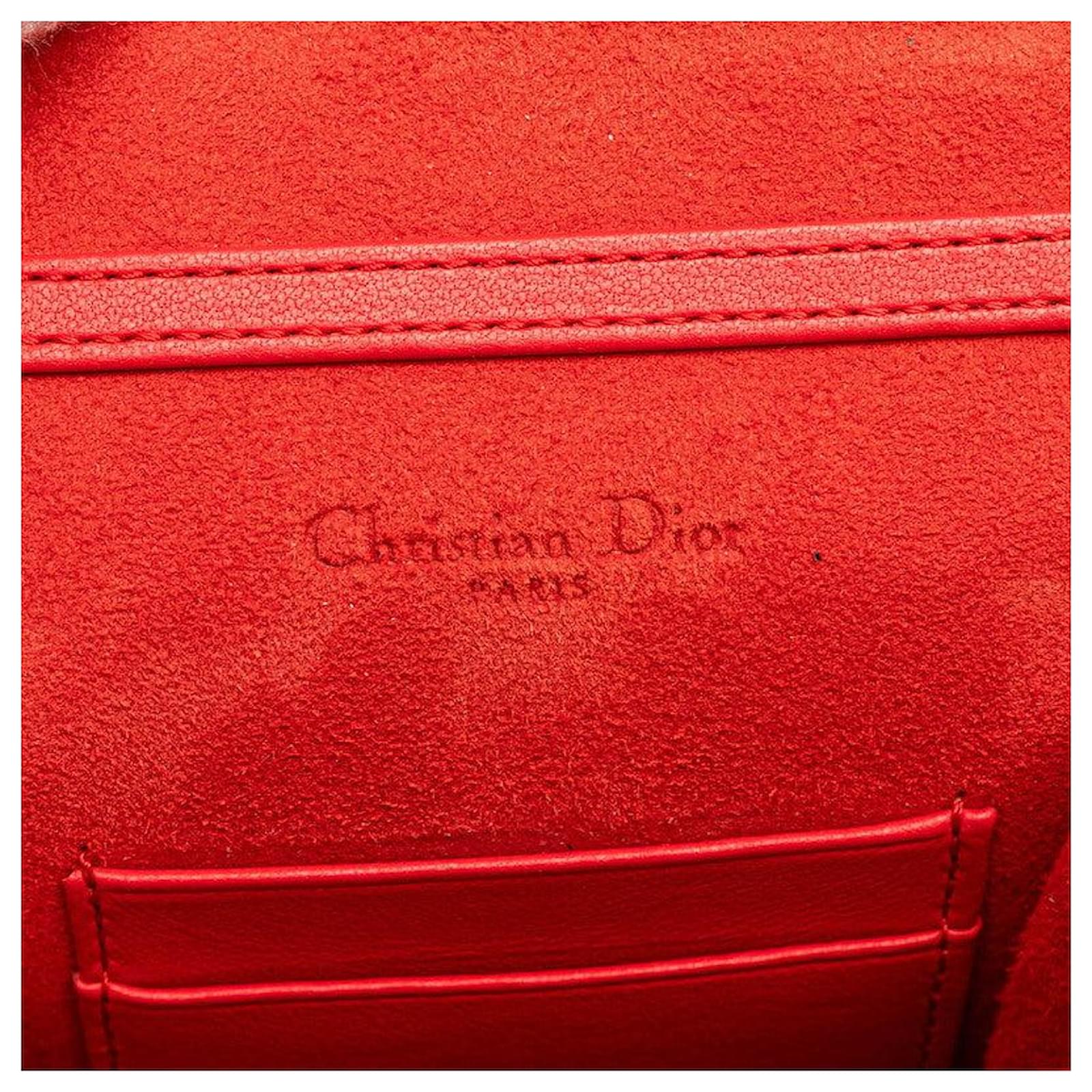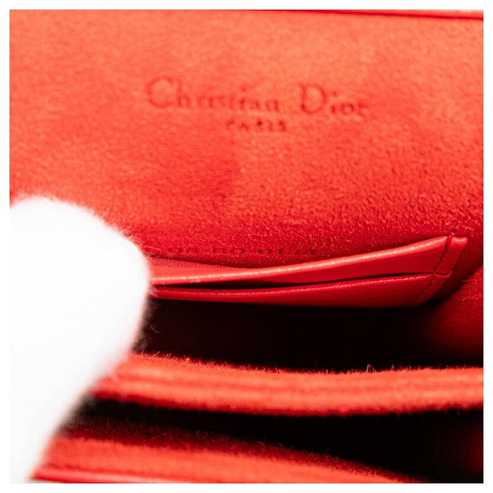 Dior Diorama Leather Shoulder Bag Red Golden