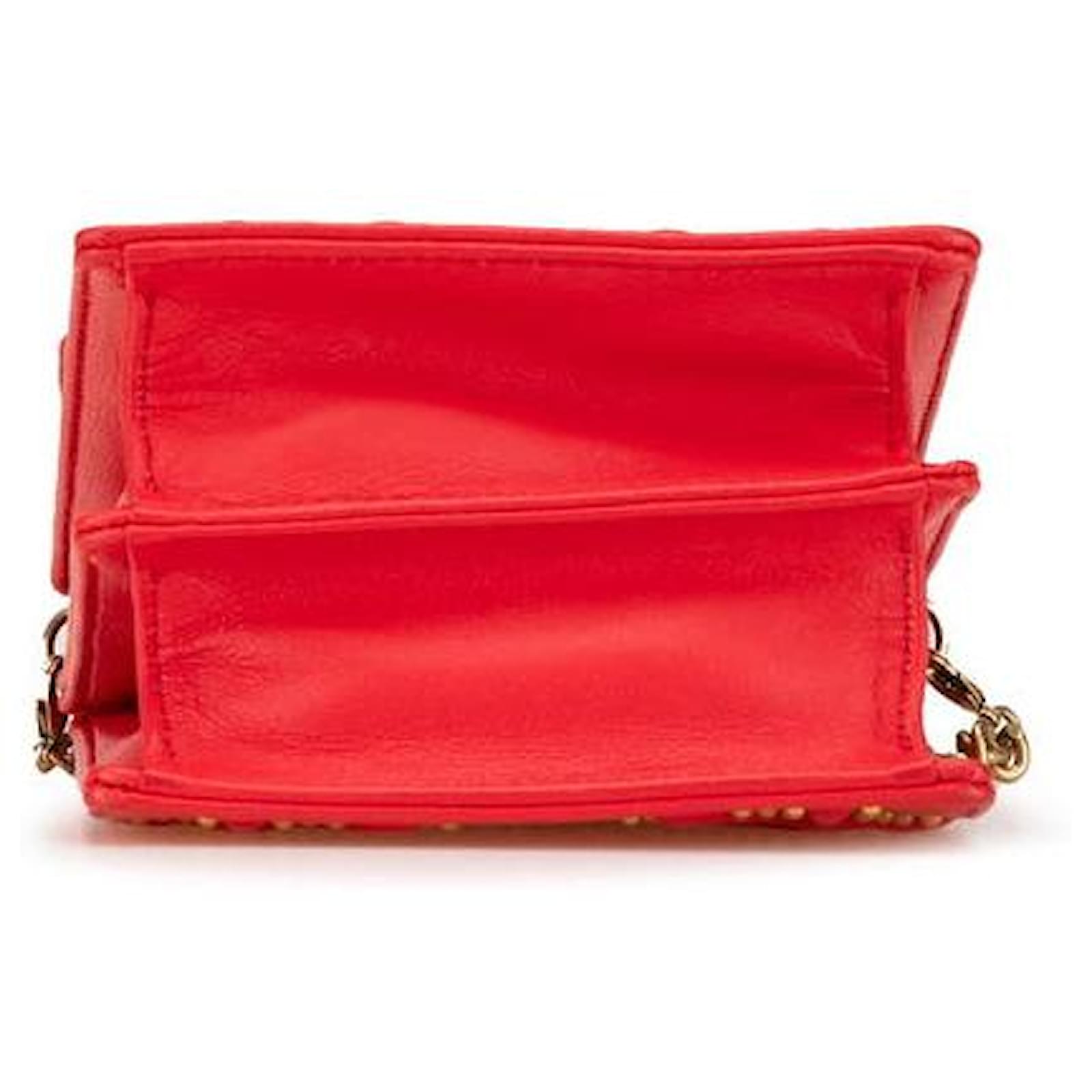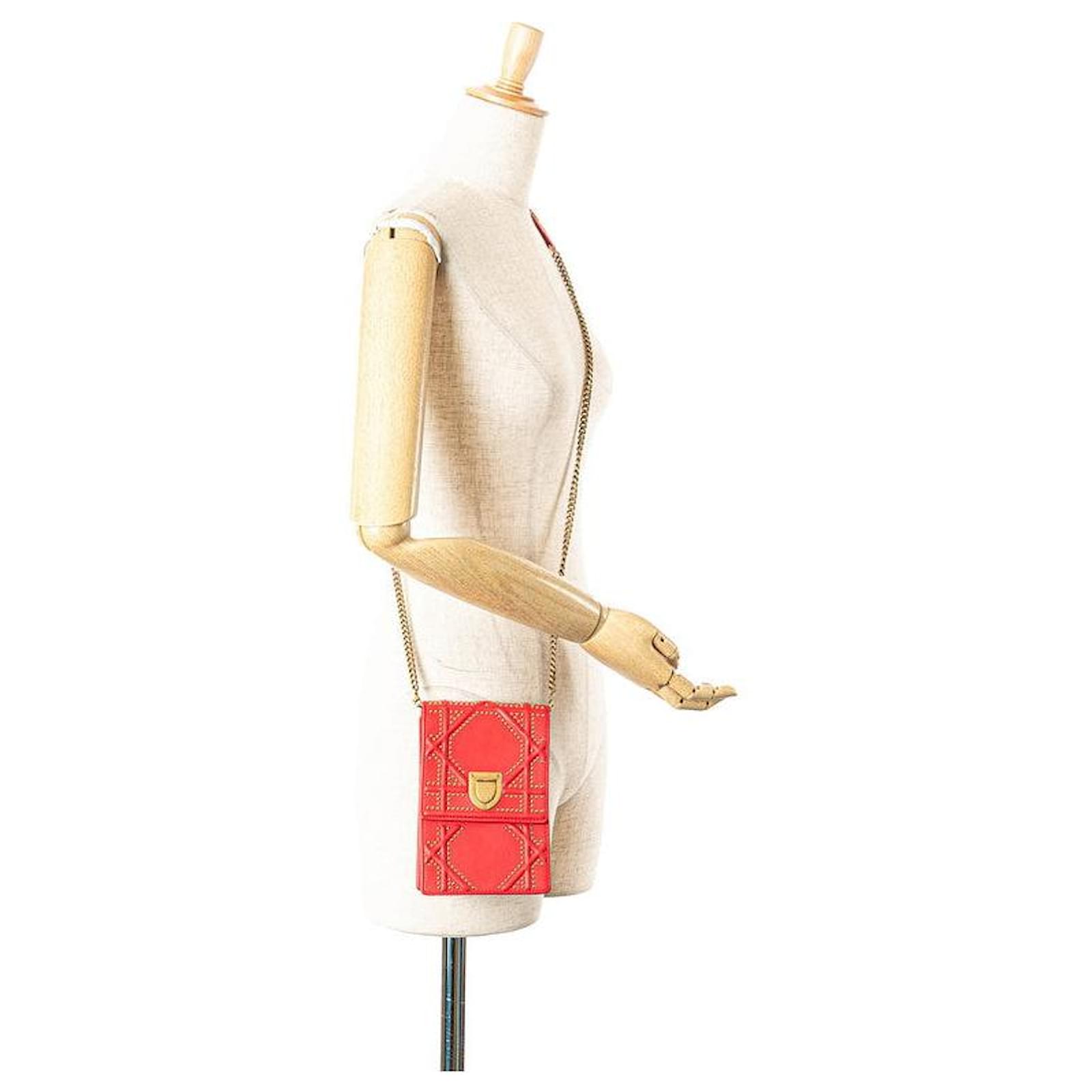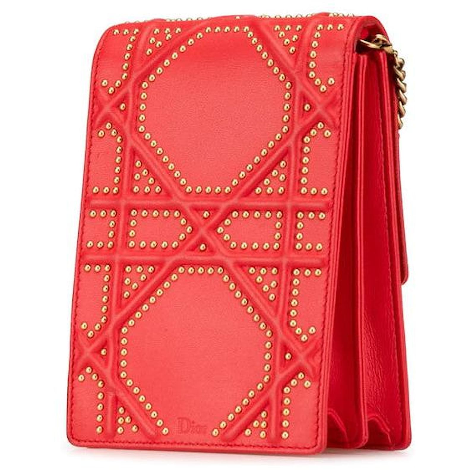 Dior Diorama Leather Shoulder Bag Red Golden