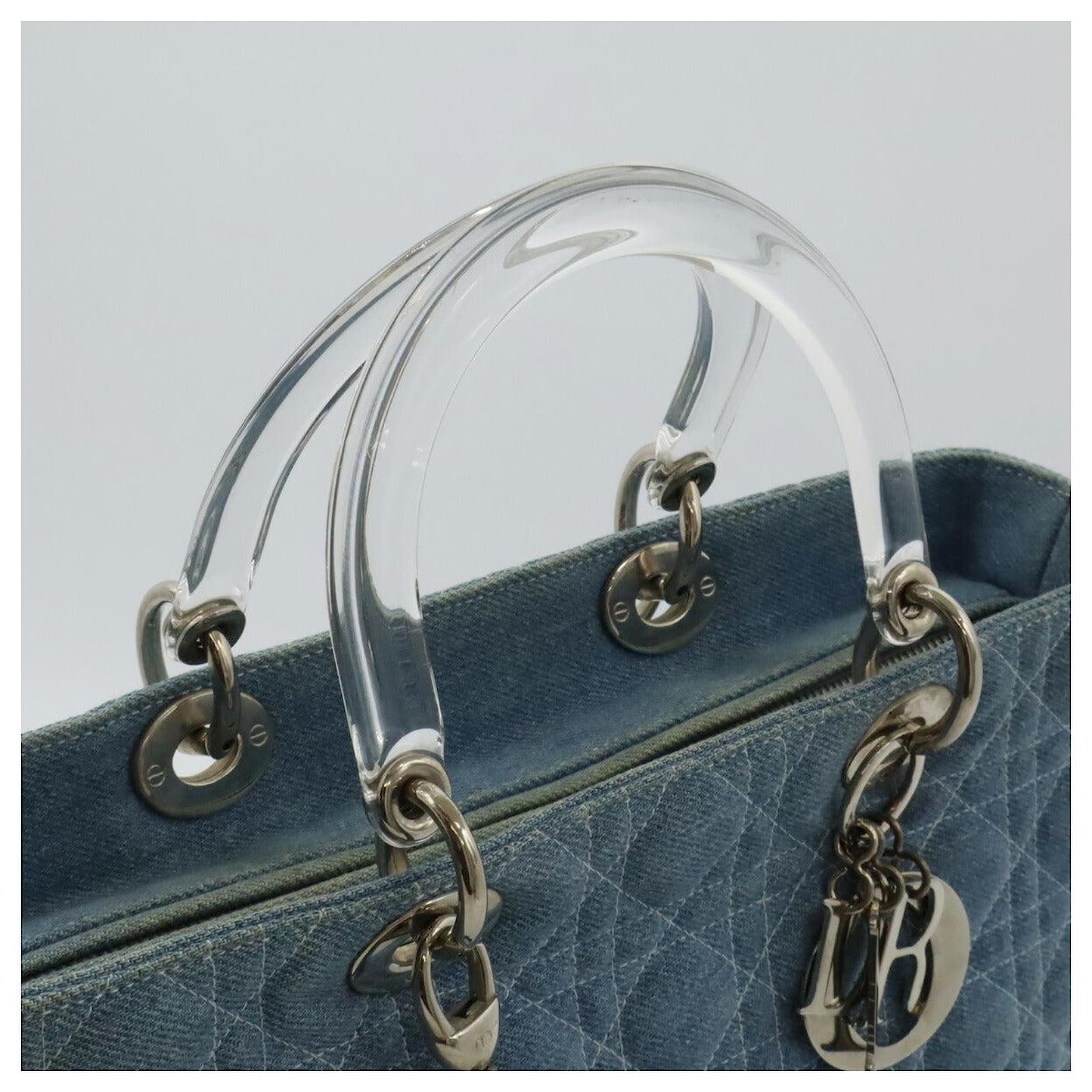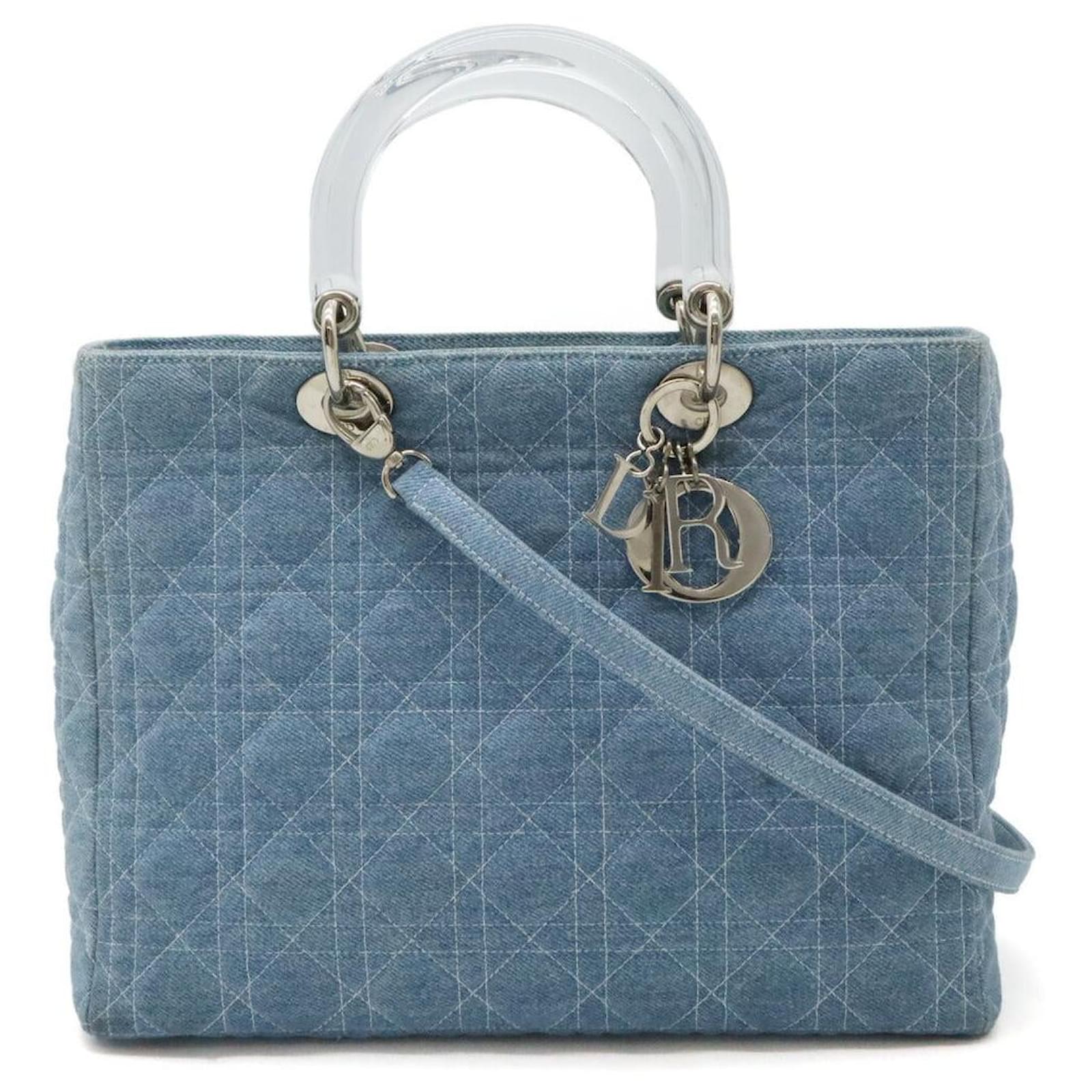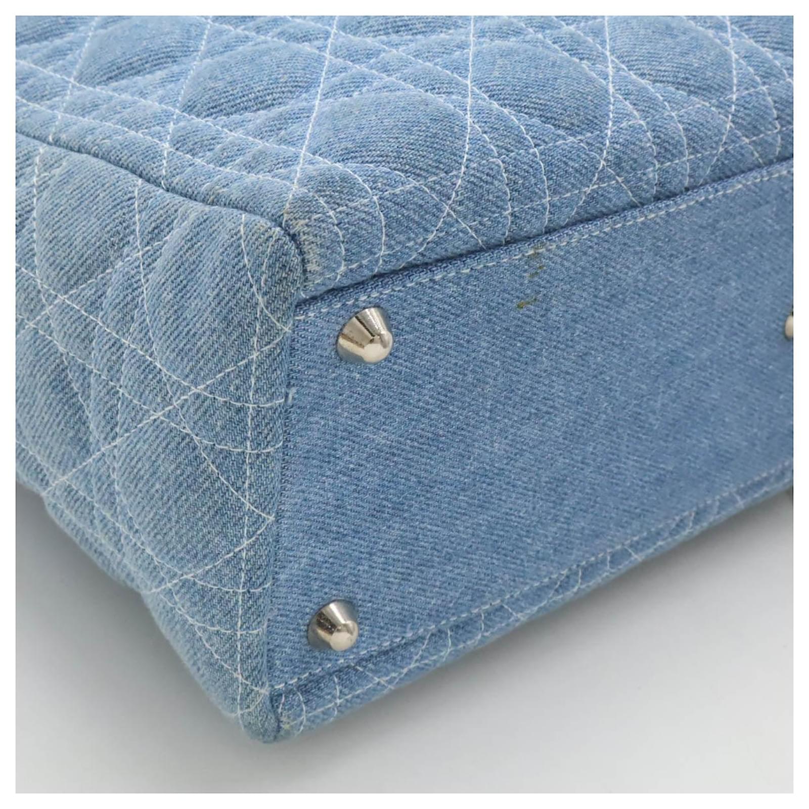 Brand Name: Dior; Condition: Very Good; Category: Bag; SubCategory: Handbag; Product Name: Dior Lady Dior Denim Handbag; Style: Ladies; Accessories: Shoulder Strap; Height (cm): 24.5; Width (cm): 12; Length (cm): 31.5; Color: Blue; Material: Denim/Plastic; Origin: France; Measurments: width: 120 mm length: 315 mm height: 245 mm strap length: 0 mm handle drop: 0 mm