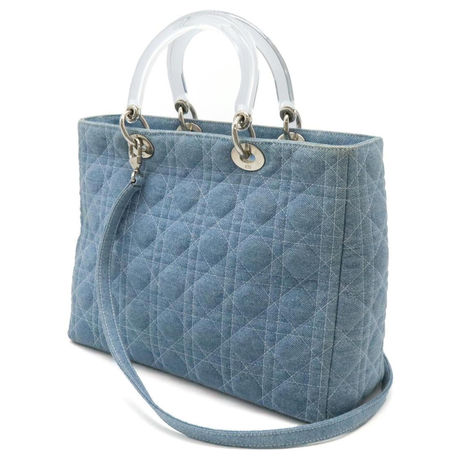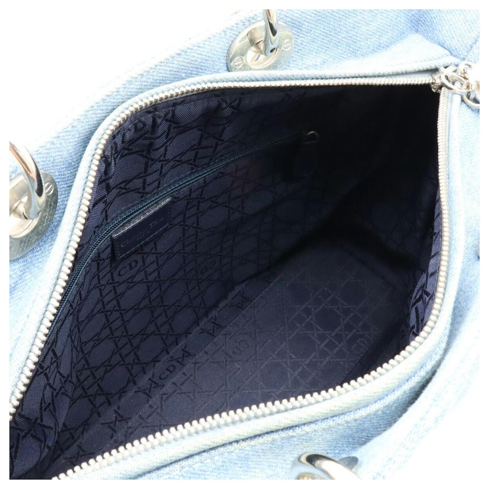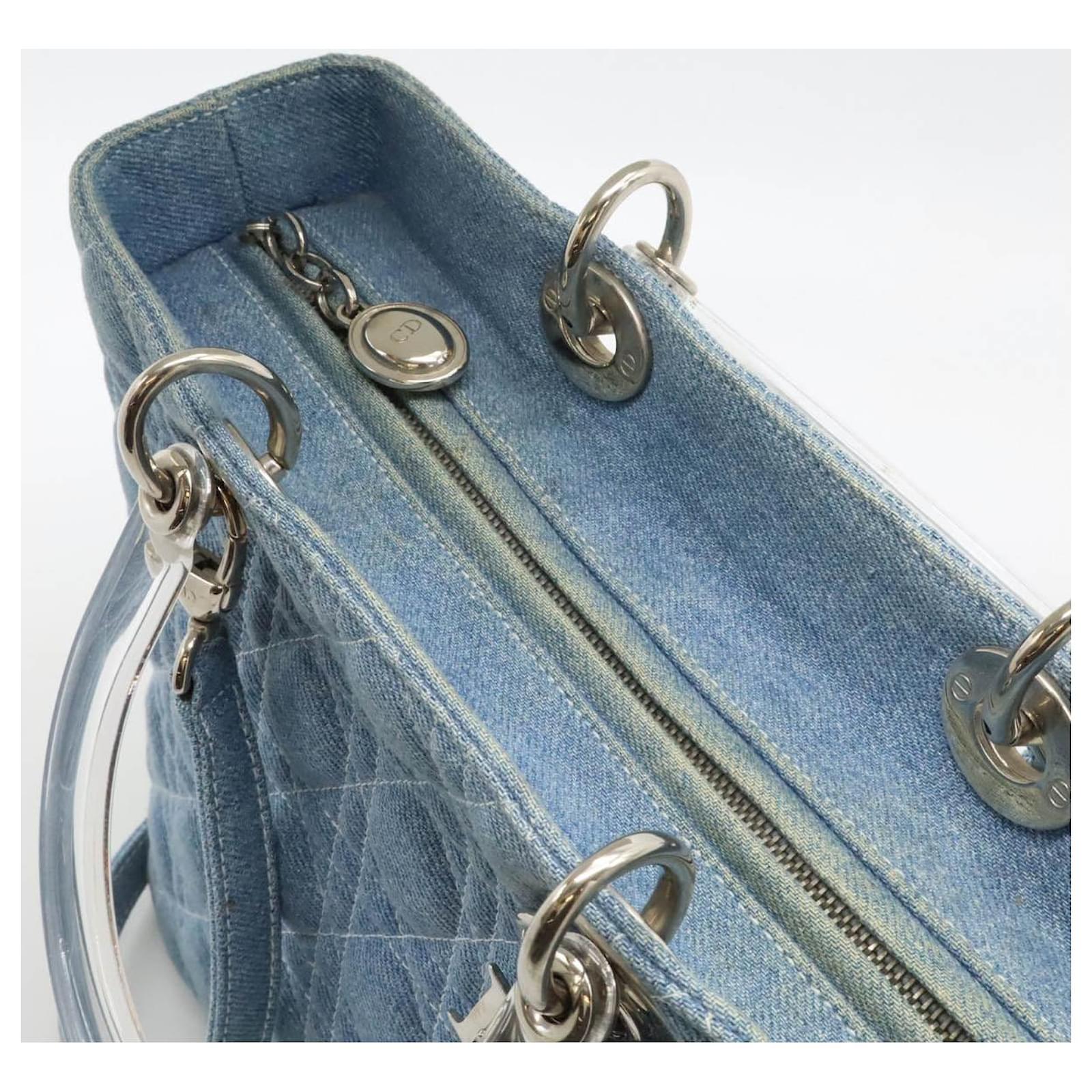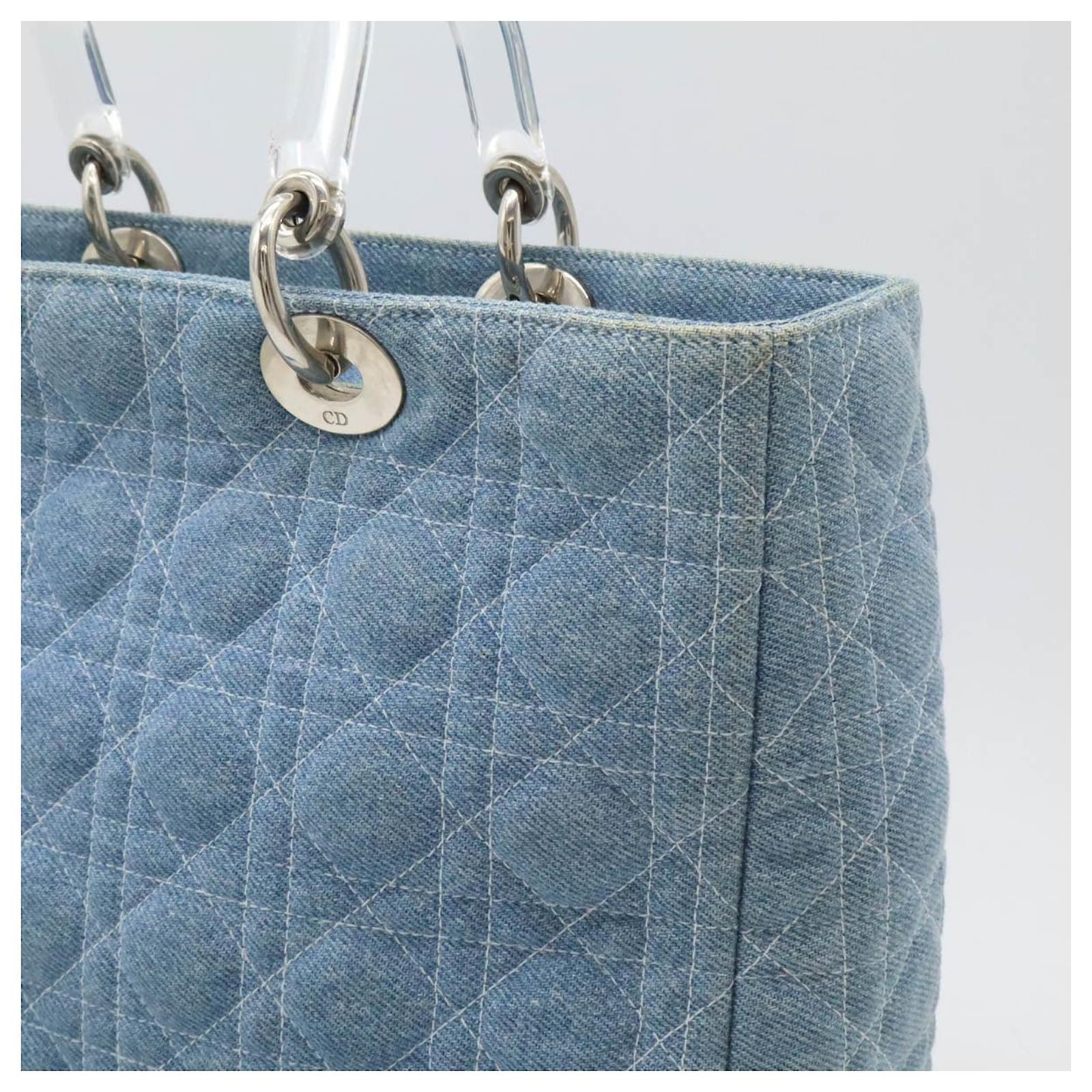 Brand Name: Dior; Condition: Very Good; Category: Bag; SubCategory: Handbag; Product Name: Dior Lady Dior Denim Handbag; Style: Ladies; Accessories: Shoulder Strap; Height (cm): 24.5; Width (cm): 12; Length (cm): 31.5; Color: Blue; Material: Denim/Plastic; Origin: France; Measurments: width: 120 mm length: 315 mm height: 245 mm strap length: 0 mm handle drop: 0 mm