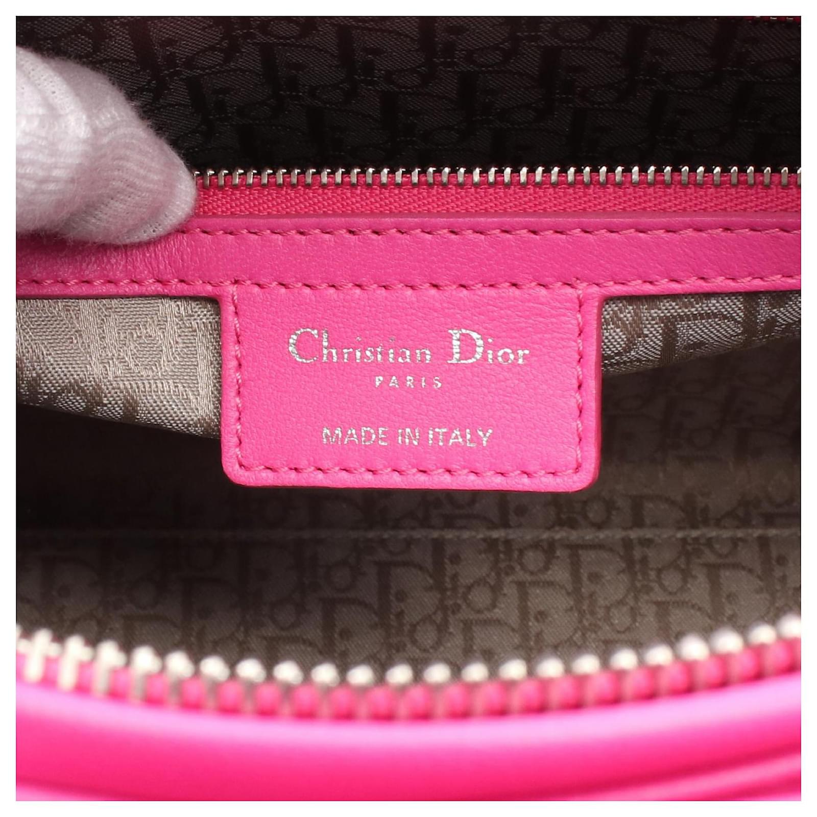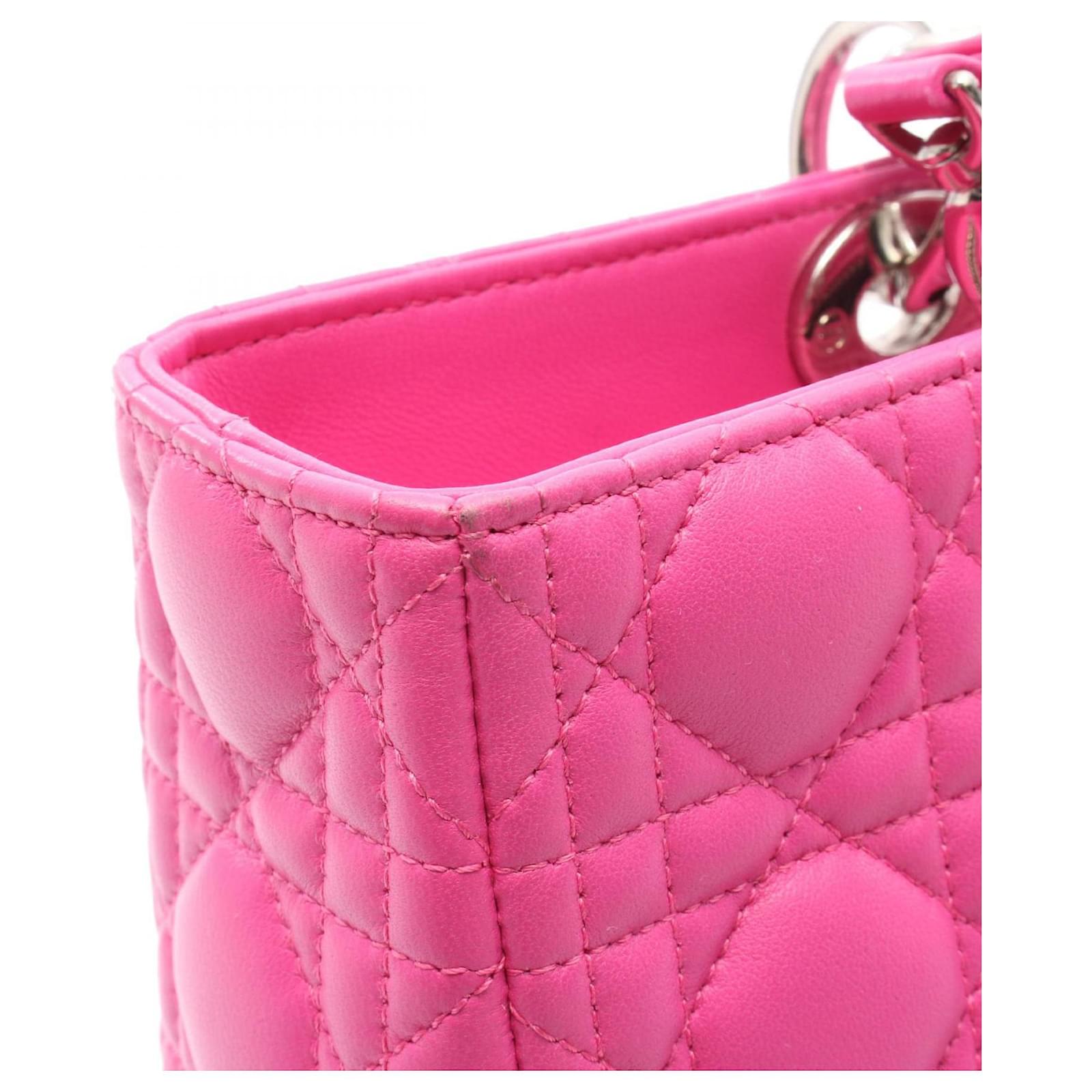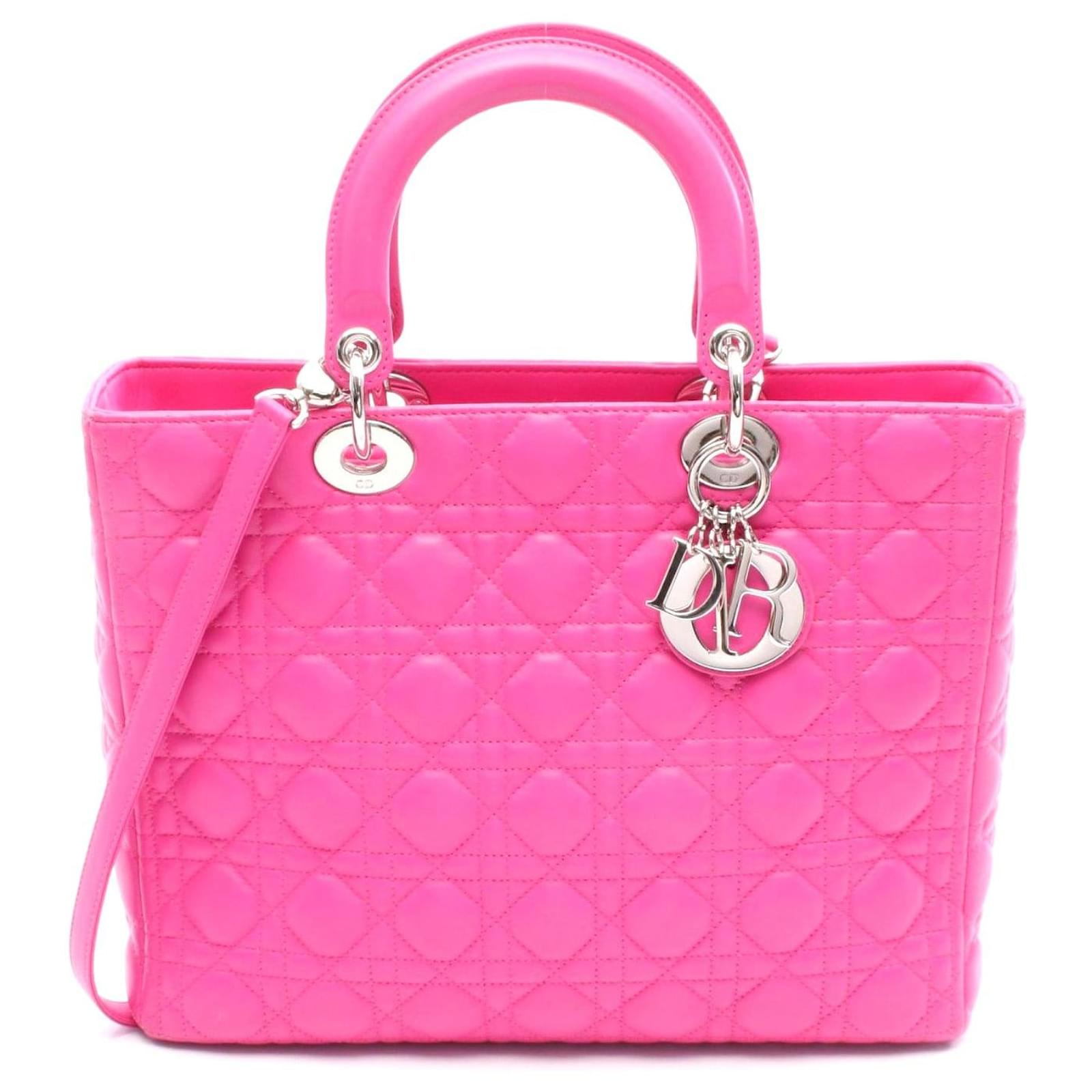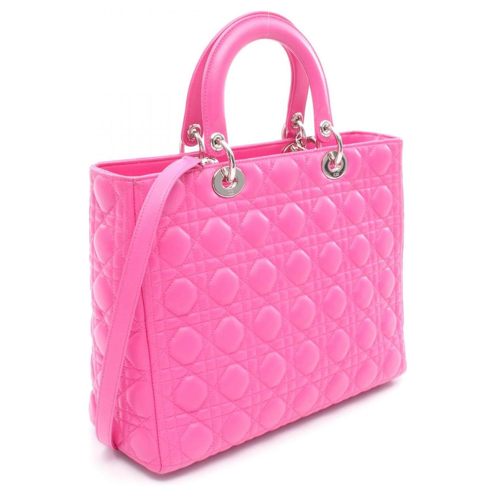 Brand Name: Dior; Condition: Very Good; Category: Bag; SubCategory: Handbag; Product Name: Dior Lady Dior Large Leather Handbag; Style: Ladies; Accessories: Shoulder Strap; Height (cm): 25; Width (cm): 11; Length (cm): 32; Color: Pink; Material: Leather; Measurments: width: 110 mm length: 320 mm height: 250 mm