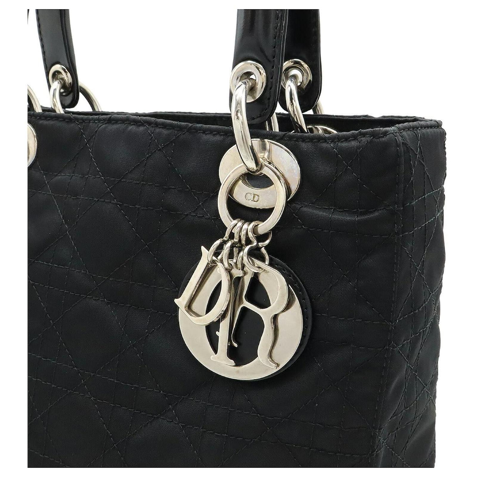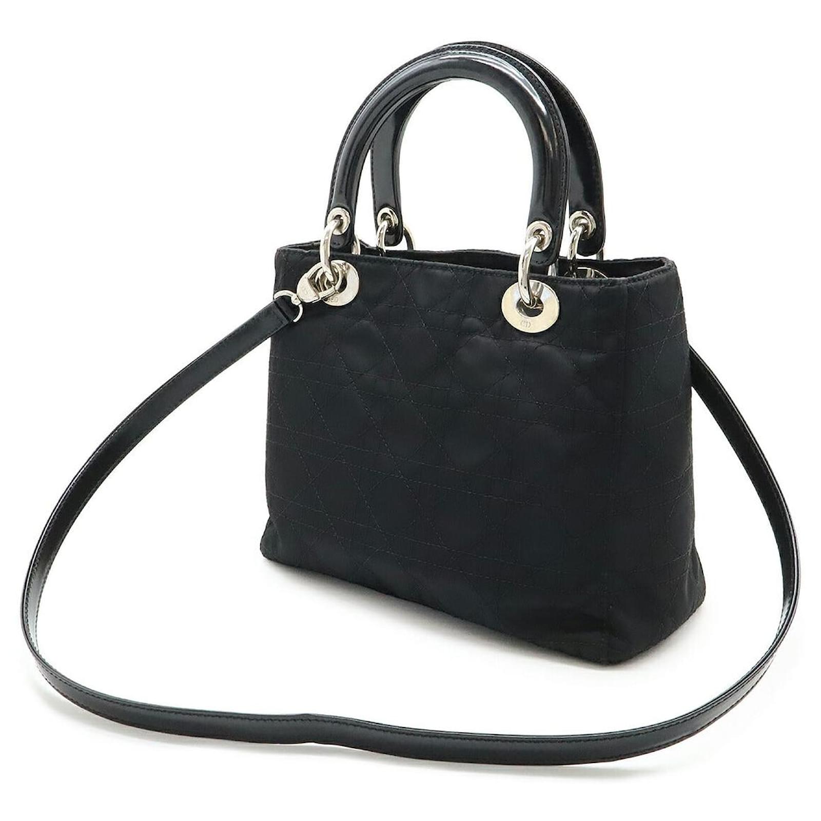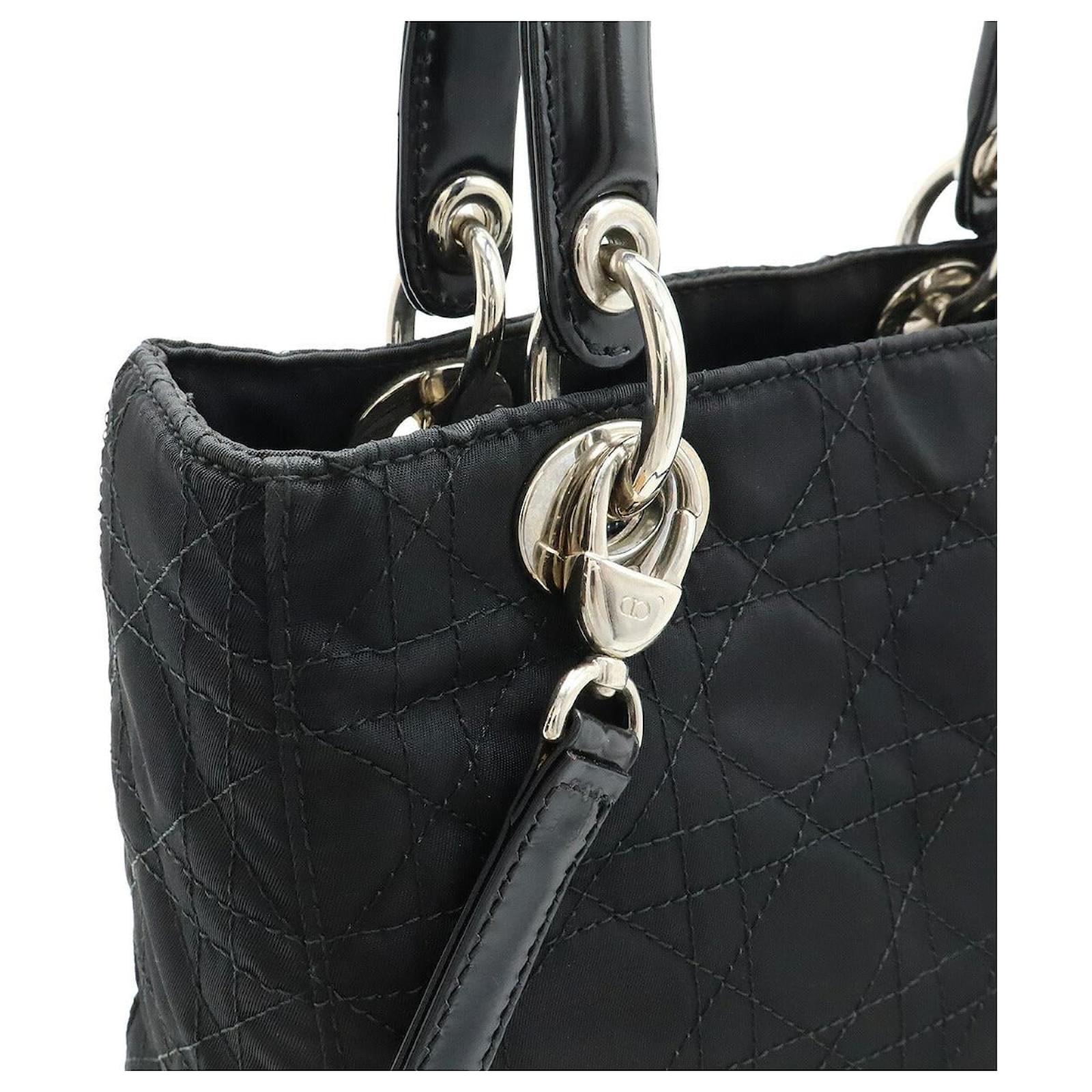 Brand Name: Dior; Condition: Very Good; Category: Bag; SubCategory: Handbag; Product Name: Dior Lady Dior Nylon Handbag Black; Style: Ladies; Accessories: Shoulder Strap; Height (cm): 20; Width (cm): 11; Length (cm): 23.5; Color: Black; Material: Nylon/Leather; Measurments: width: 110 mm length: 235 mm height: 200 mm strap length: 0 mm handle drop: 0 mm