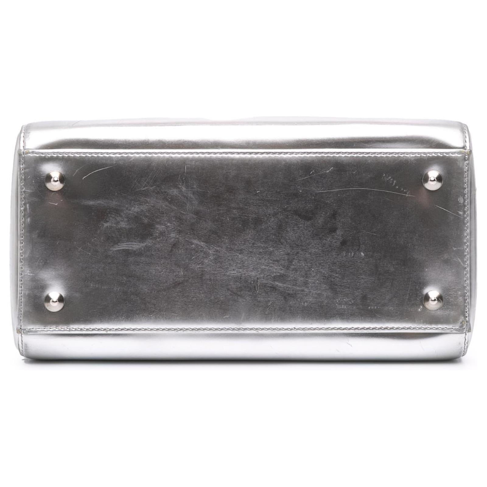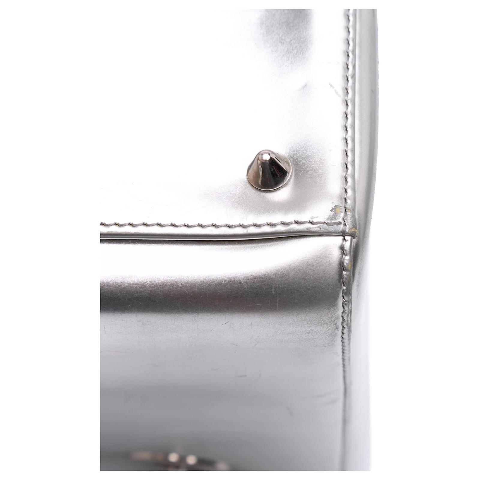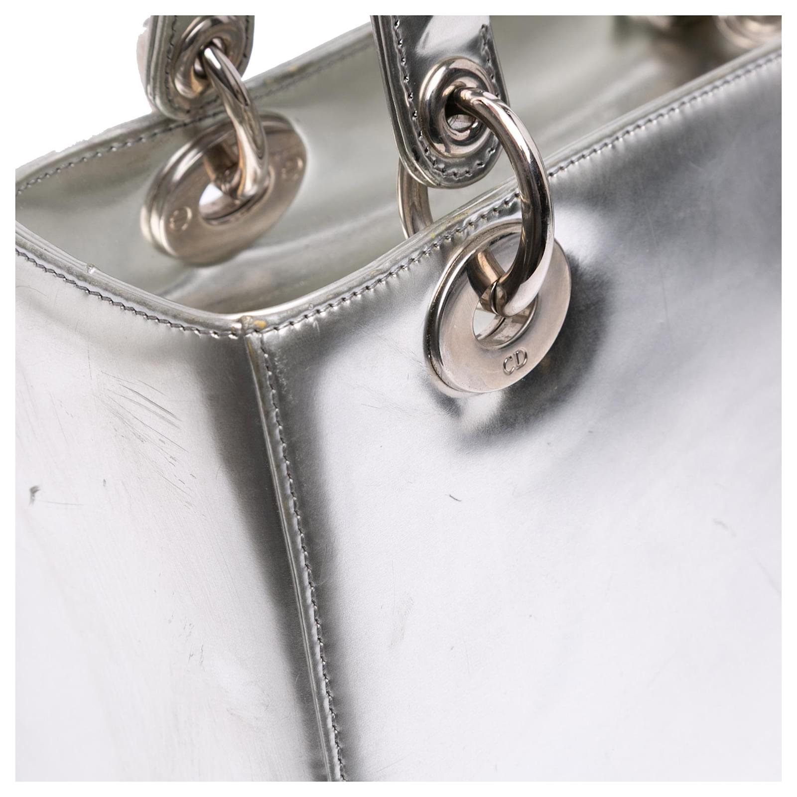 Dior Silver Medium Metallic Patent Lady Dior Silvery
