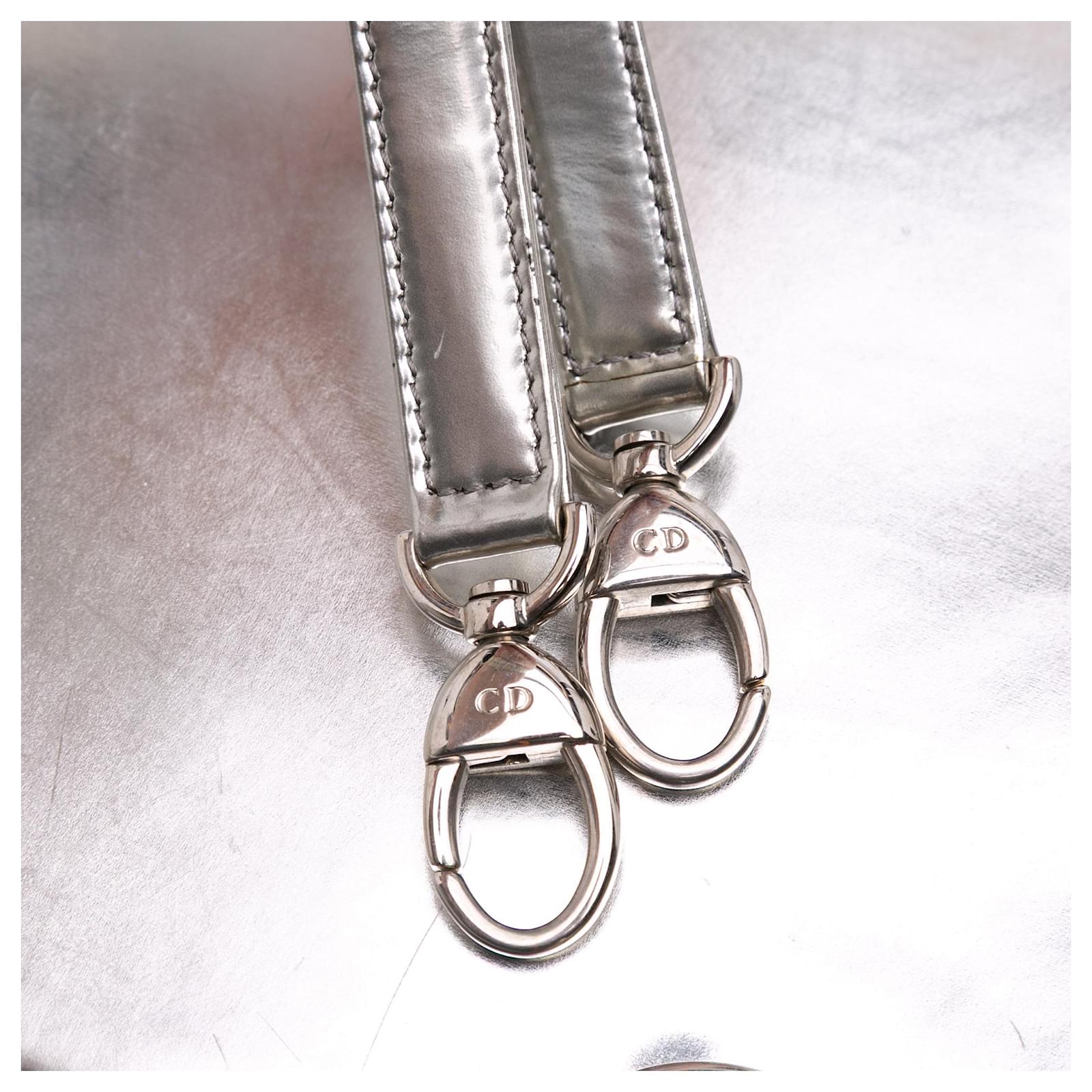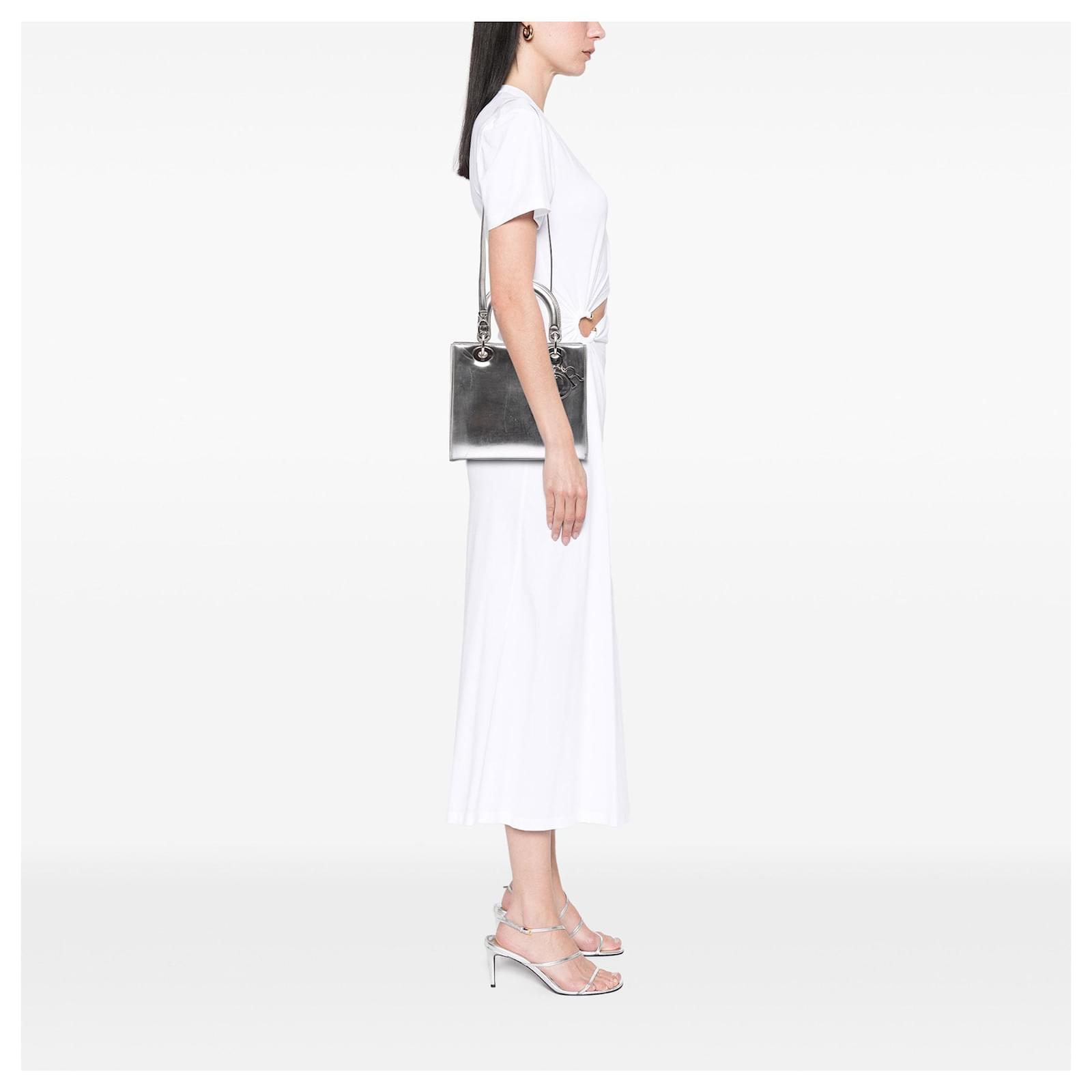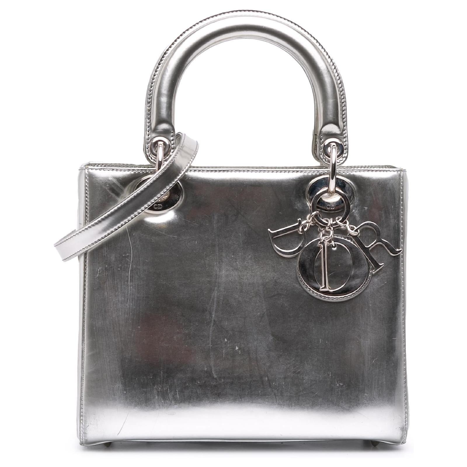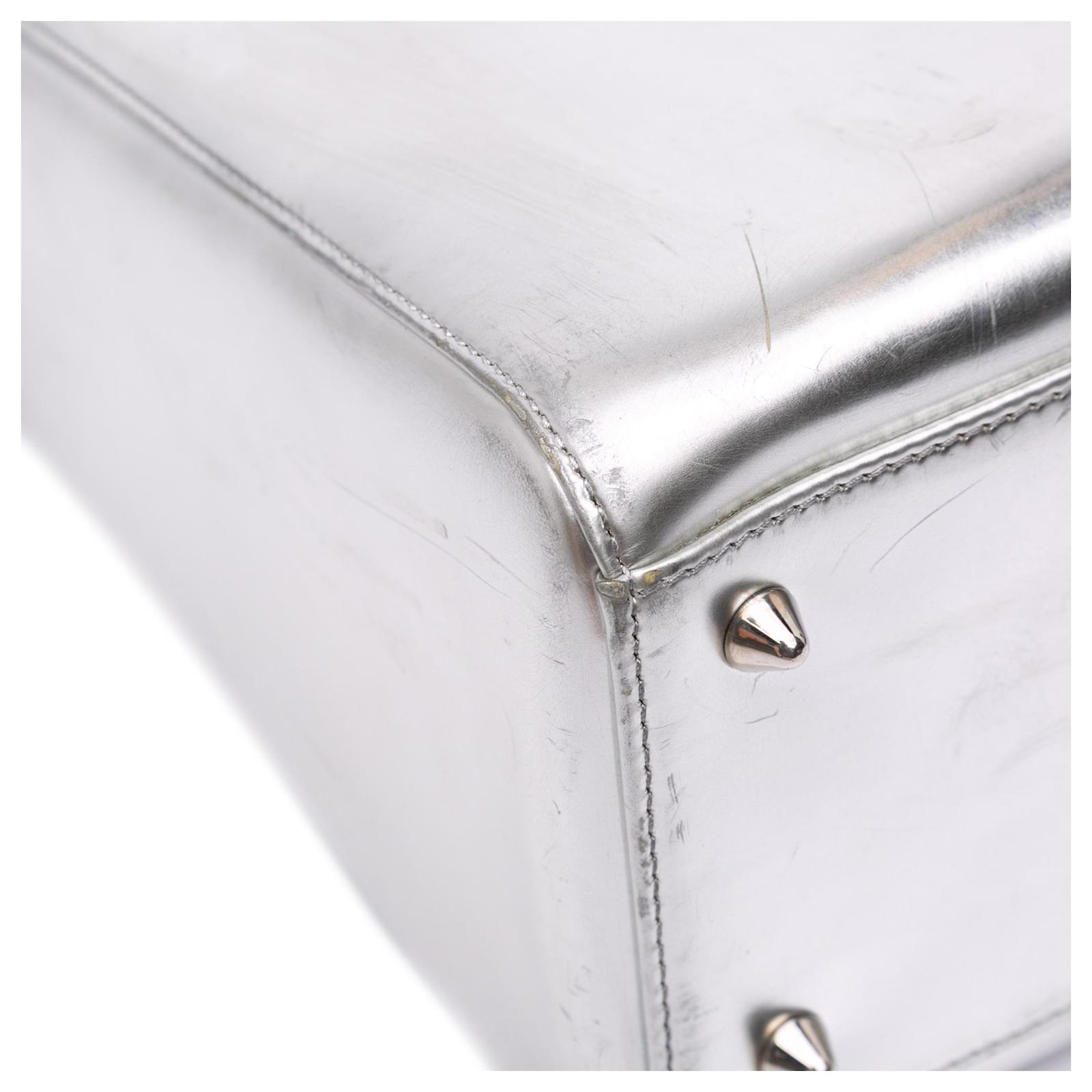 Dior Silver Medium Metallic Patent Lady Dior Silvery