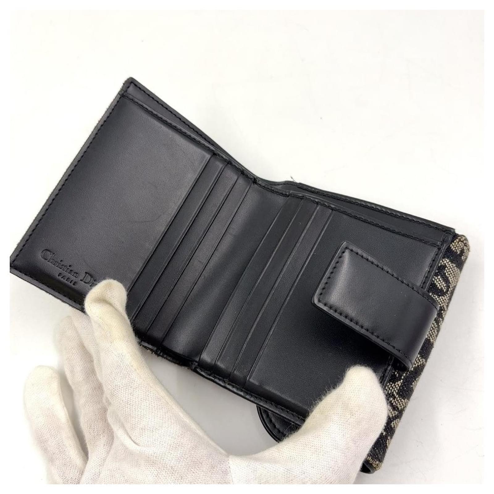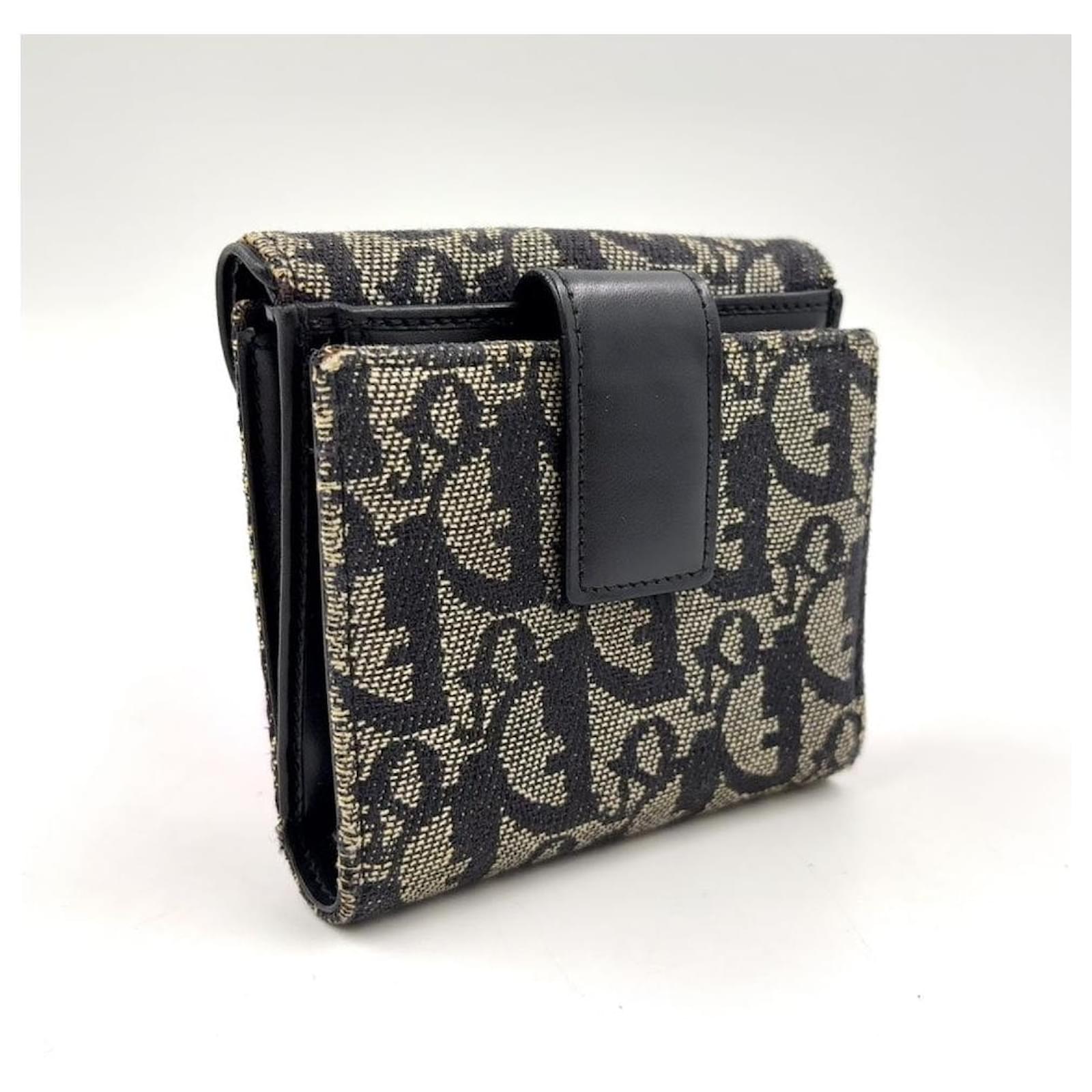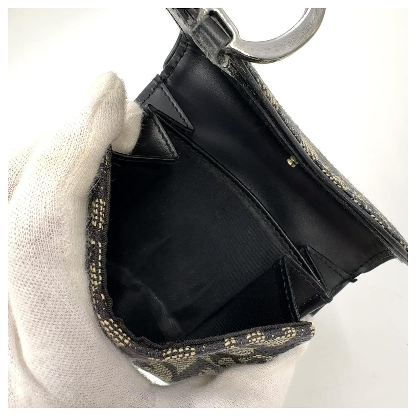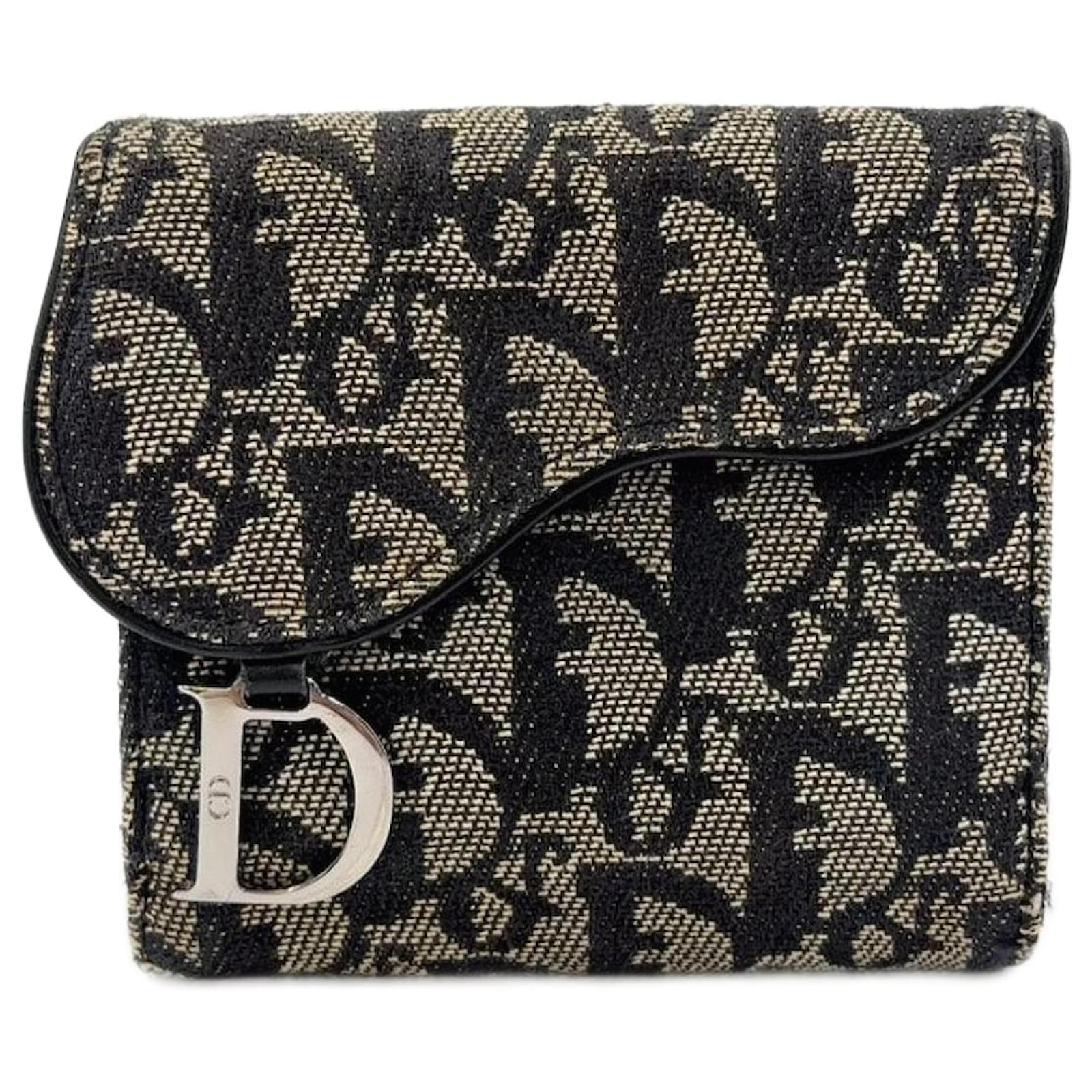 Brand Name: Dior; Condition: Good; Category: Wallet; SubCategory: Short Wallet; Product Name: Dior Trotter Saddle Bifold Wallet Gray Black; Style: Ladies; Height (cm): 2; Width (cm): 10.5; Length (cm): 10.5; Color: Grey; Material: Leather Canvas; Measurments: width: 105 mm length: 105 mm height: 20 mm strap length: 0 mm handle drop: 0 mm
