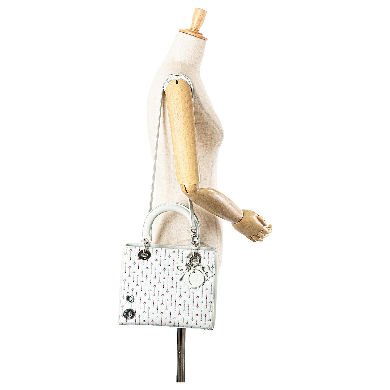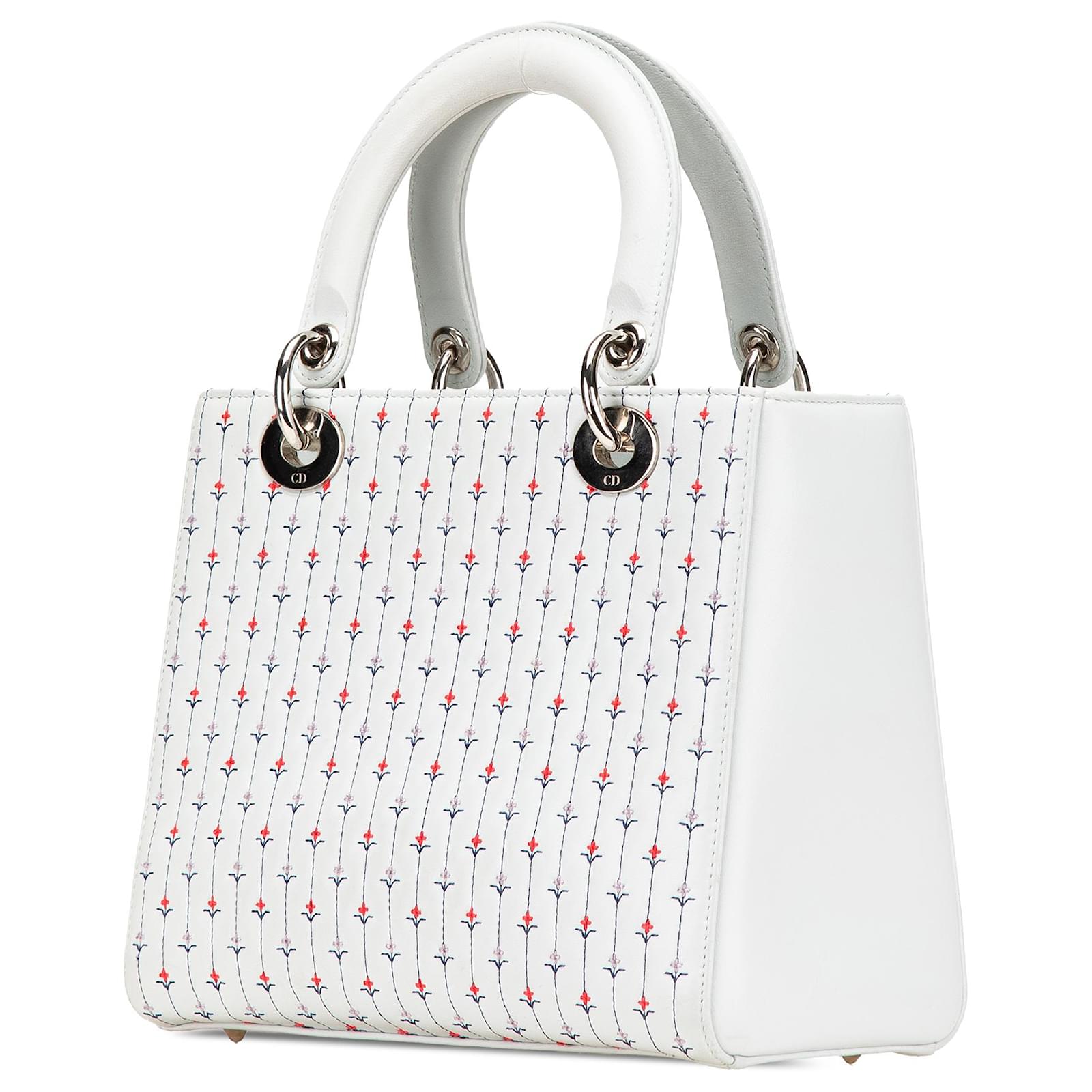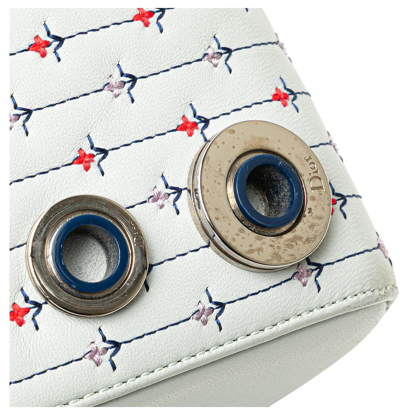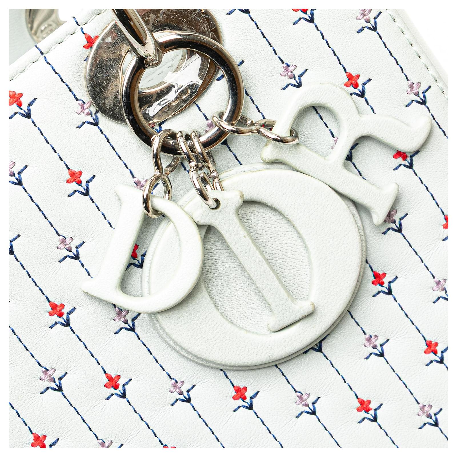 Dior White Medium Calfskin Embroidered Flower Lady Dior
