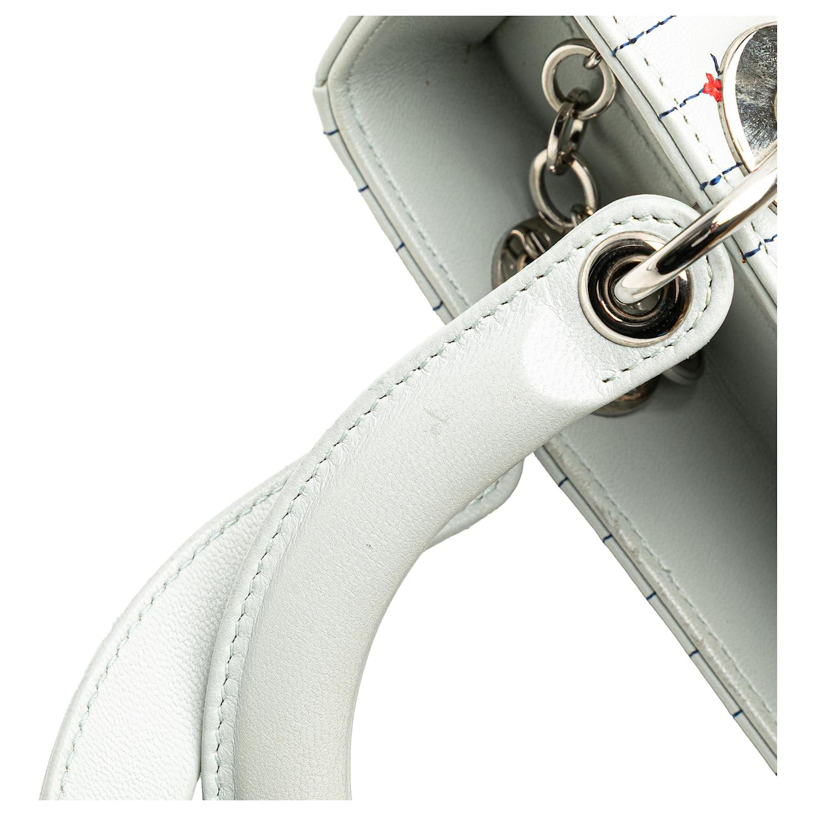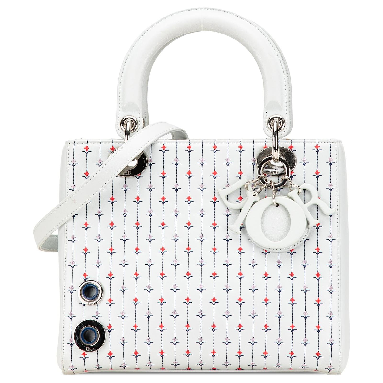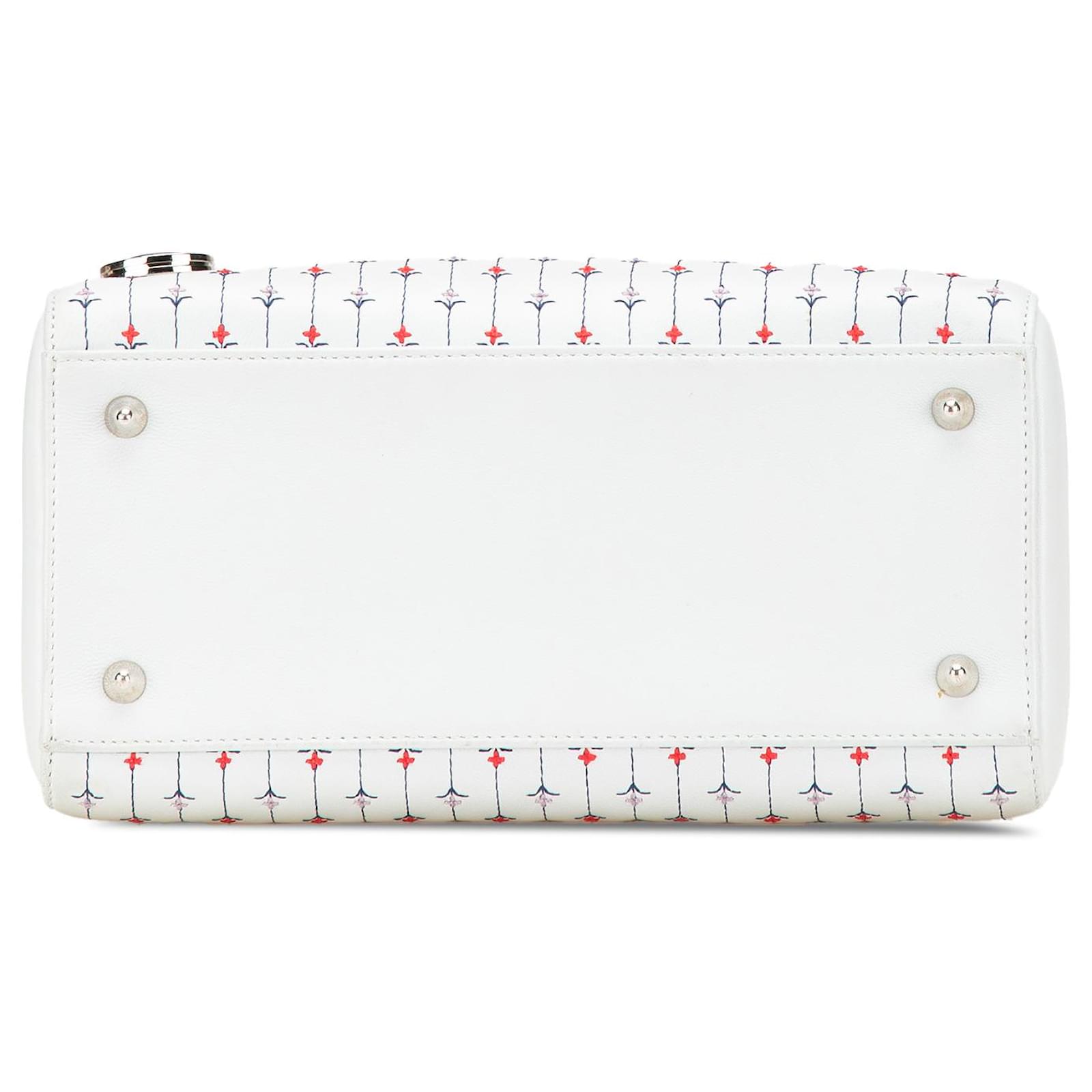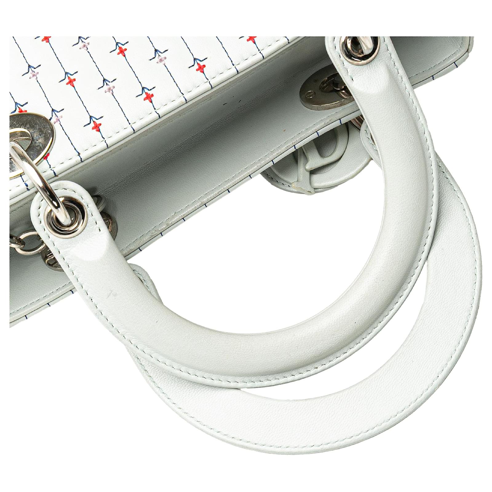 Dior White Medium Calfskin Embroidered Flower Lady Dior