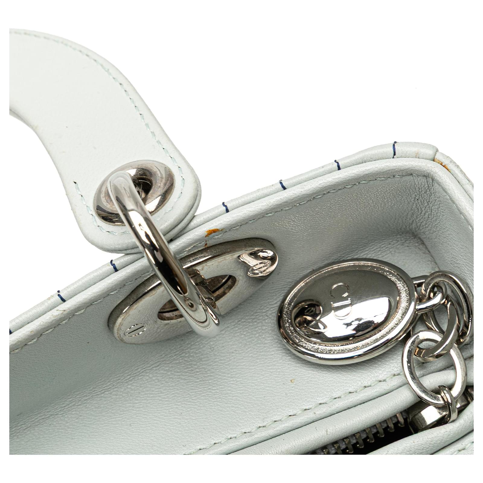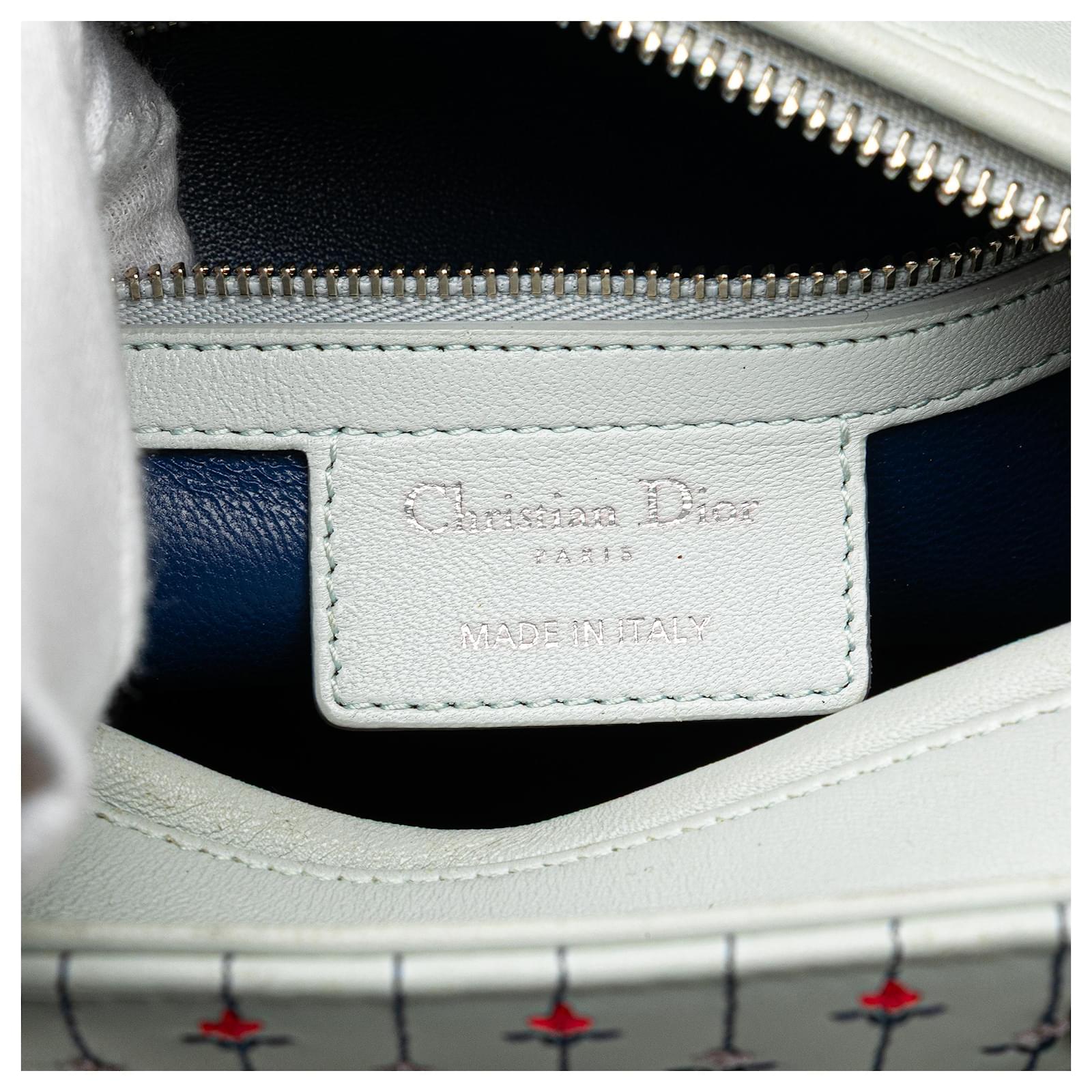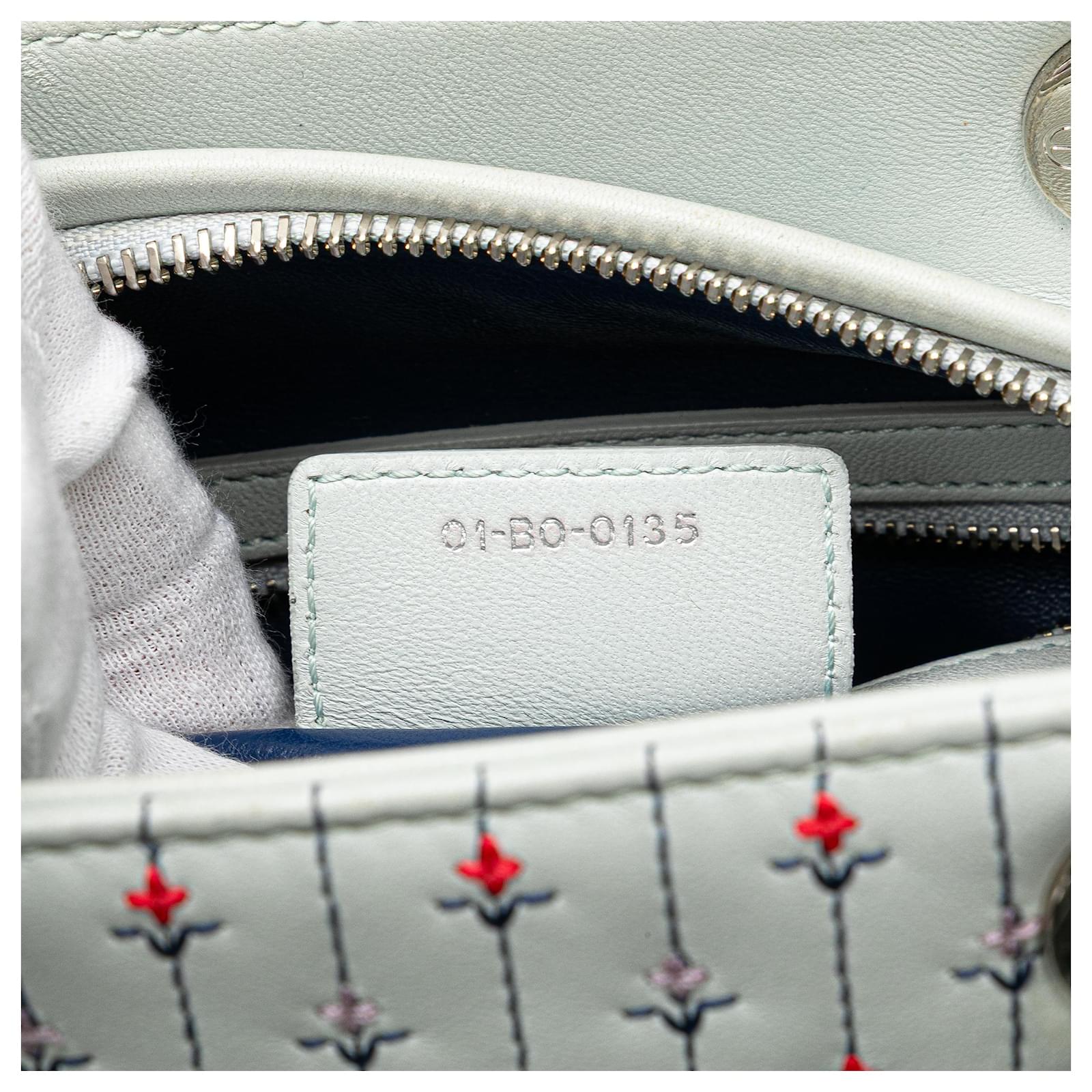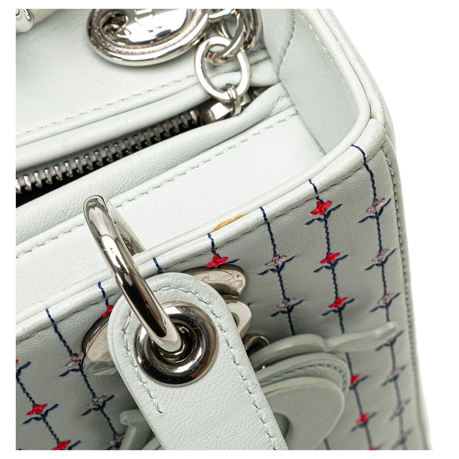 Dior White Medium Calfskin Embroidered Flower Lady Dior
