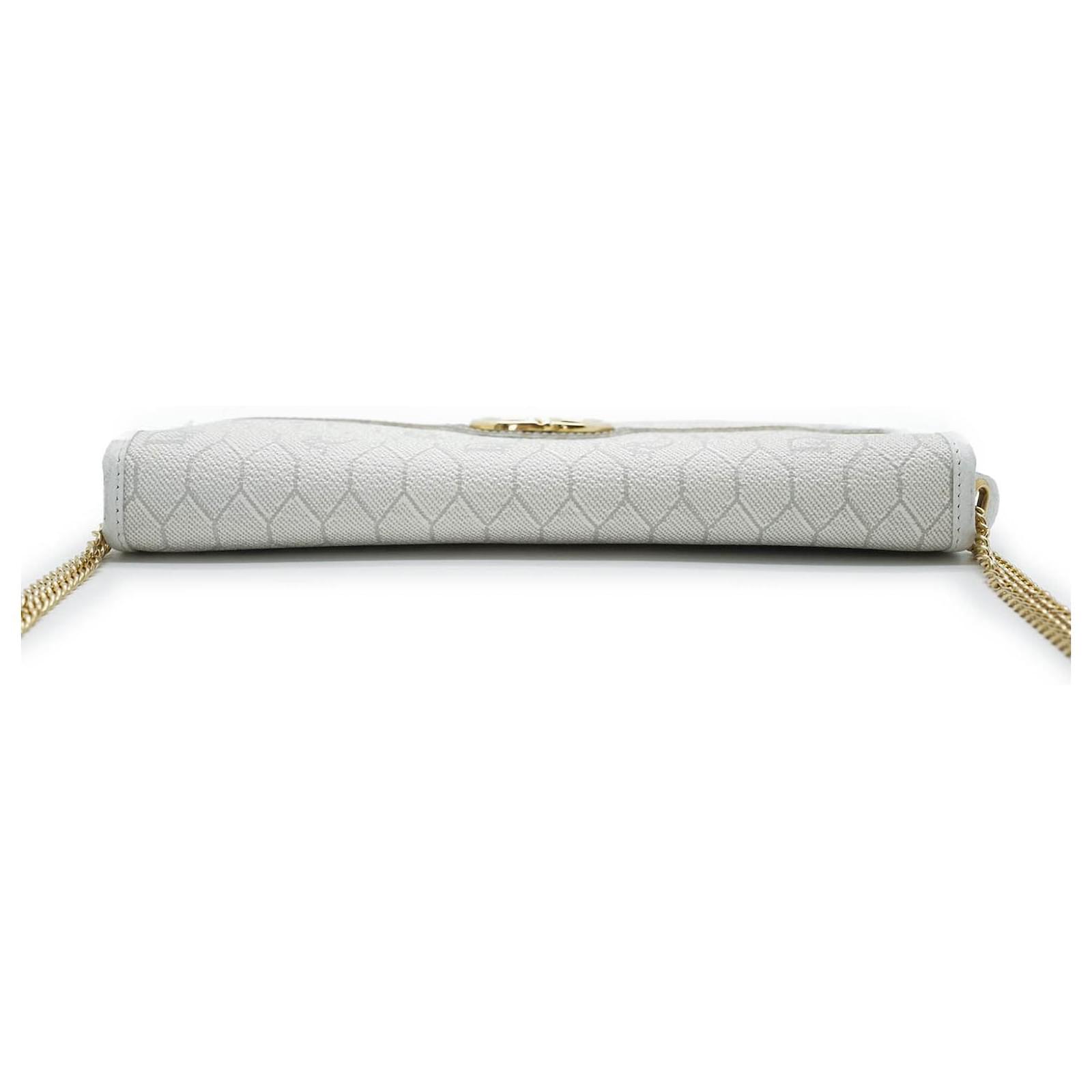 Honeycomb Chain Shoulder Bag White Canvas, Leather