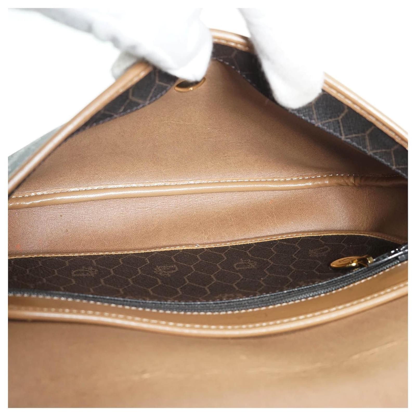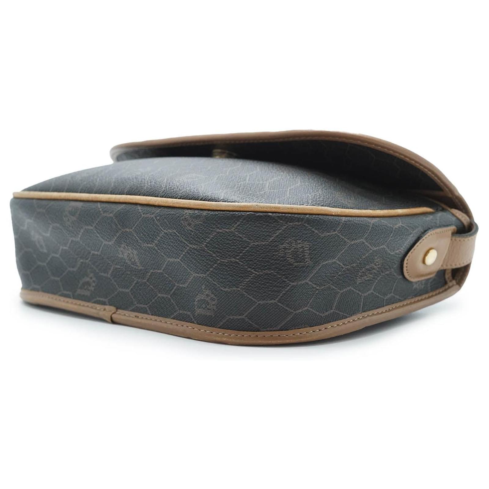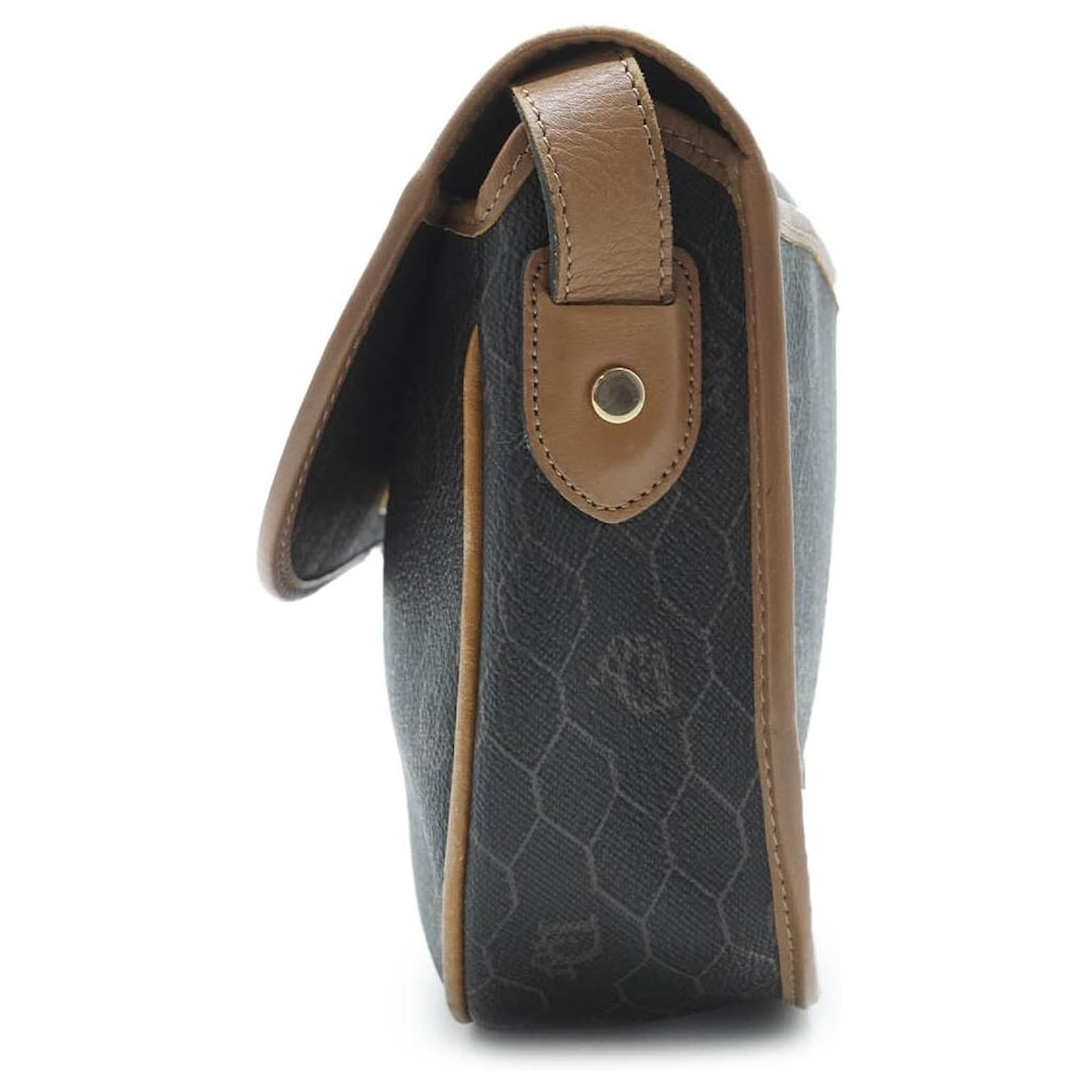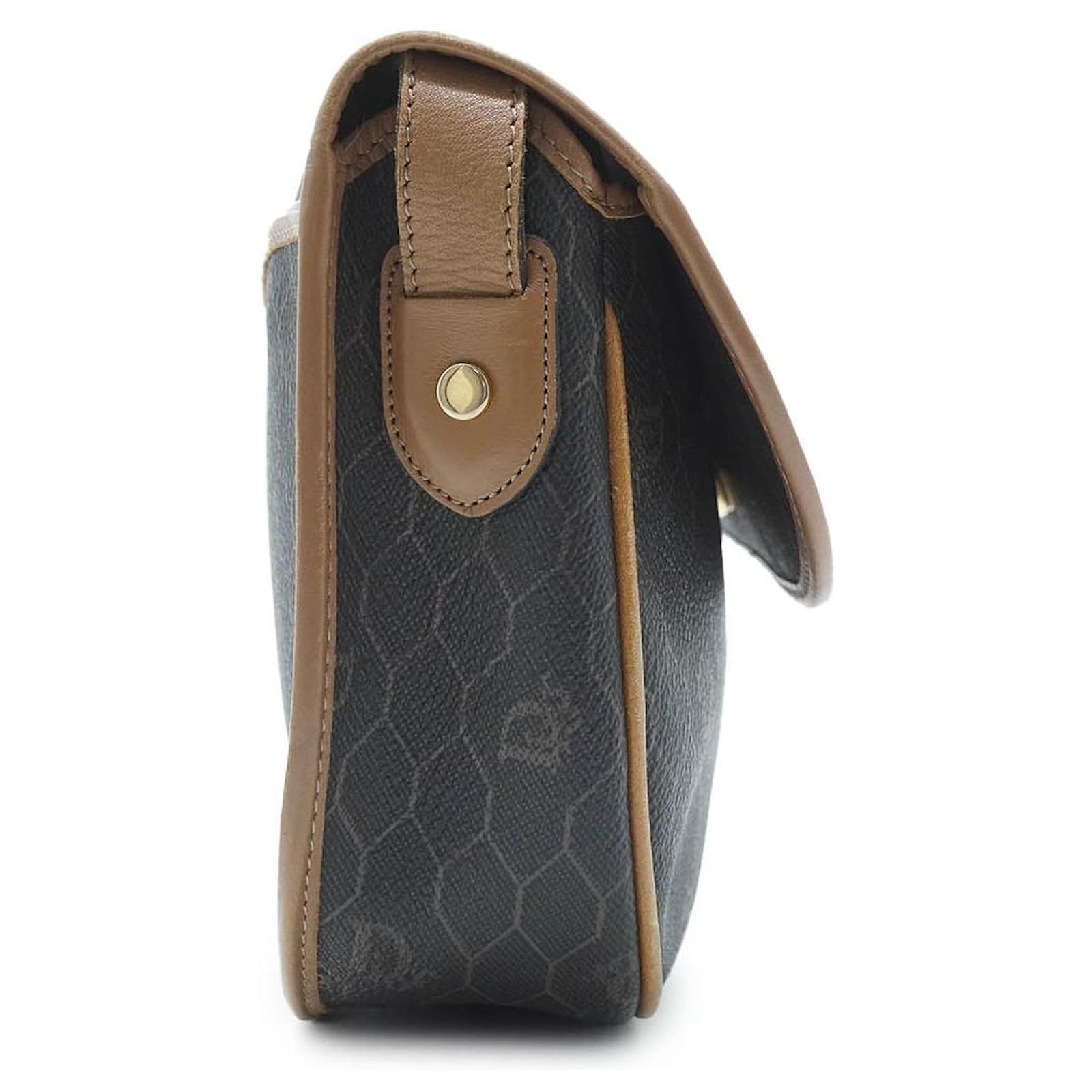 Honeycomb Shoulder Bag Brown Canvas, Leather