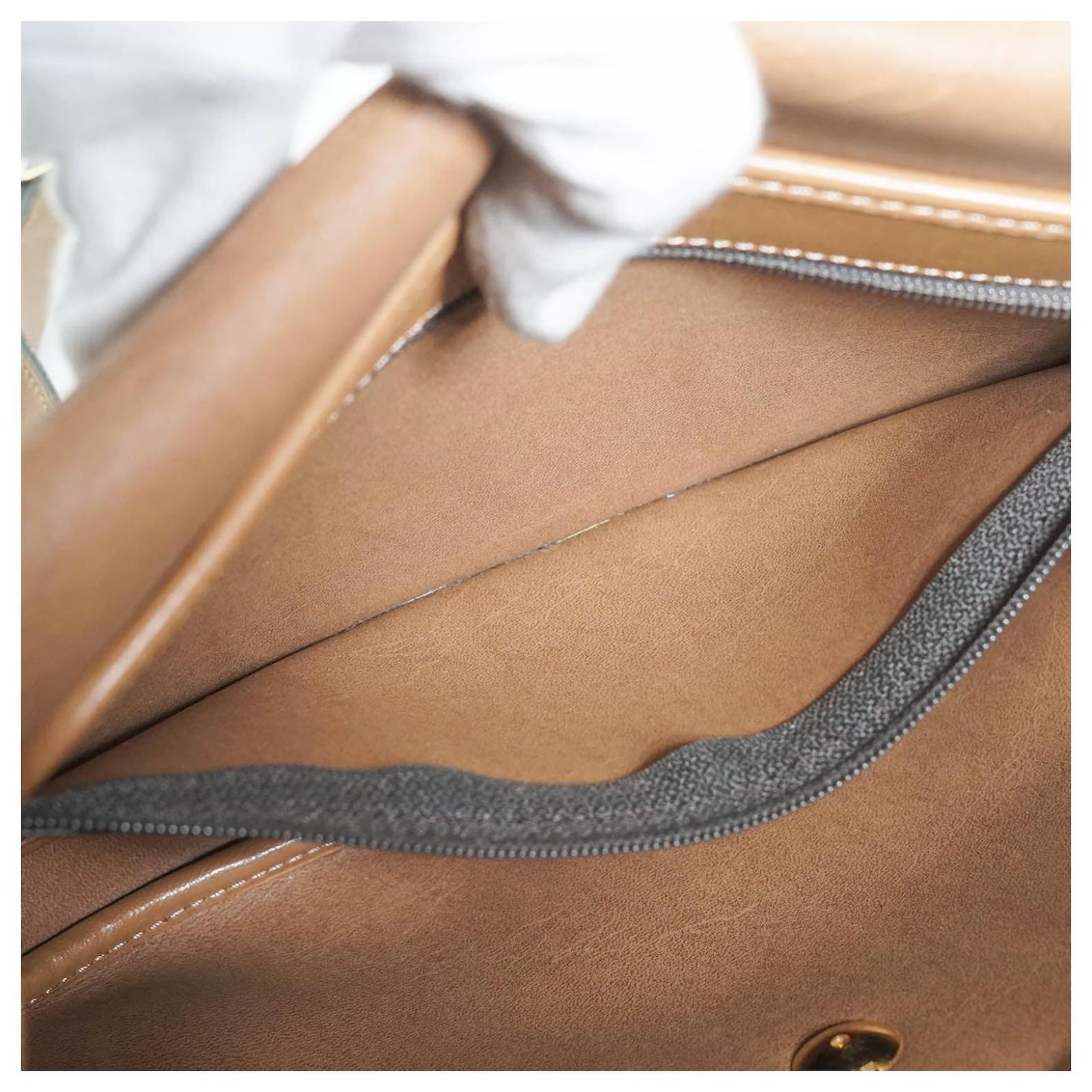 Discoloration: Slight hardware tarnish, leather discoloration along the edges