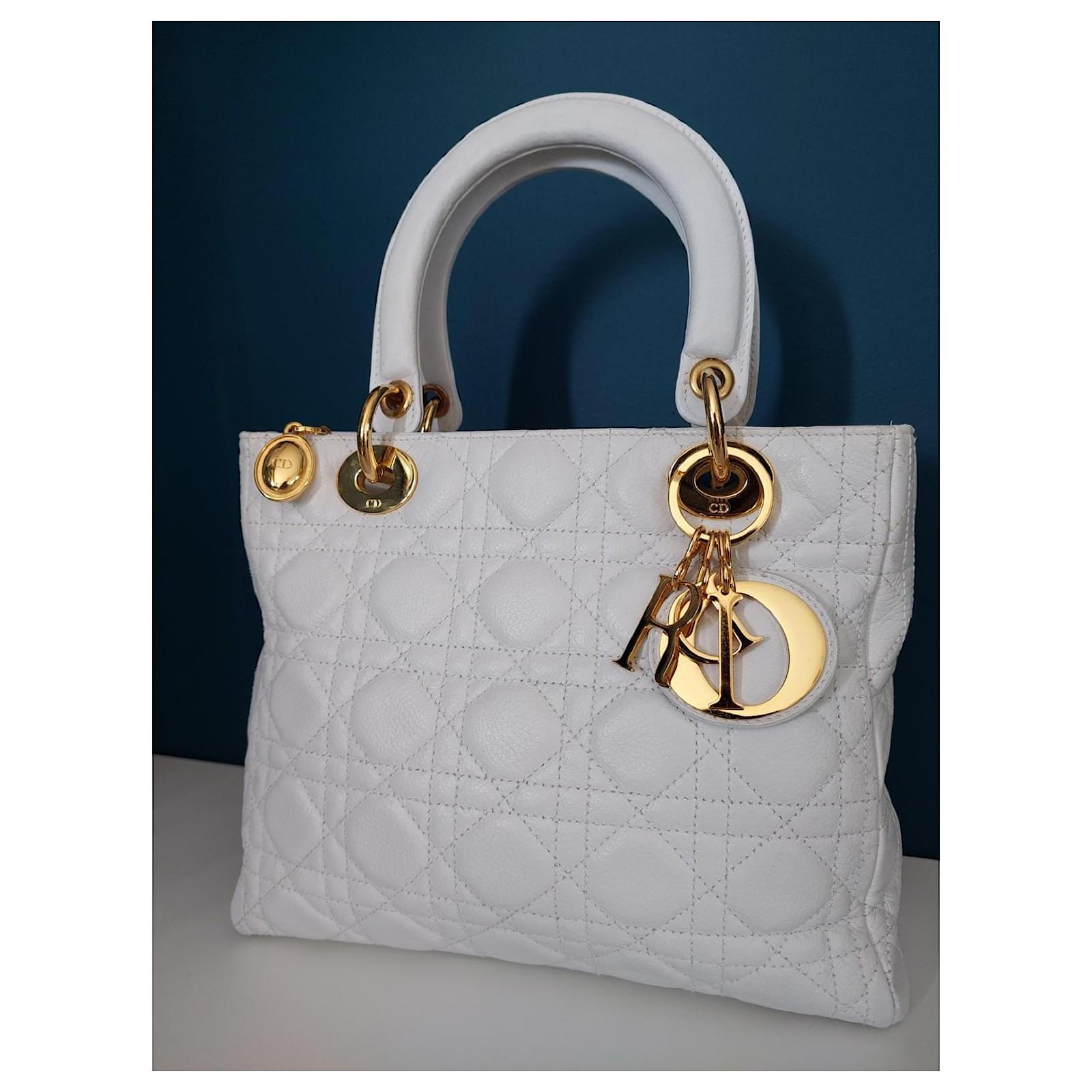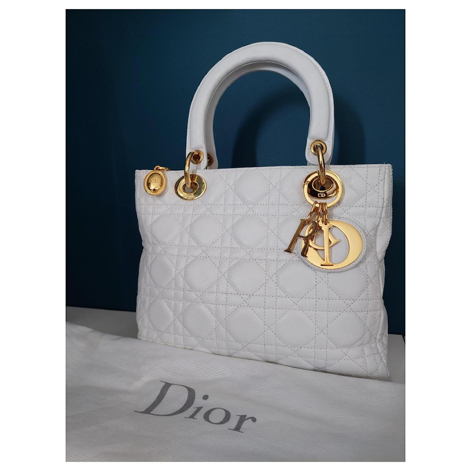 I am selling my vintage white Lady Dior bag in Medium size (25cm) with its Dior dustbag.
