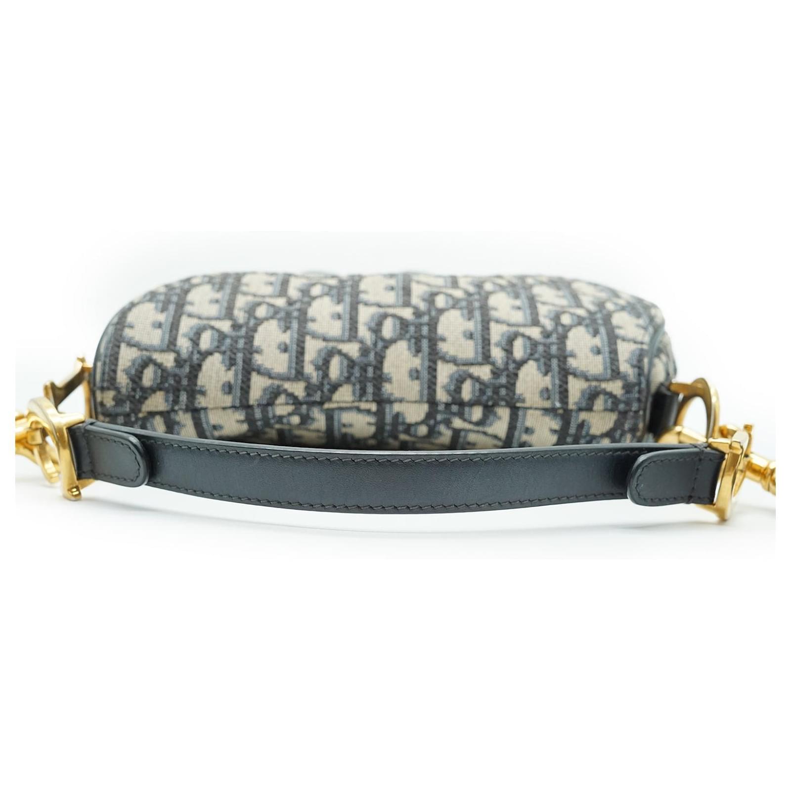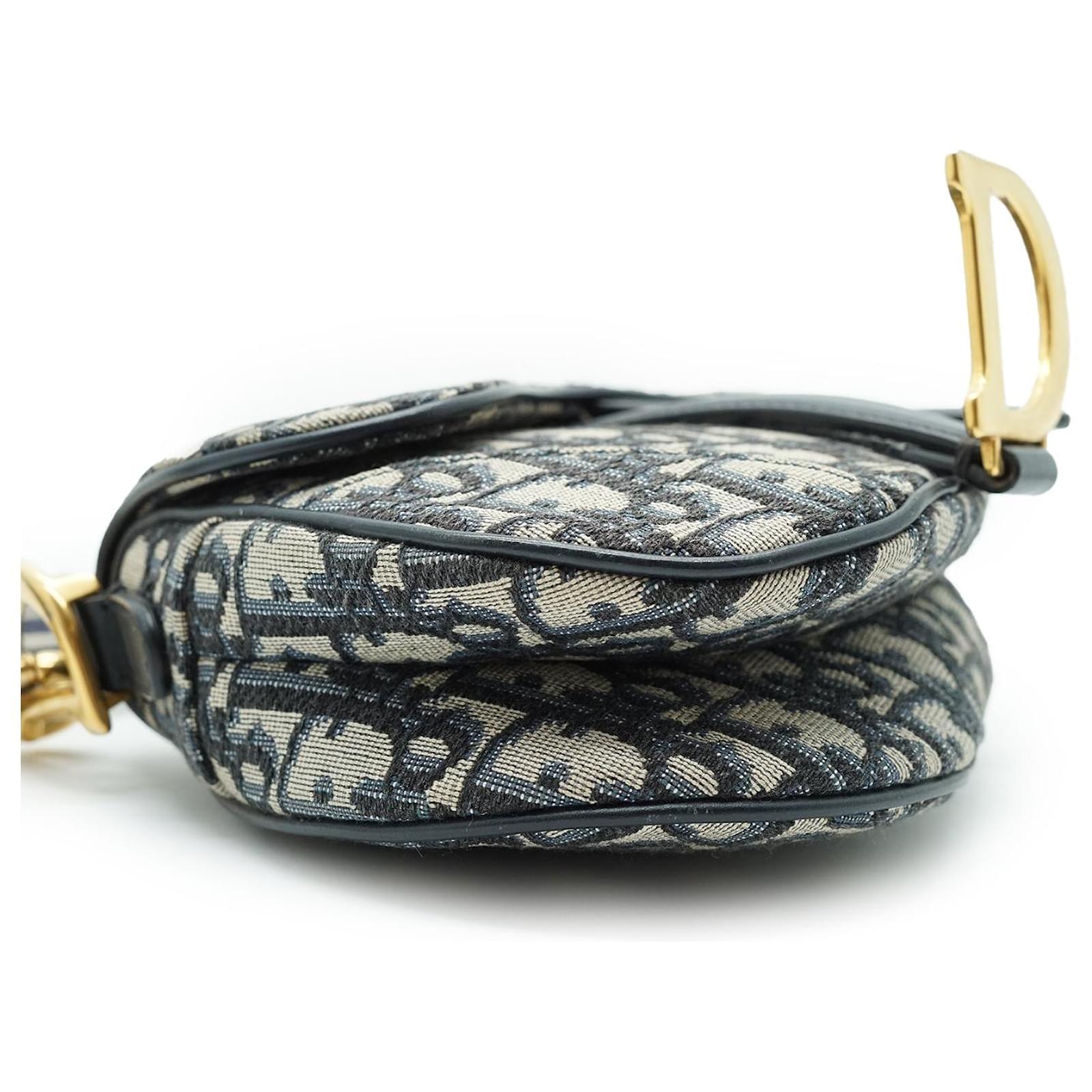 Oblique Jacquard Mini Saddle Bag Bandouliere Navy Canvas, Leather