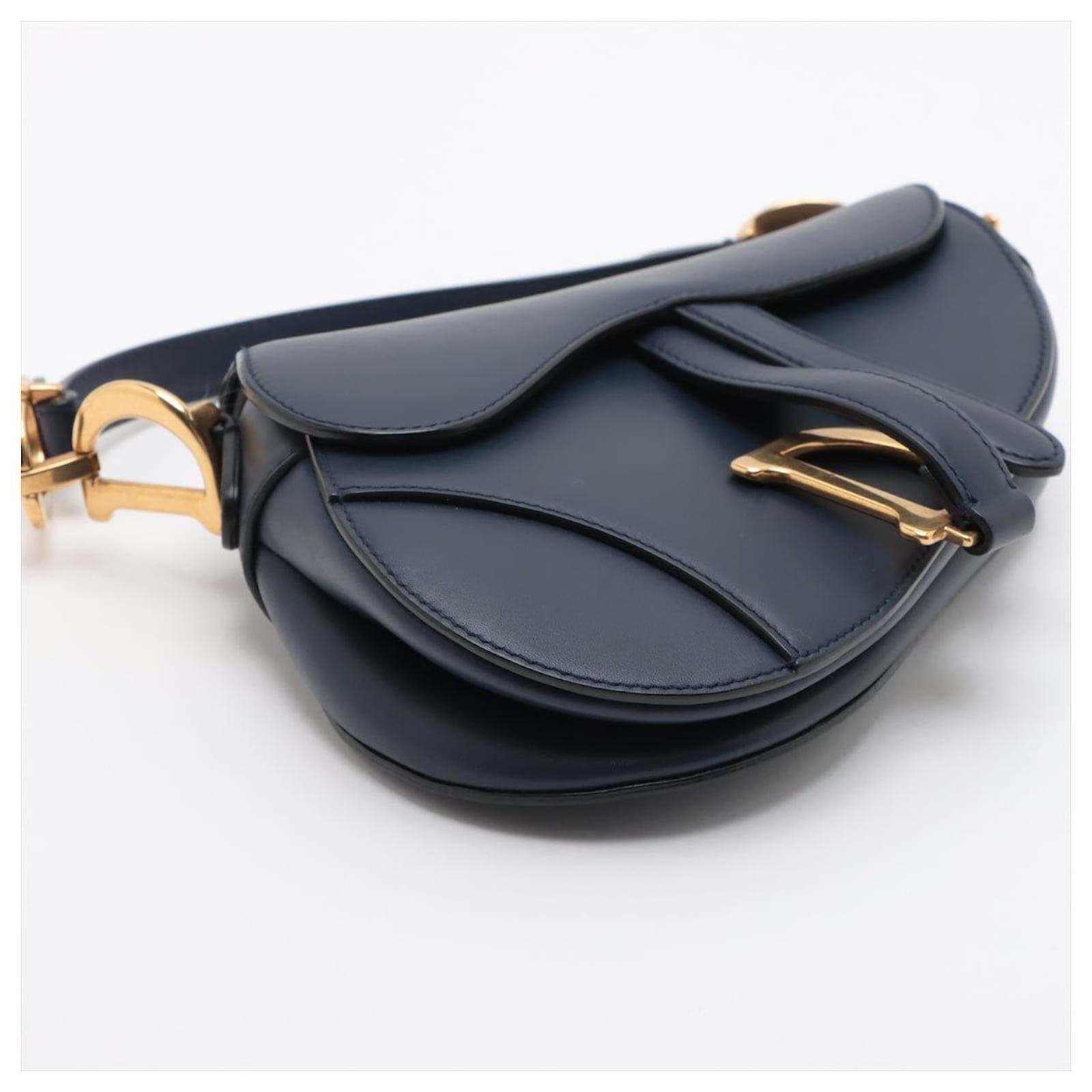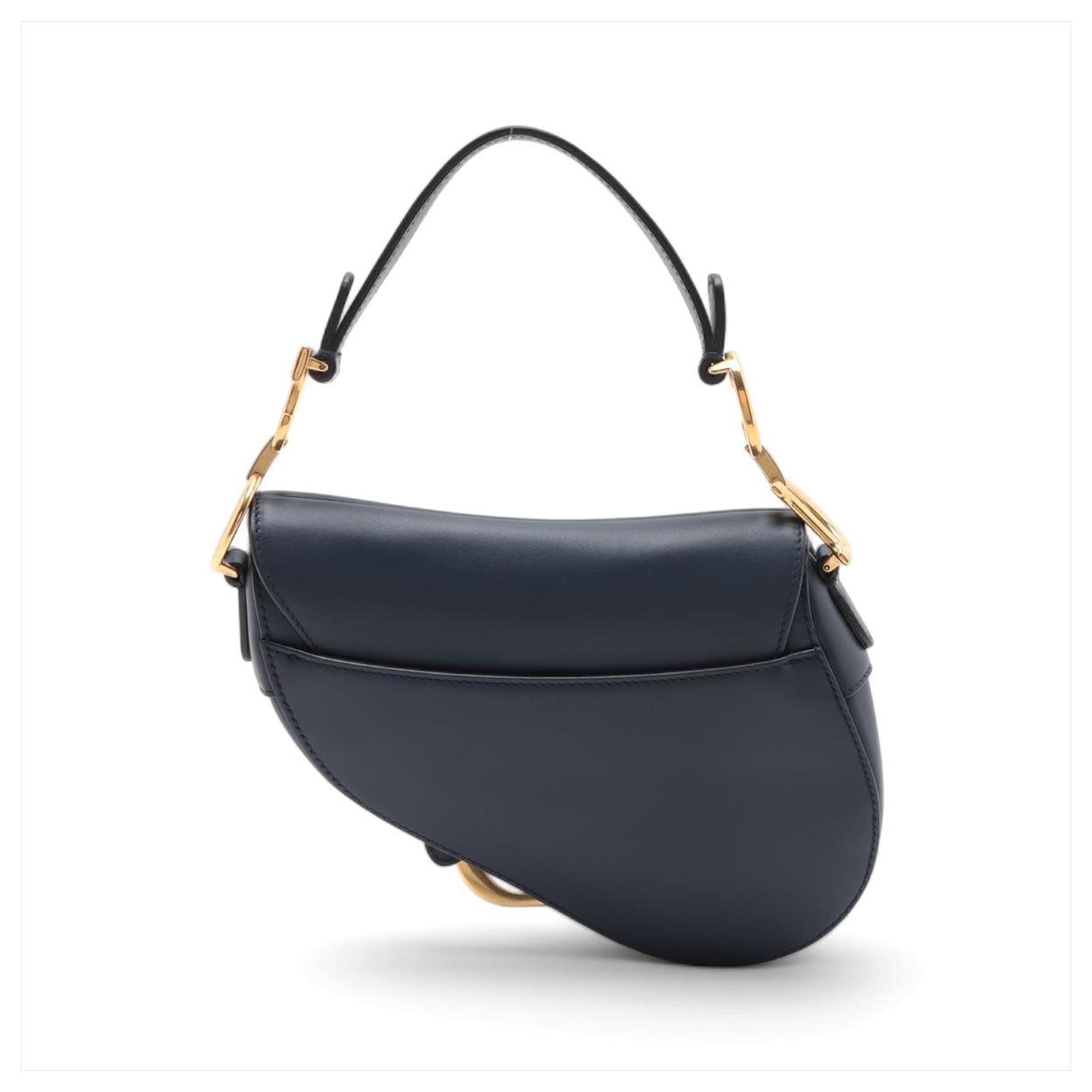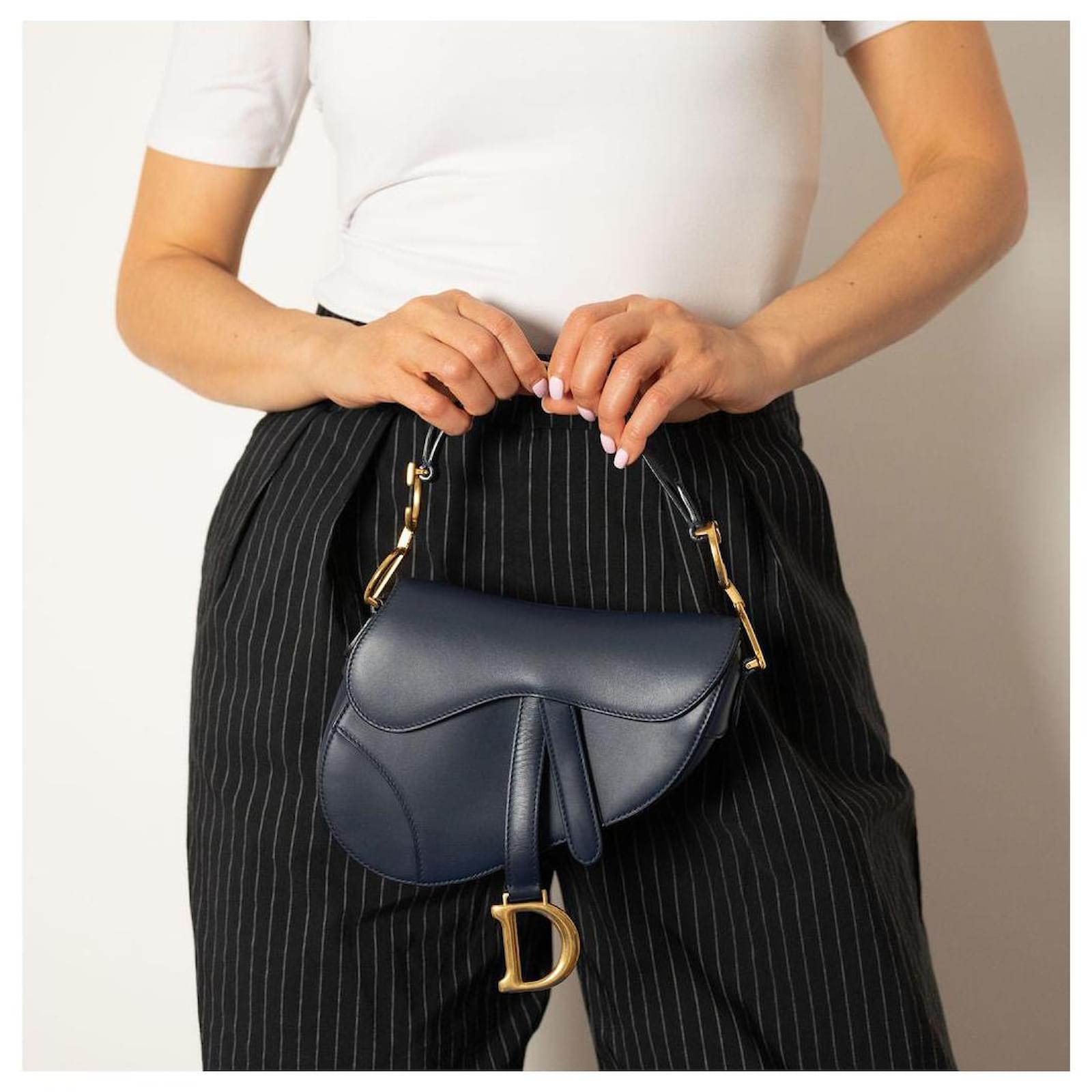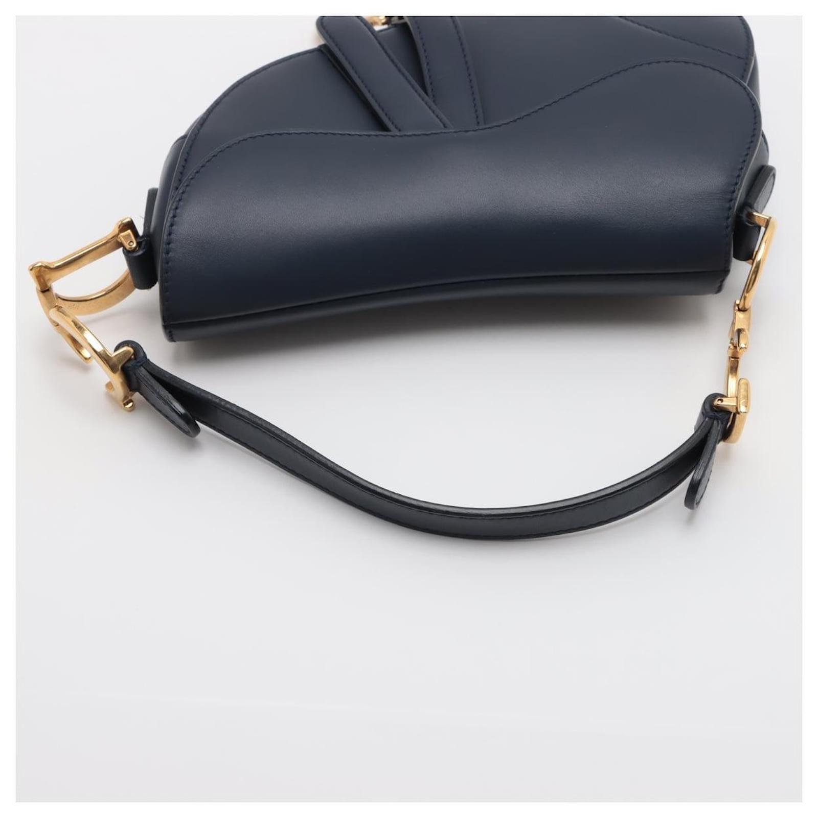 Introducing the Dior Saddle Mini Ultrasmooth Calfskin Leather Handbag in a sophisticated navy hue, a rare find that effortlessly combines elegance with modern flair. In excellent condition, this handbag showcases the iconic saddle silhouette, complete with a striking gold-tone 'D' charm that adds a touch of opulence. Its compact size makes it an ideal choice for evening wear or chic outings, allowing you to carry your essentials with style. 100% authenticity guaranteed, this piece exemplifies Dior's commitment to timeless design and craftsmanship, making it a worthy addition to any luxury collection.