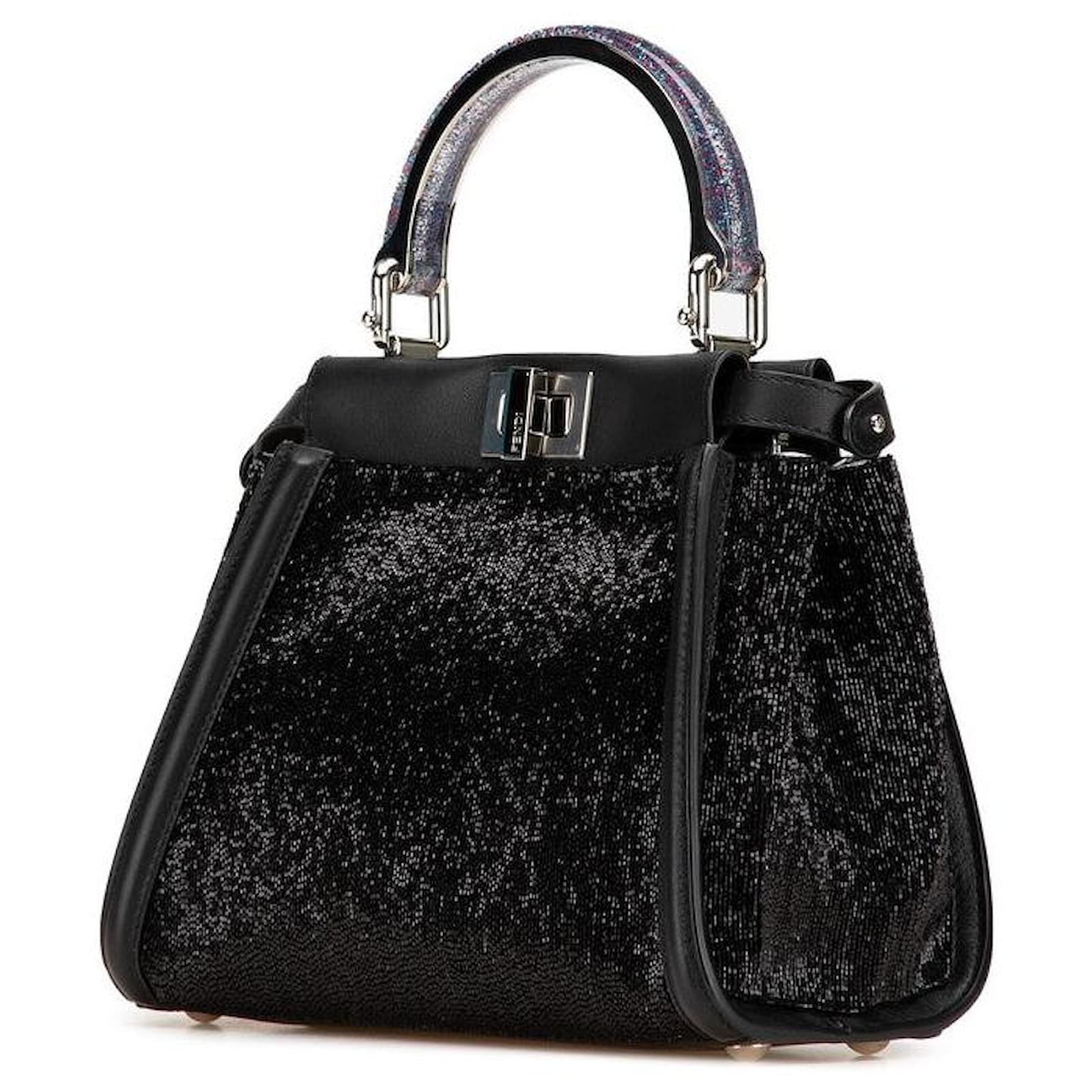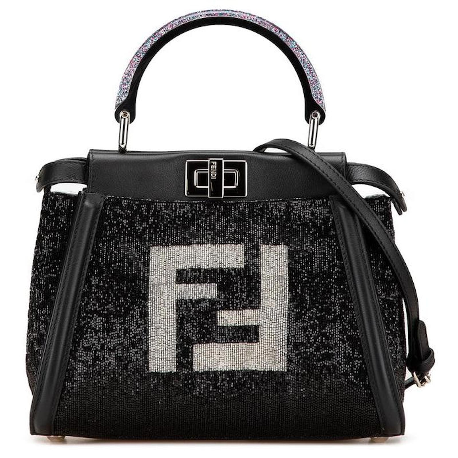 Fendi Beads Leather Mini Peekaboo Iconic 2way Bag 8BN316 Black