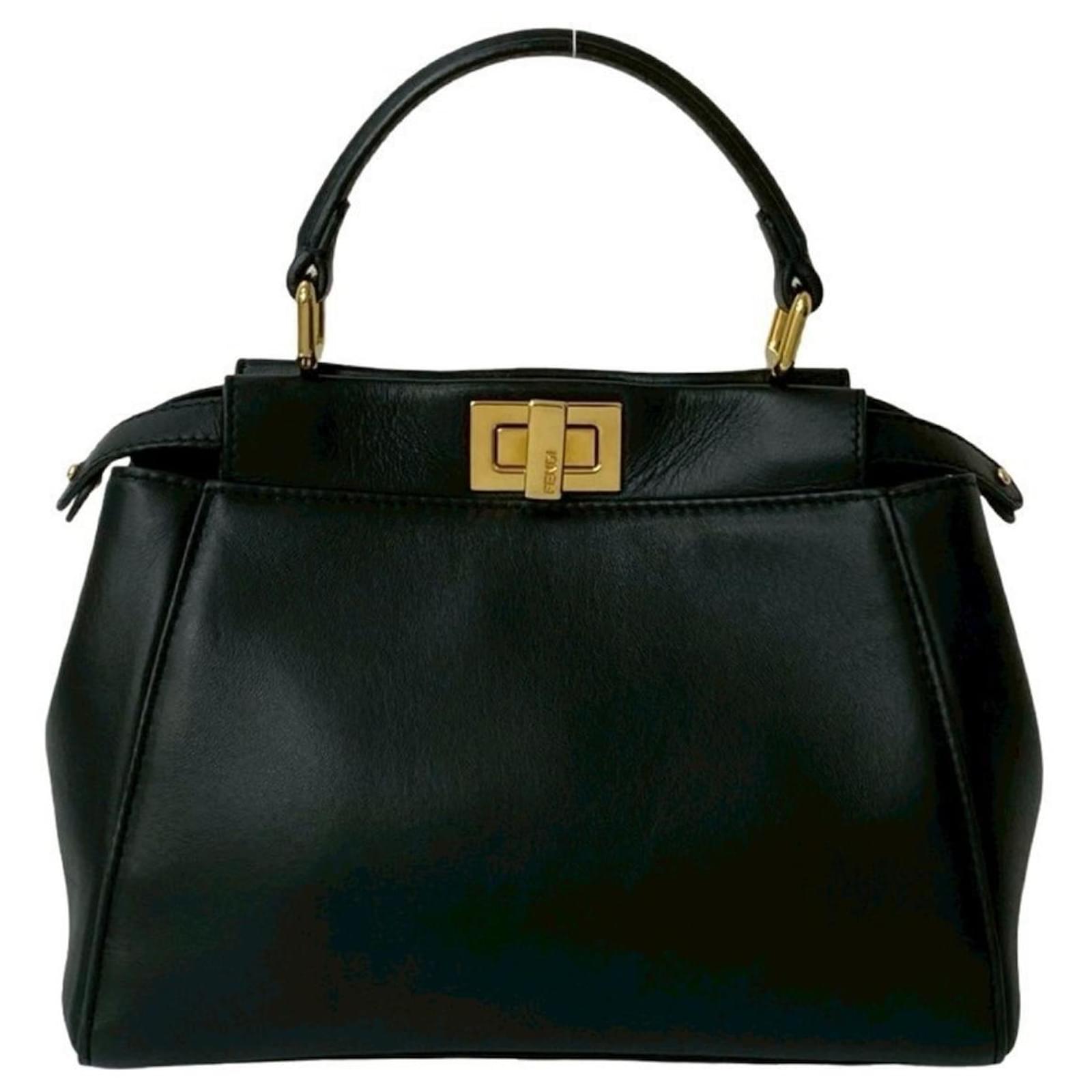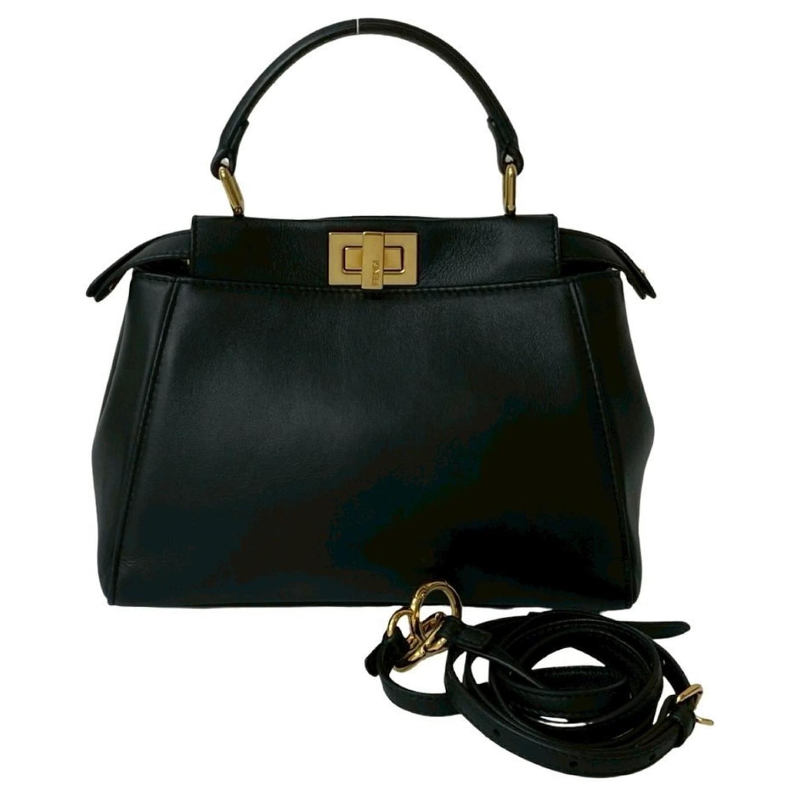 Fendi Peekaboo Leather 2-Way Handbag Black