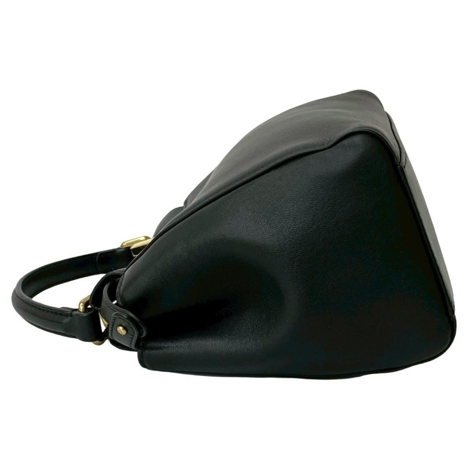 The Fendi Peekaboo Leather 2-Way Handbag is a versatile accessory that can be used as a Boston bag, handbag, or shoulder bag. It features a sleek black leather exterior and measures 19.5cm in height, 21.5cm in width, and 10.5cm in depth. This mini handbag is branded by Fendi and is classified as used, with a condition ranking of AB, indicating it shows slight traces of usage, including minor scratches and dirt. Included with the bag are a dust bag, manual, rain cover, and shoulder strap. Potential buyers are encouraged to review the images for a detailed view of the item's condition and included accessories.