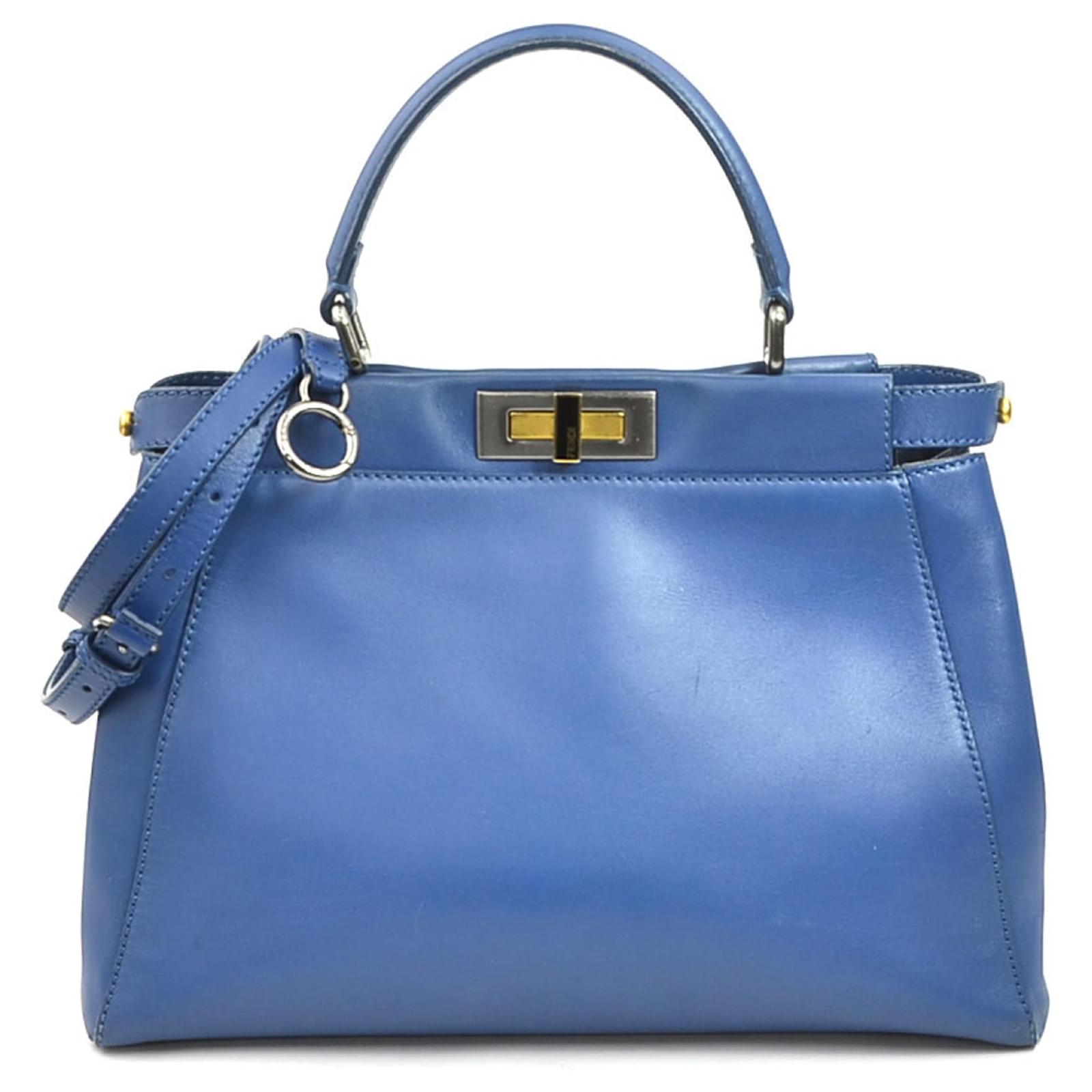 Fendi Peekaboo Medium Leather Shoulder Bag Blue
