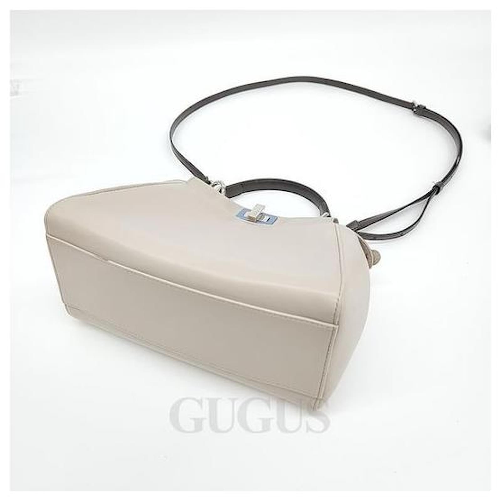 Contents: It is made of gray tone leather, matched with blue colored hardware, and has a separate storage space with a detachable turnlock strap, making it a practical tote and shoulder bag. There is a strap purchased separately. Body - Body stains and wear, hardware scratches Handle - Good / Strap good Strap (used) - Minor glaze wear Interior - Interior Good except for silver stains Edges - wear