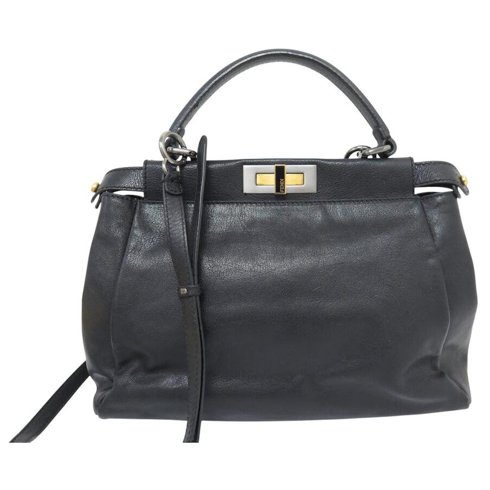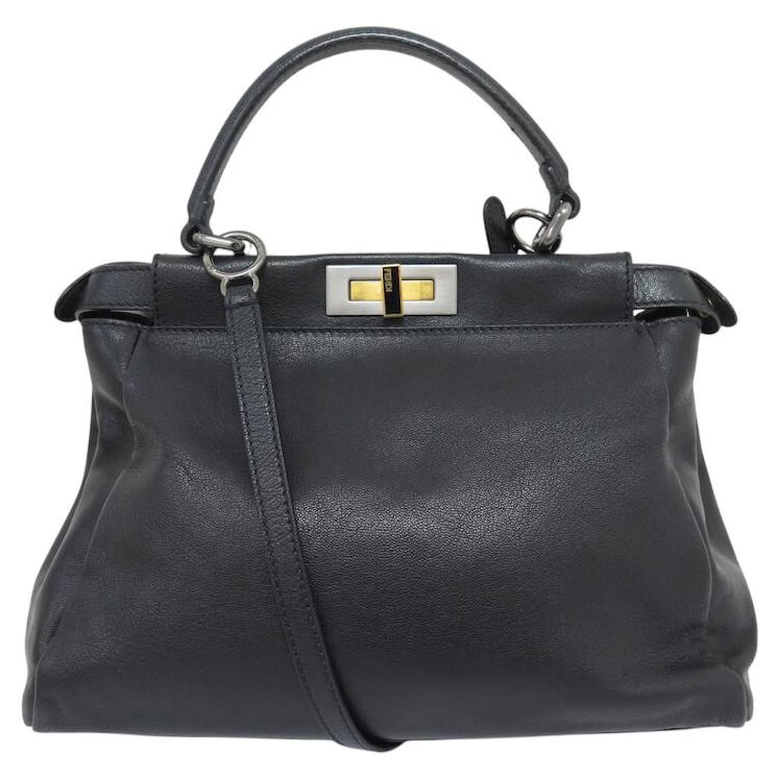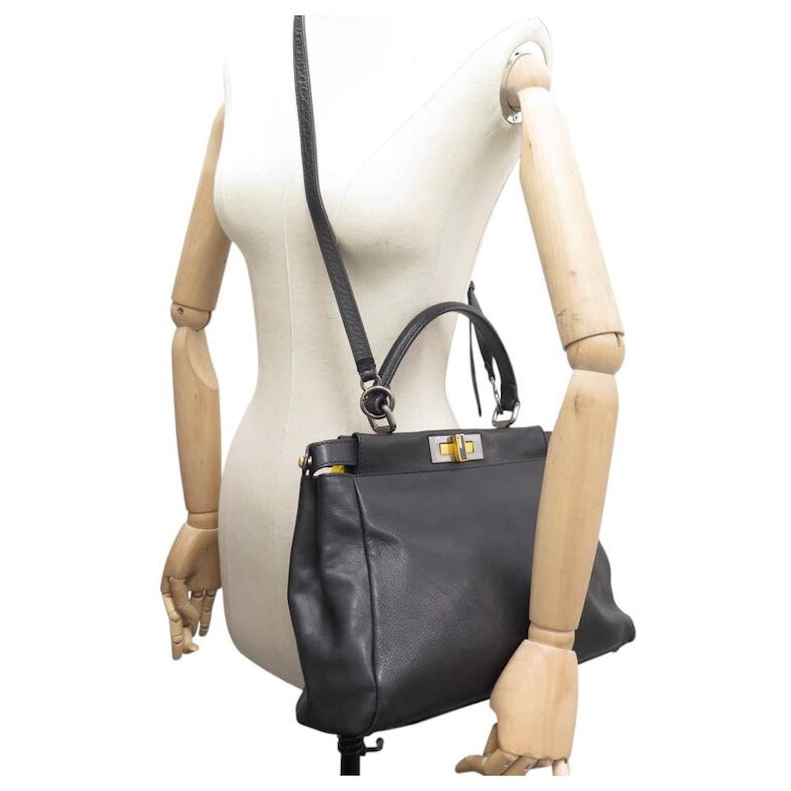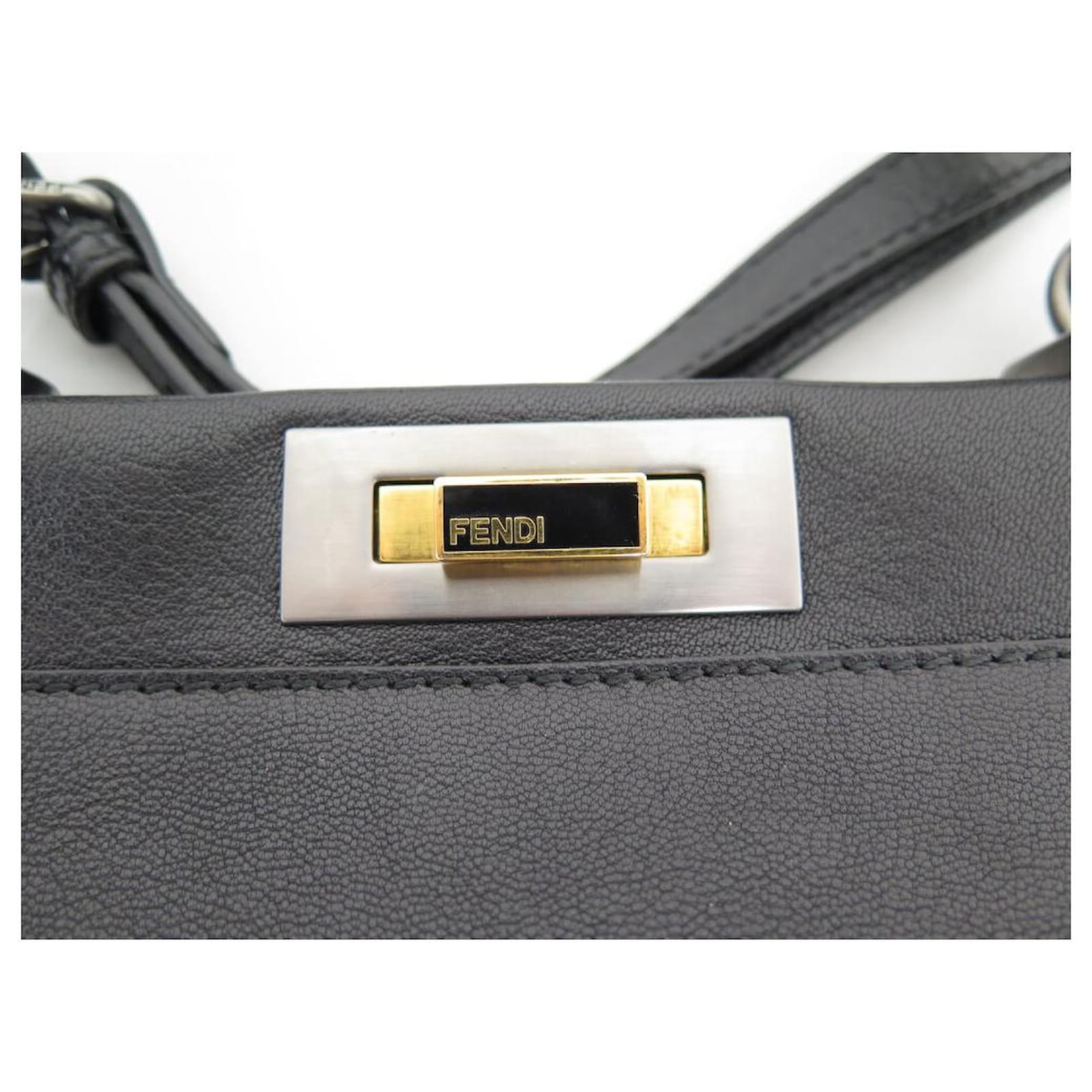 FENDI PEEKABOO MM 8BN226 REGULAR BLACK LEATHER SHOULDER BAG