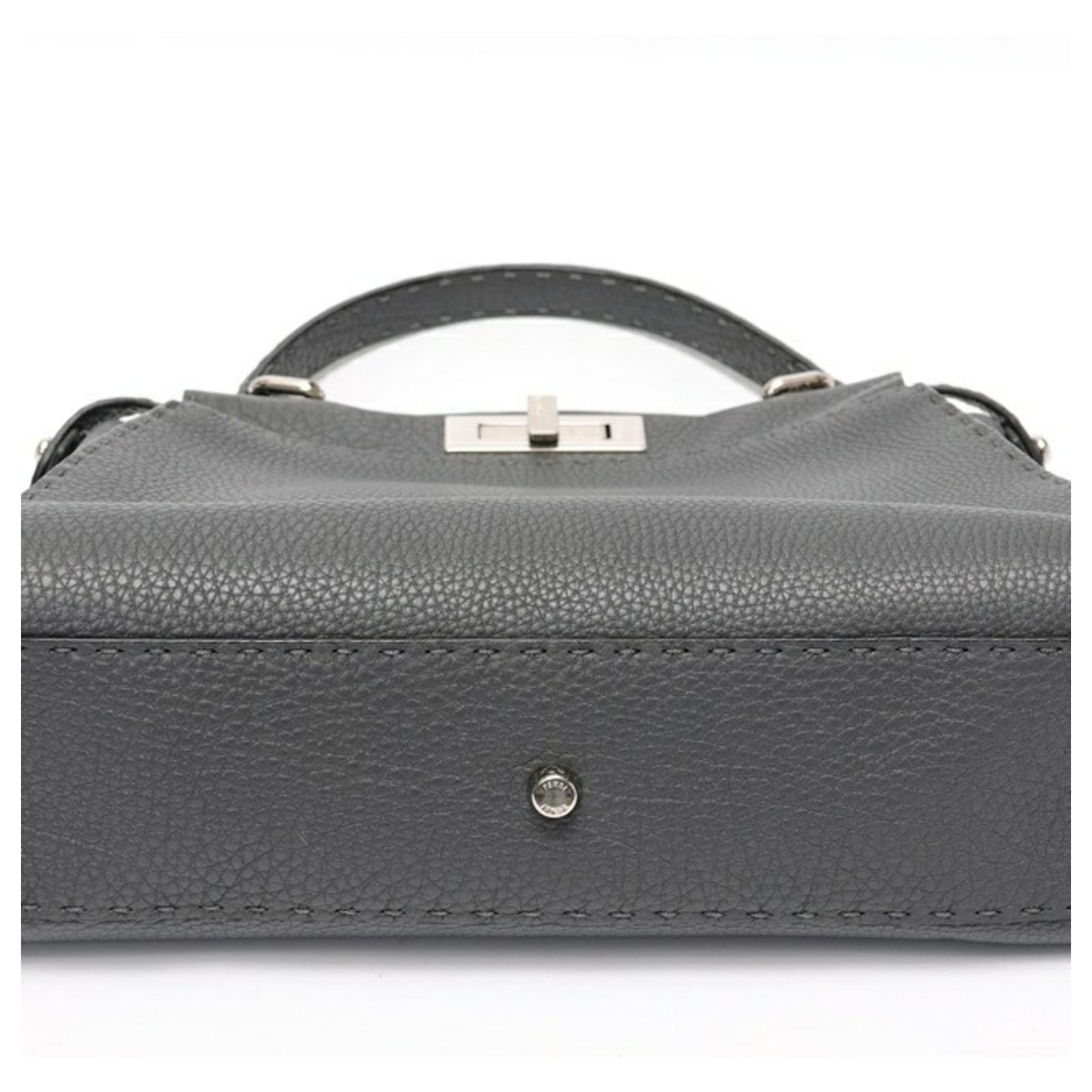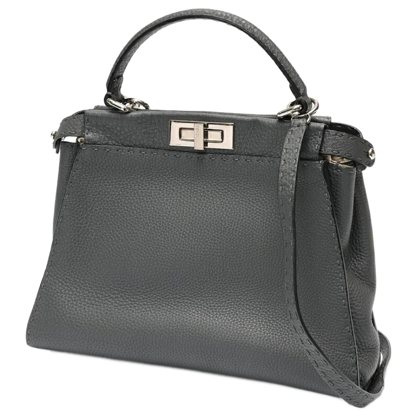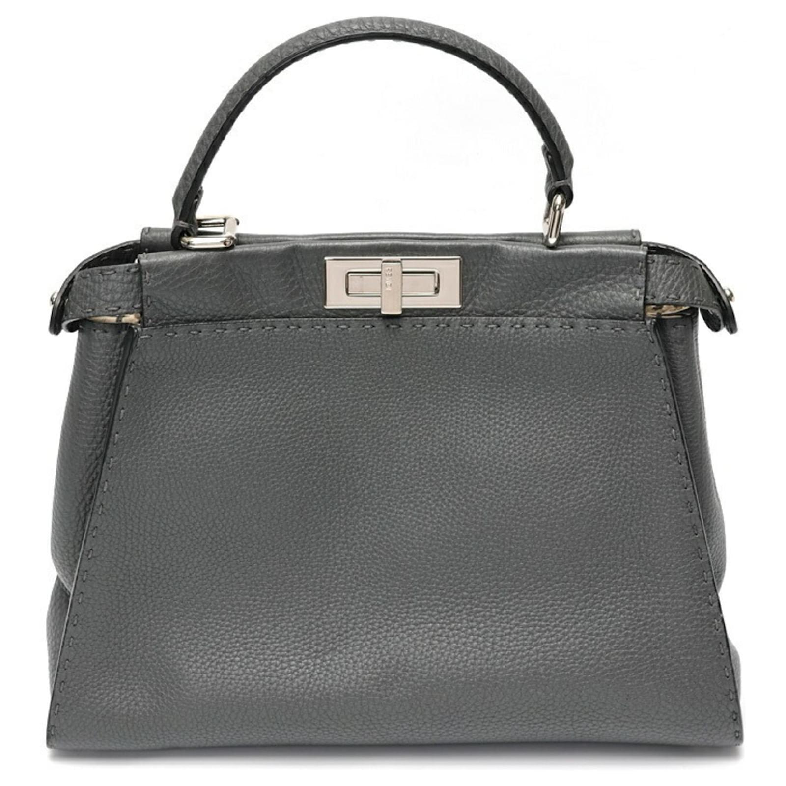 The Fendi Peekaboo Regular handbag is crafted from gray leather, showcasing a sophisticated design. Measuring 26cm in height, 34cm in width, and 11cm in depth, this handbag is both stylish and functional. It is a product of Italy and comes from the renowned brand Fendi.