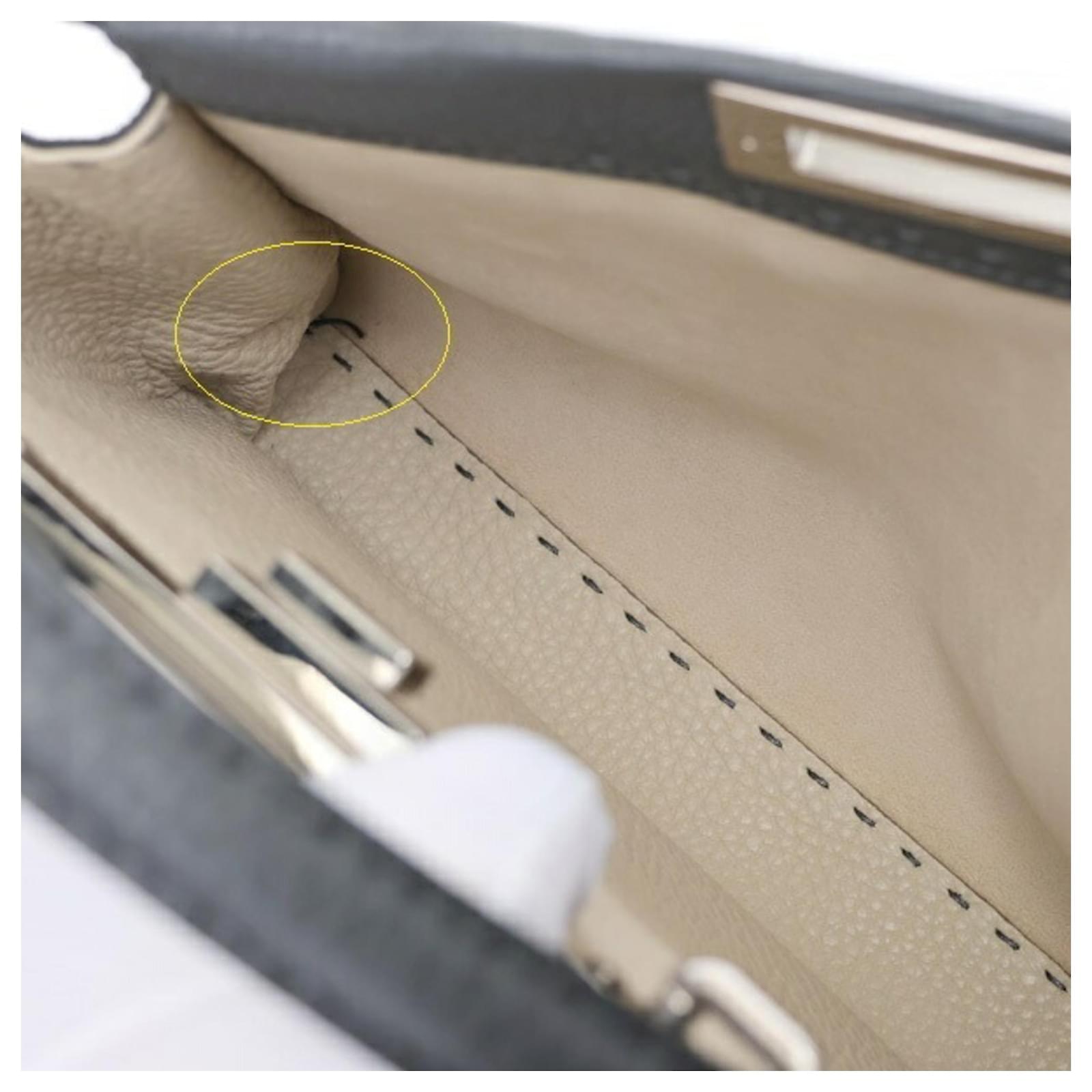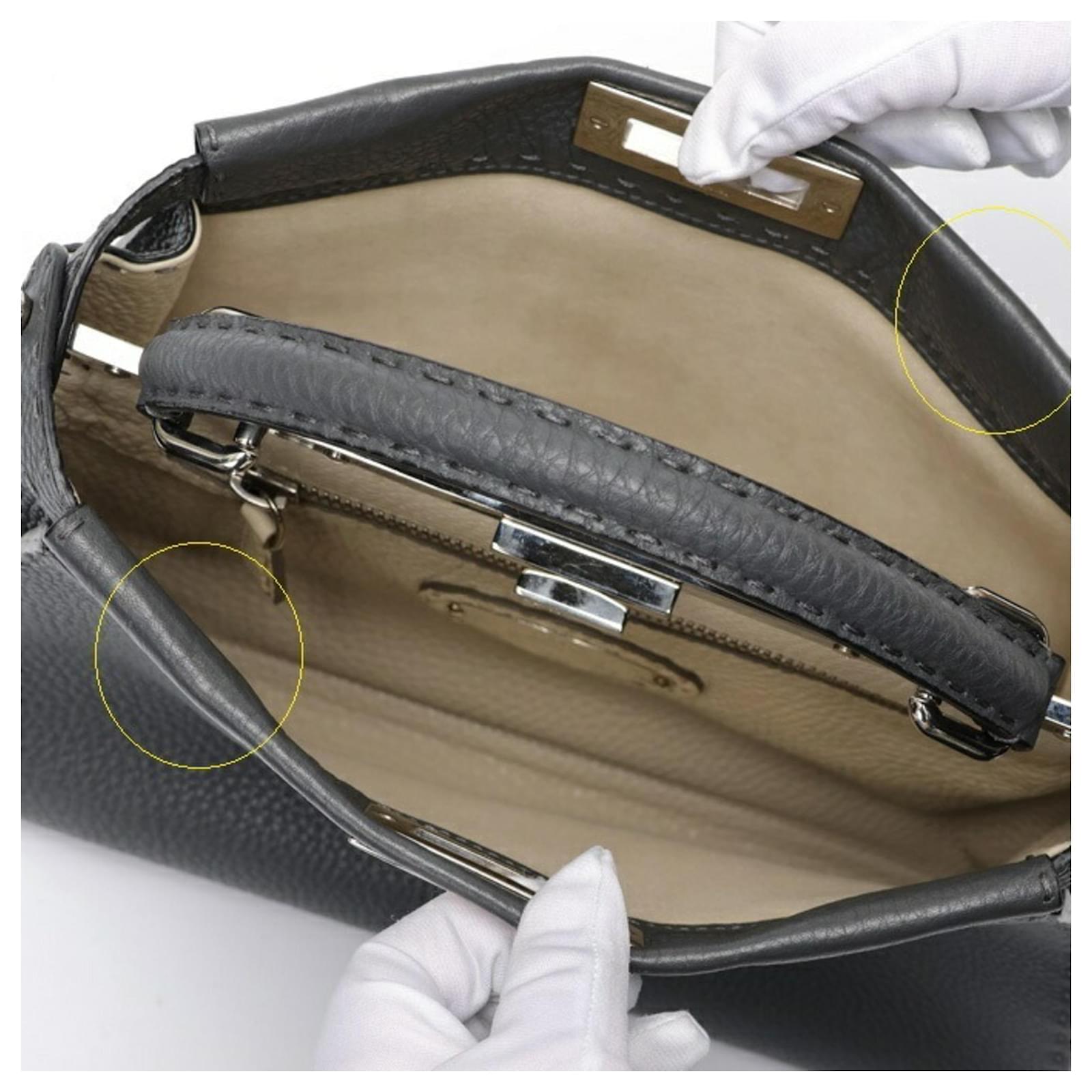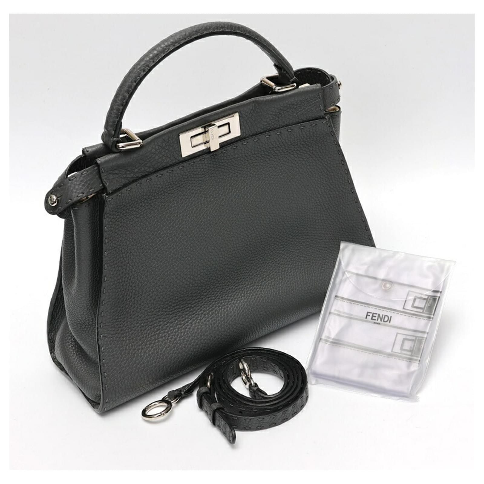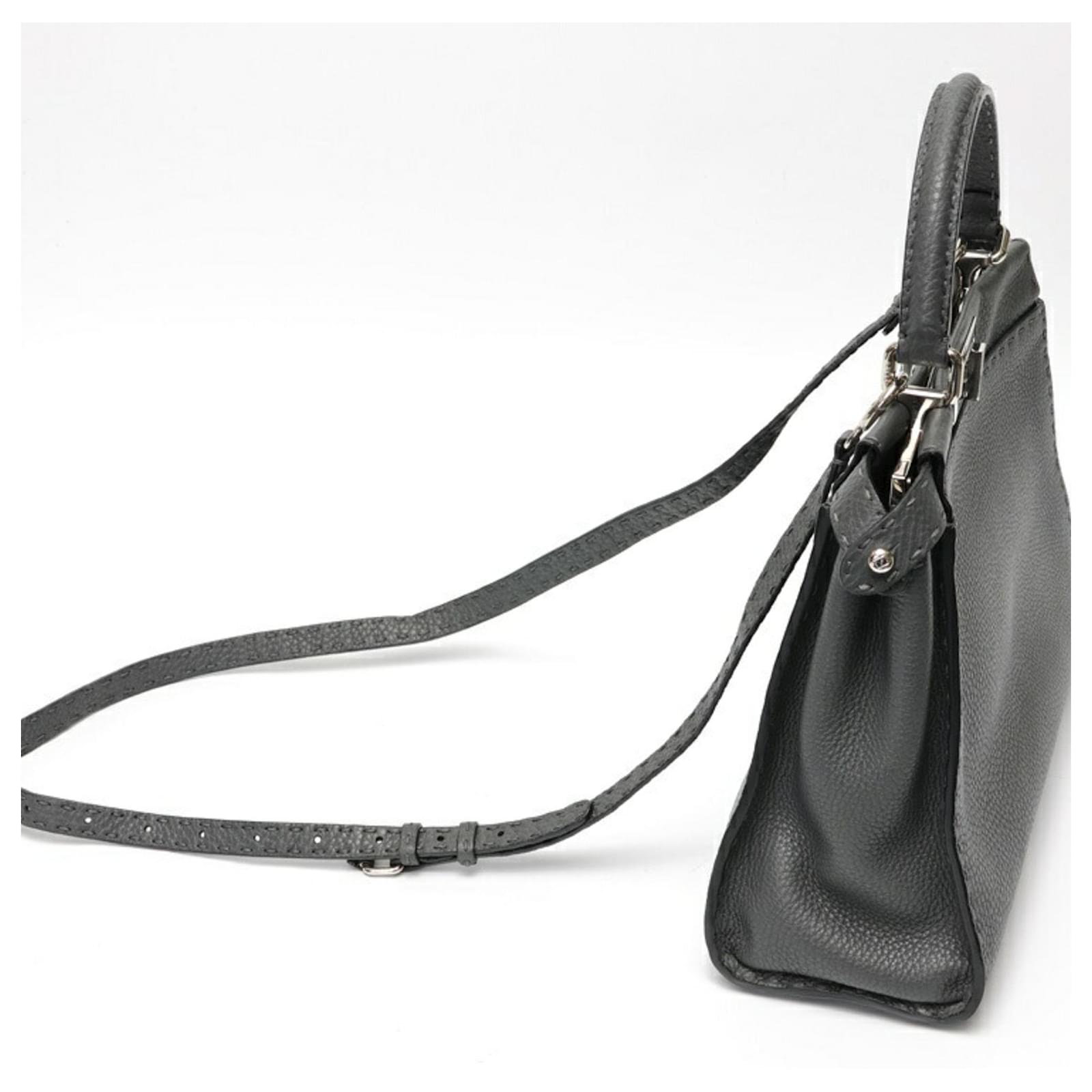 The Fendi Peekaboo Regular handbag is crafted from gray leather, showcasing a sophisticated design. Measuring 26cm in height, 34cm in width, and 11cm in depth, this handbag is both stylish and functional. It is a product of Italy and comes from the renowned brand Fendi.