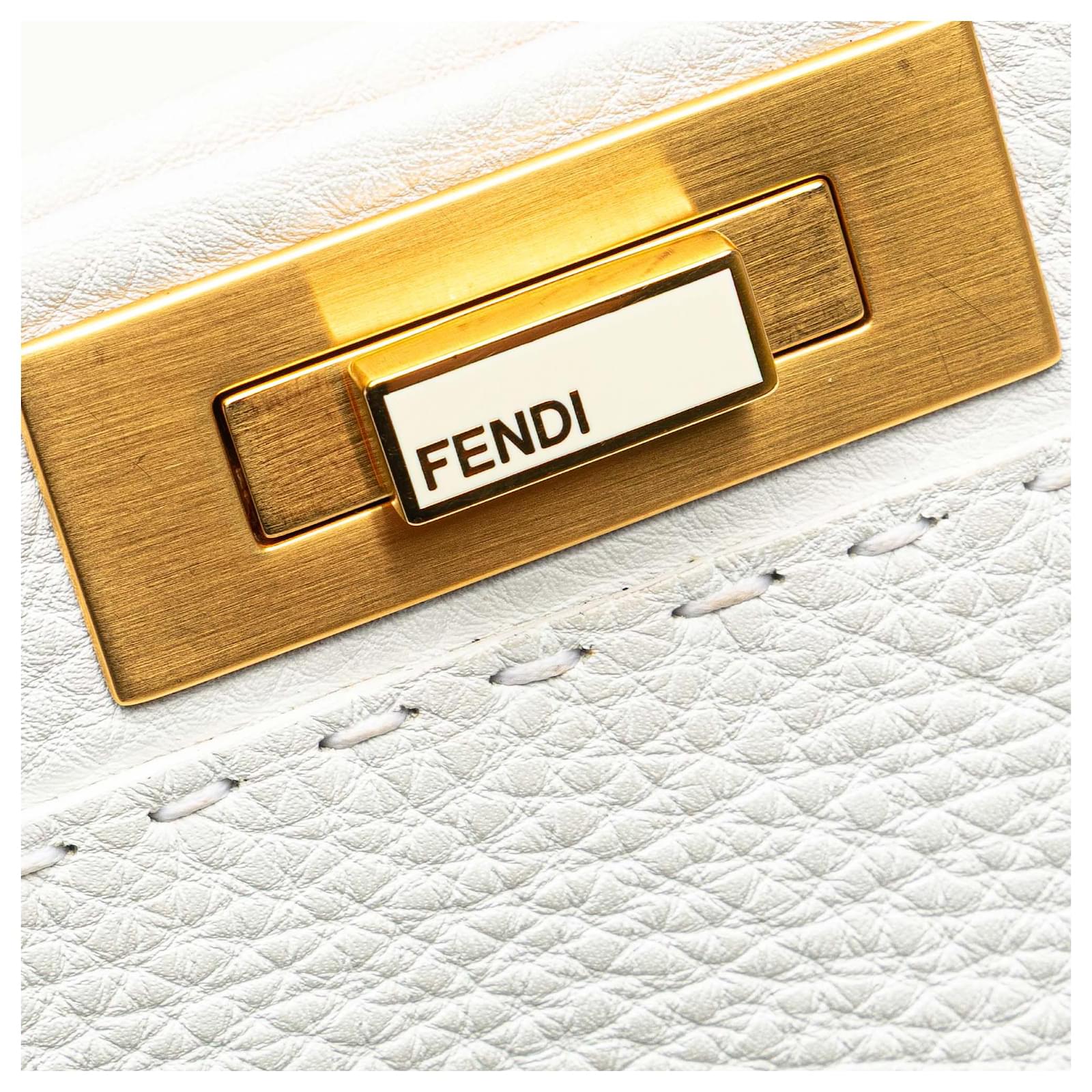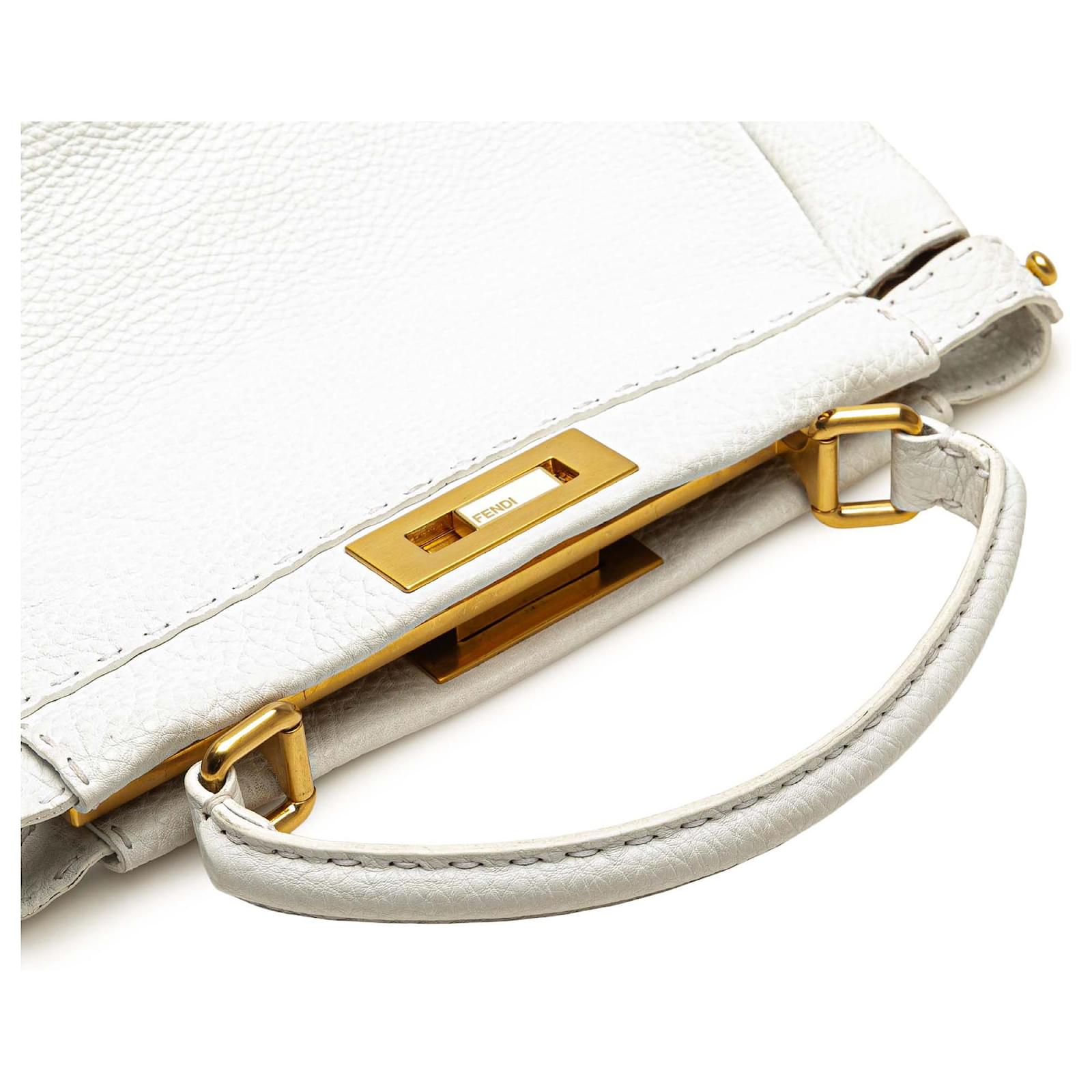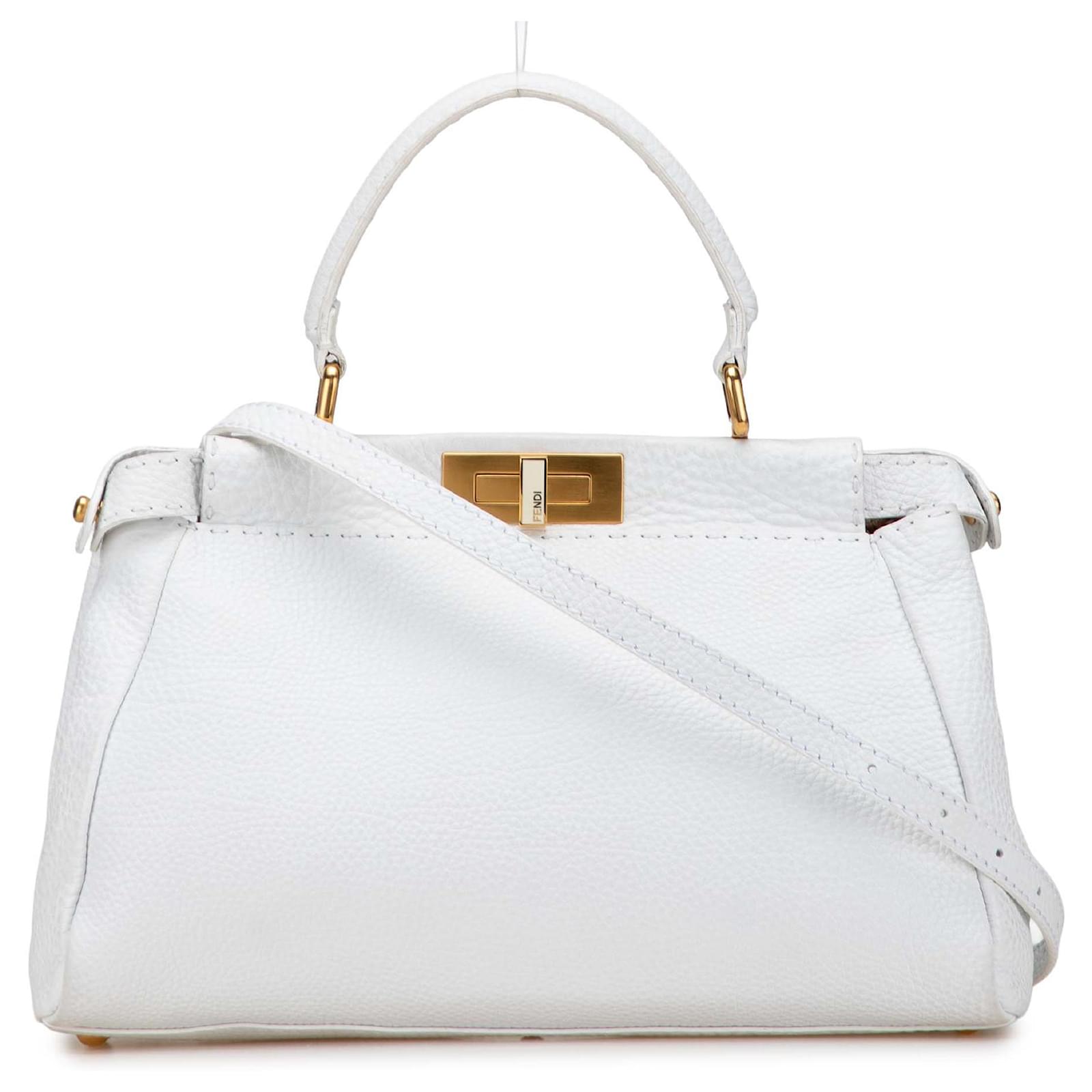 Fendi White Medium Pebbled Leather Peekaboo Satchel
