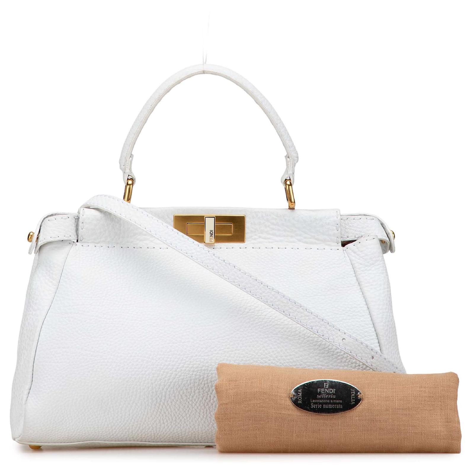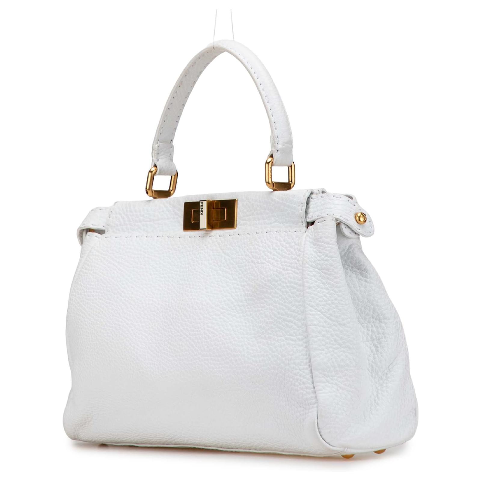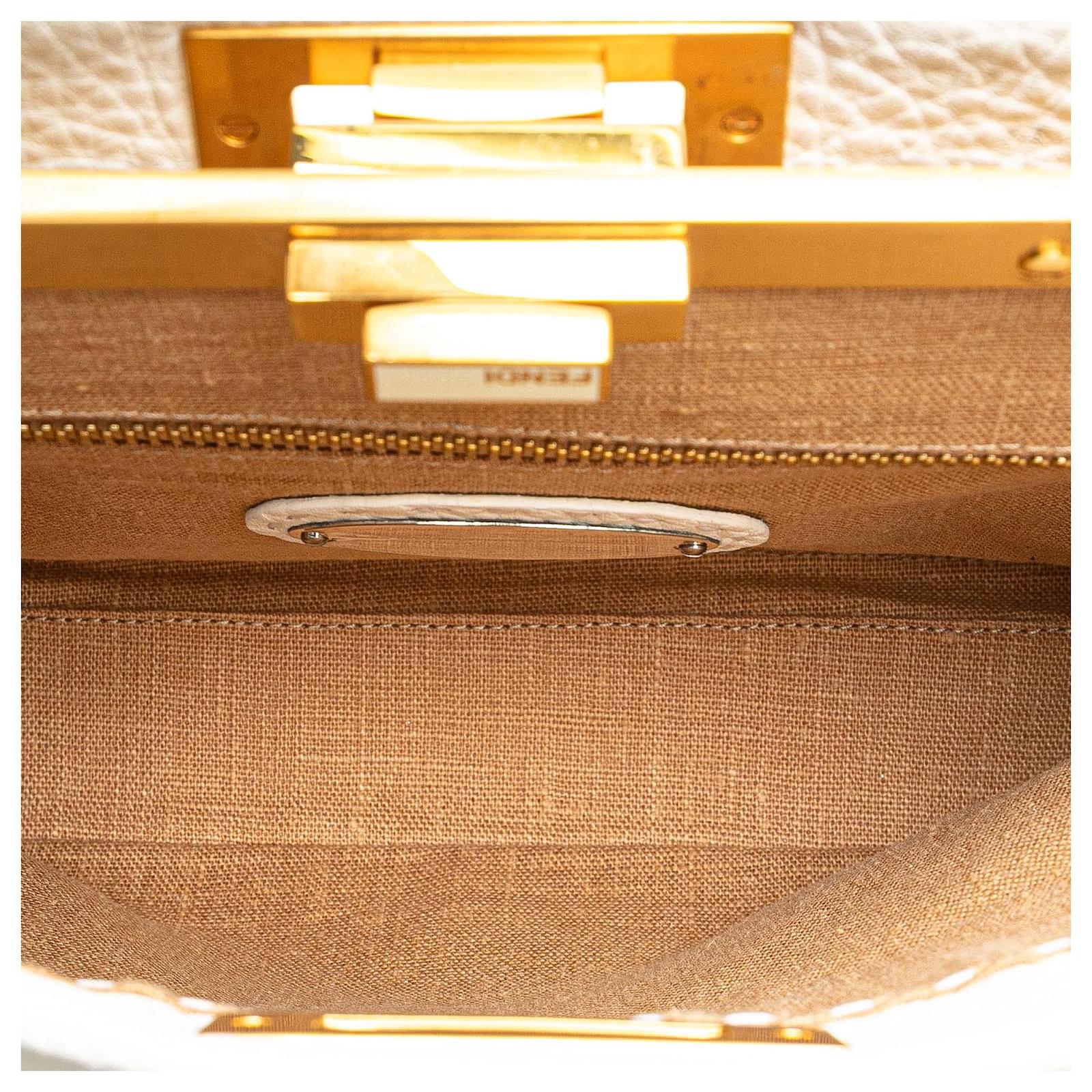 Fendi White Medium Pebbled Leather Peekaboo Satchel