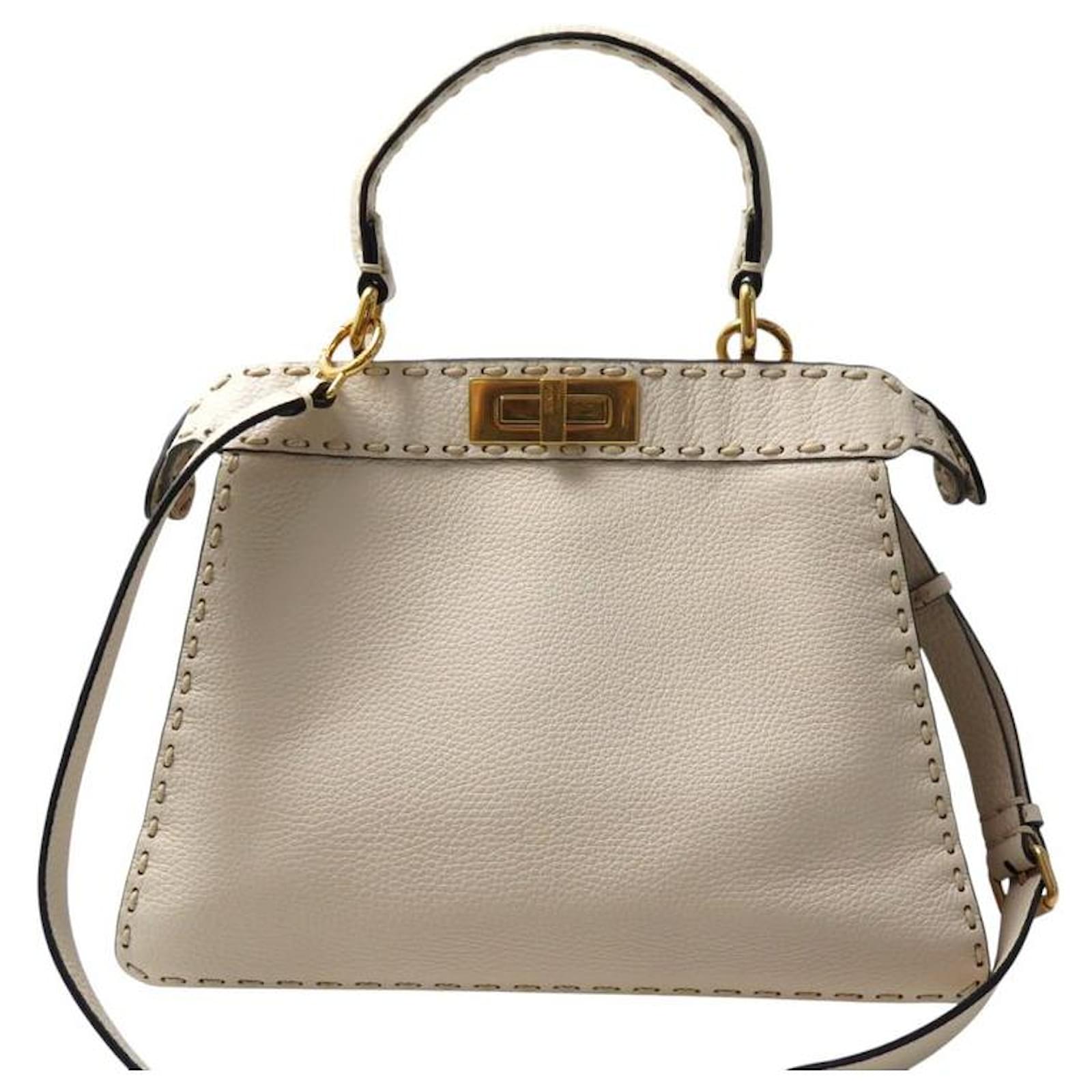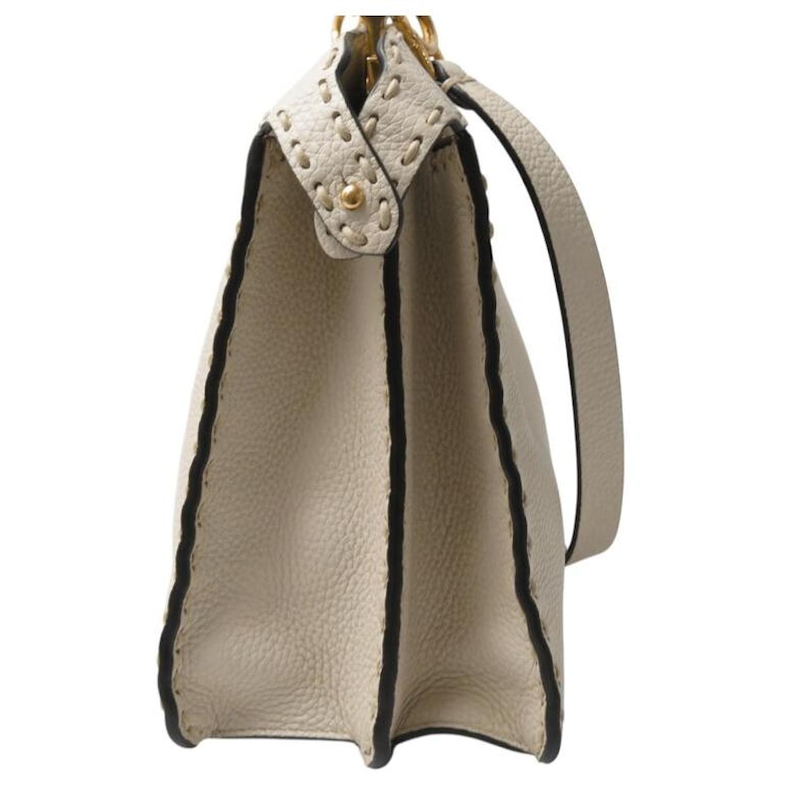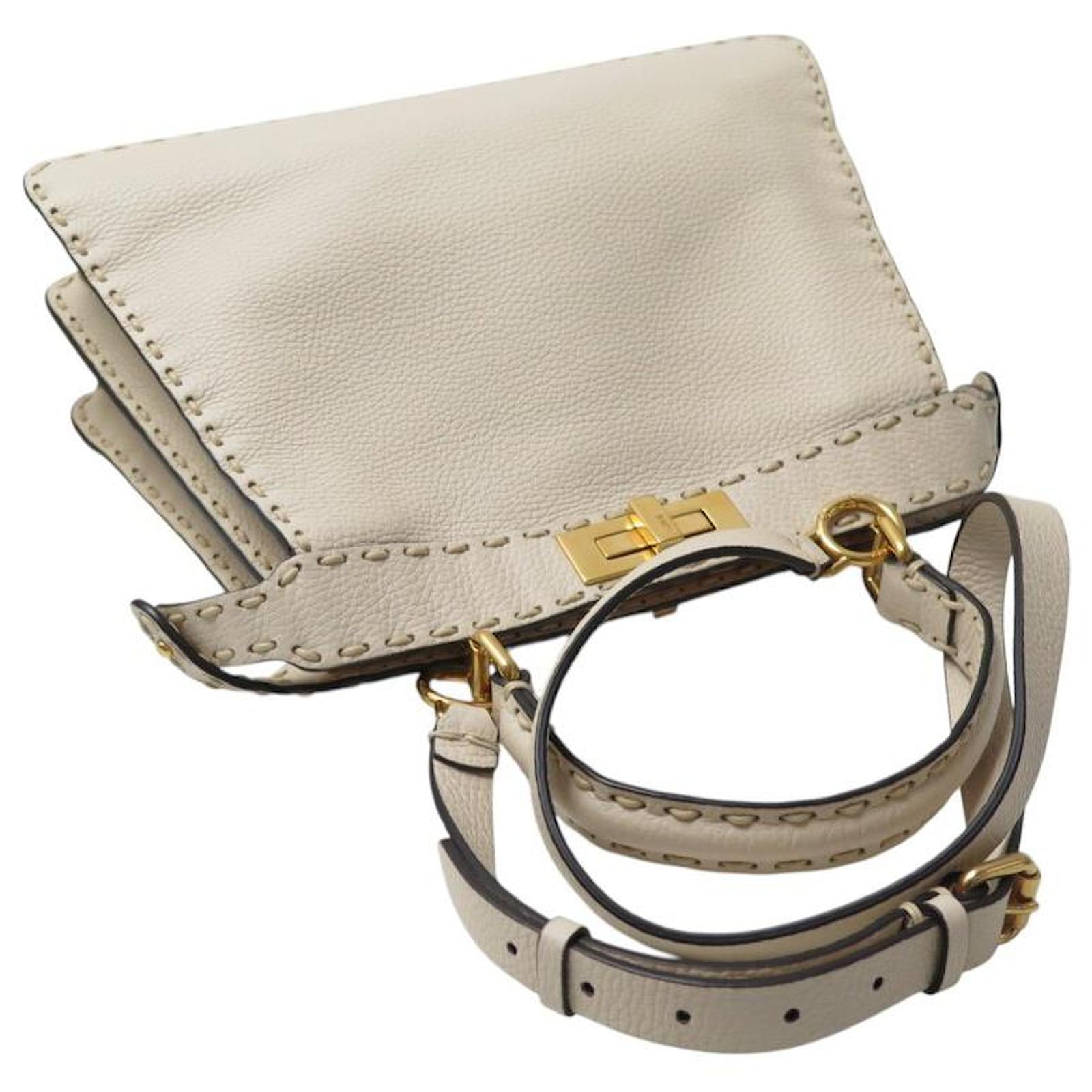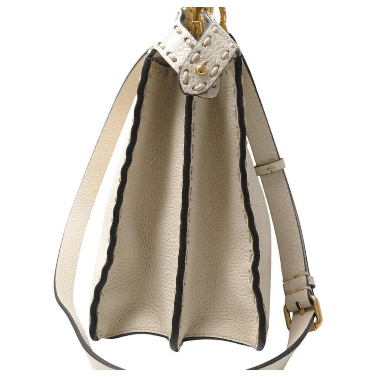 NEW FENDI PEEKABOO MEDIUM 8BN321 BEIGE GRAINED LEATHER HANDBAG