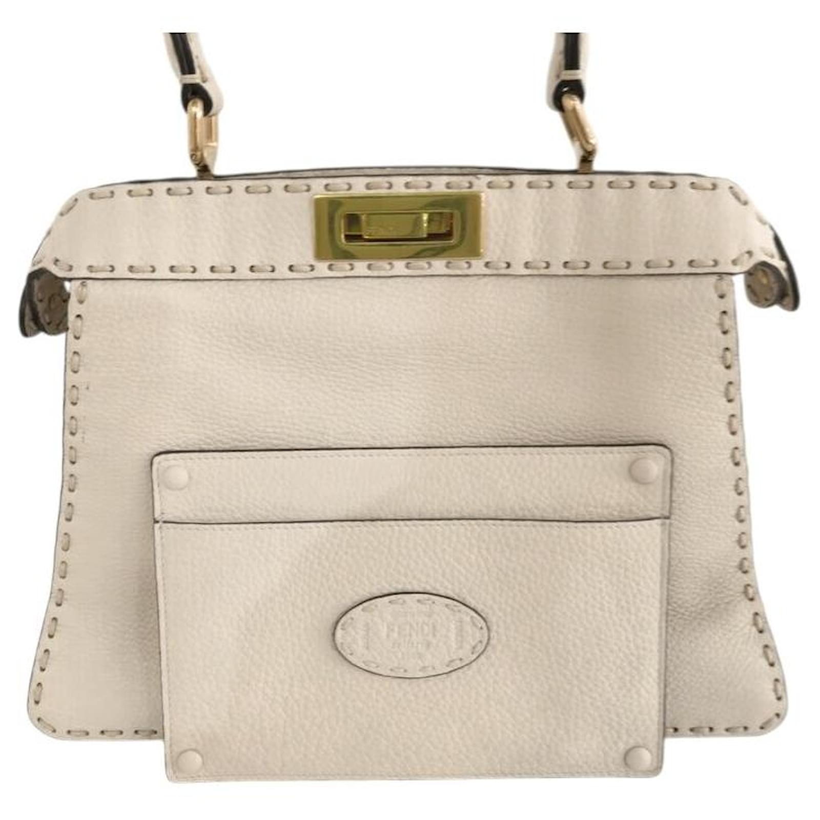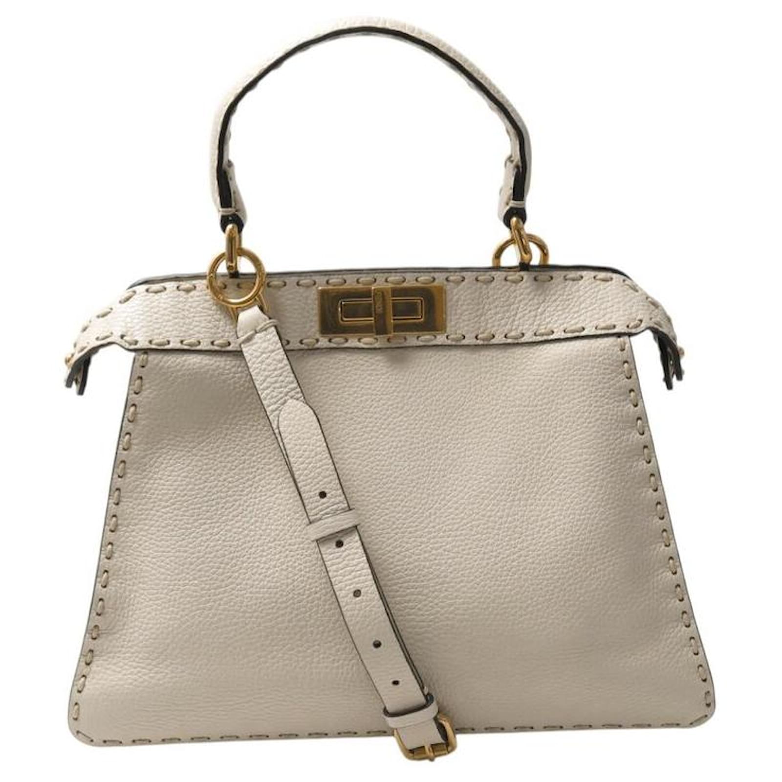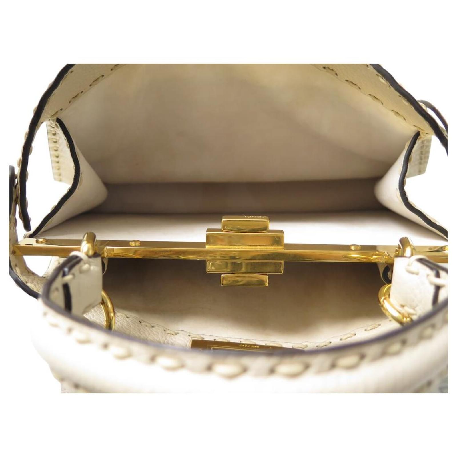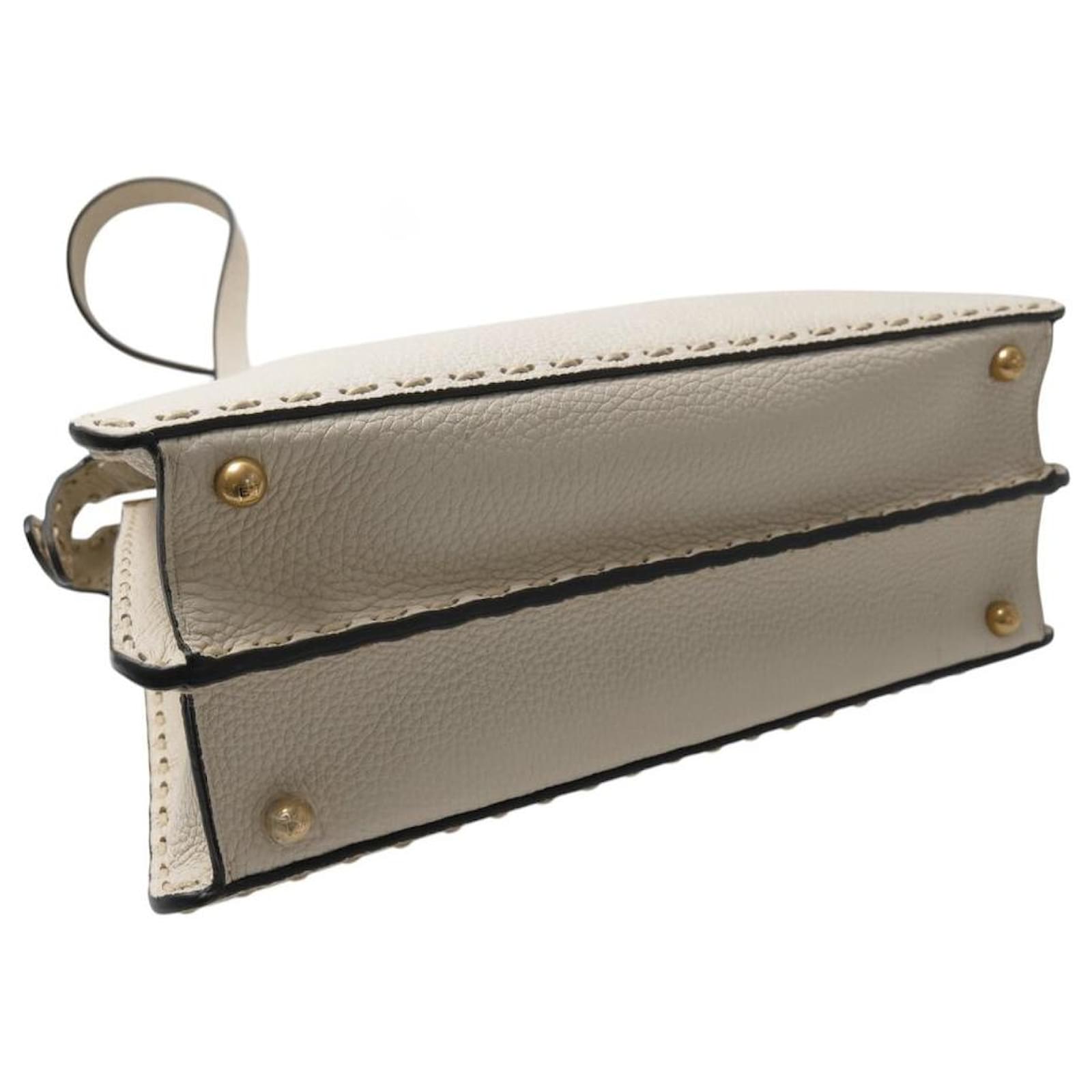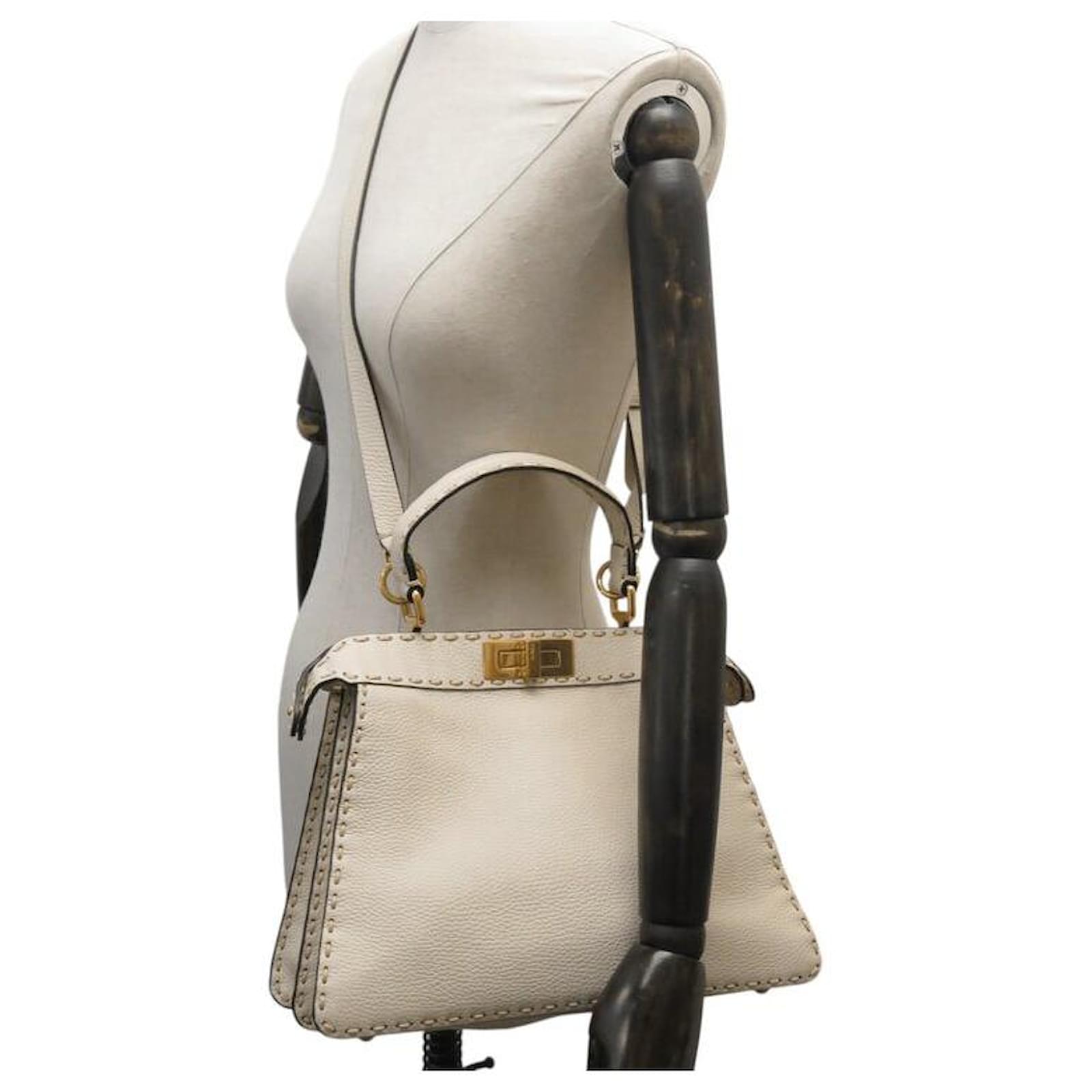 NEW FENDI PEEKABOO MEDIUM 8BN321 BEIGE GRAINED LEATHER HANDBAG