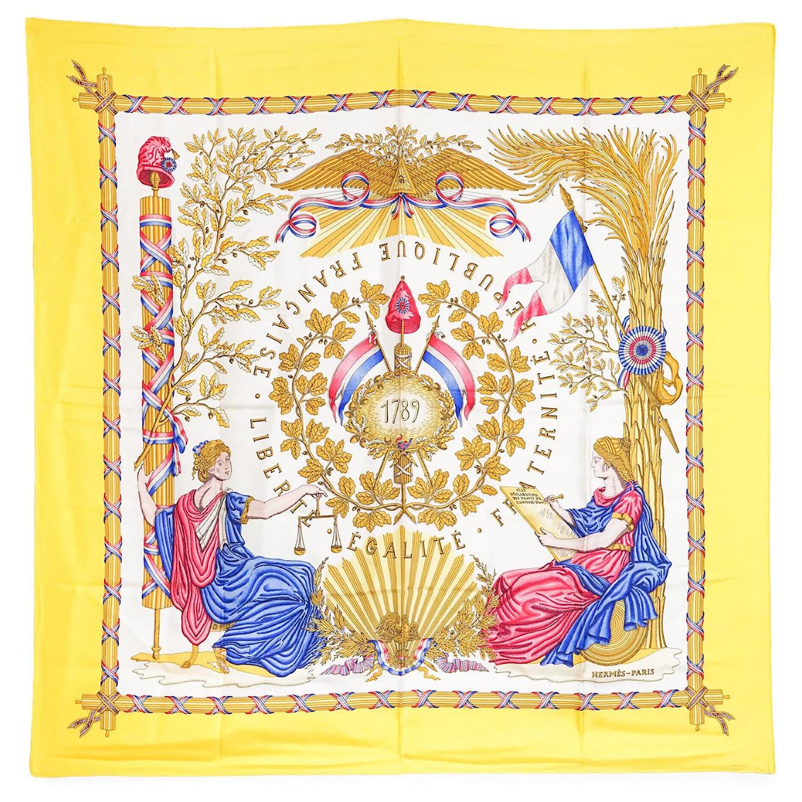 Hermès 1789 Liberty Equality Fraternity French Republic Silk Scarf 90 Yellow