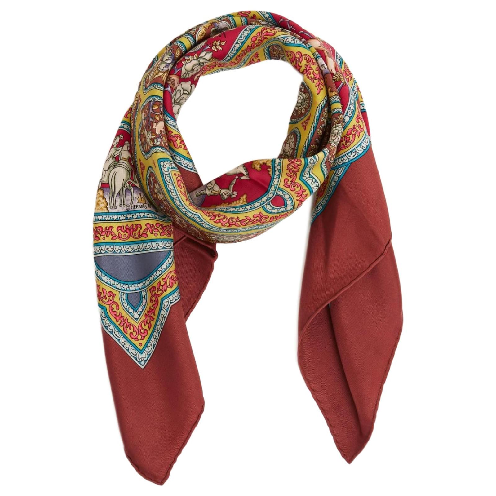 Hermès 2000 Square Scarf 90 Baschet Qalamdan Burgundy Silk Twill Scarf Hermes Dark red