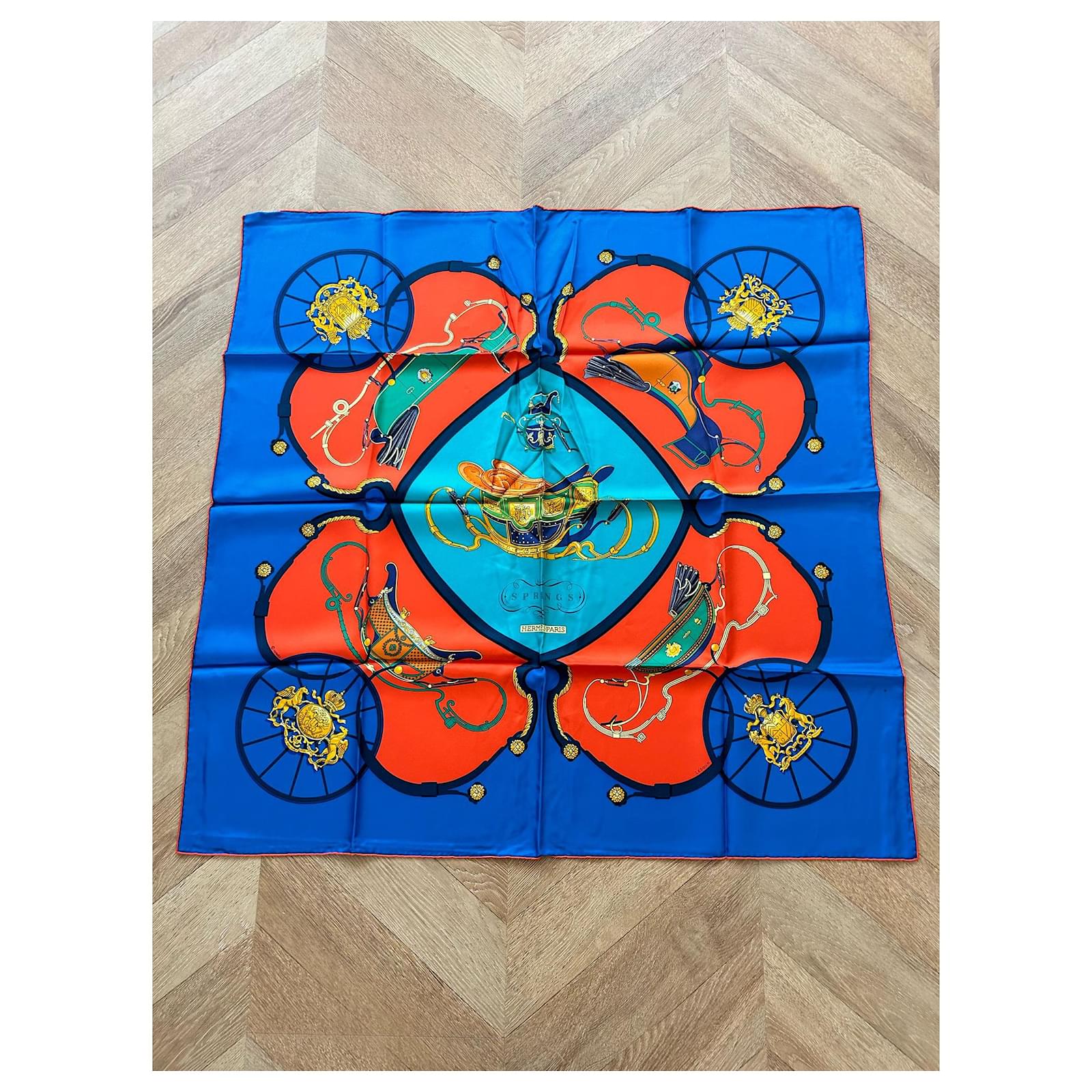 90cm silk square from Hermès Multicolore Springs model A tiny trace but invisible when worn otherwise in very good condition Sold alone