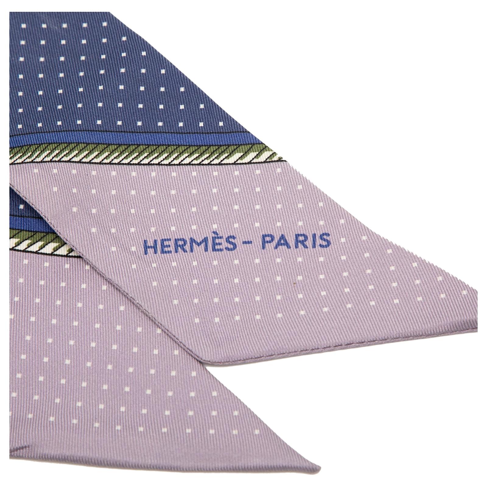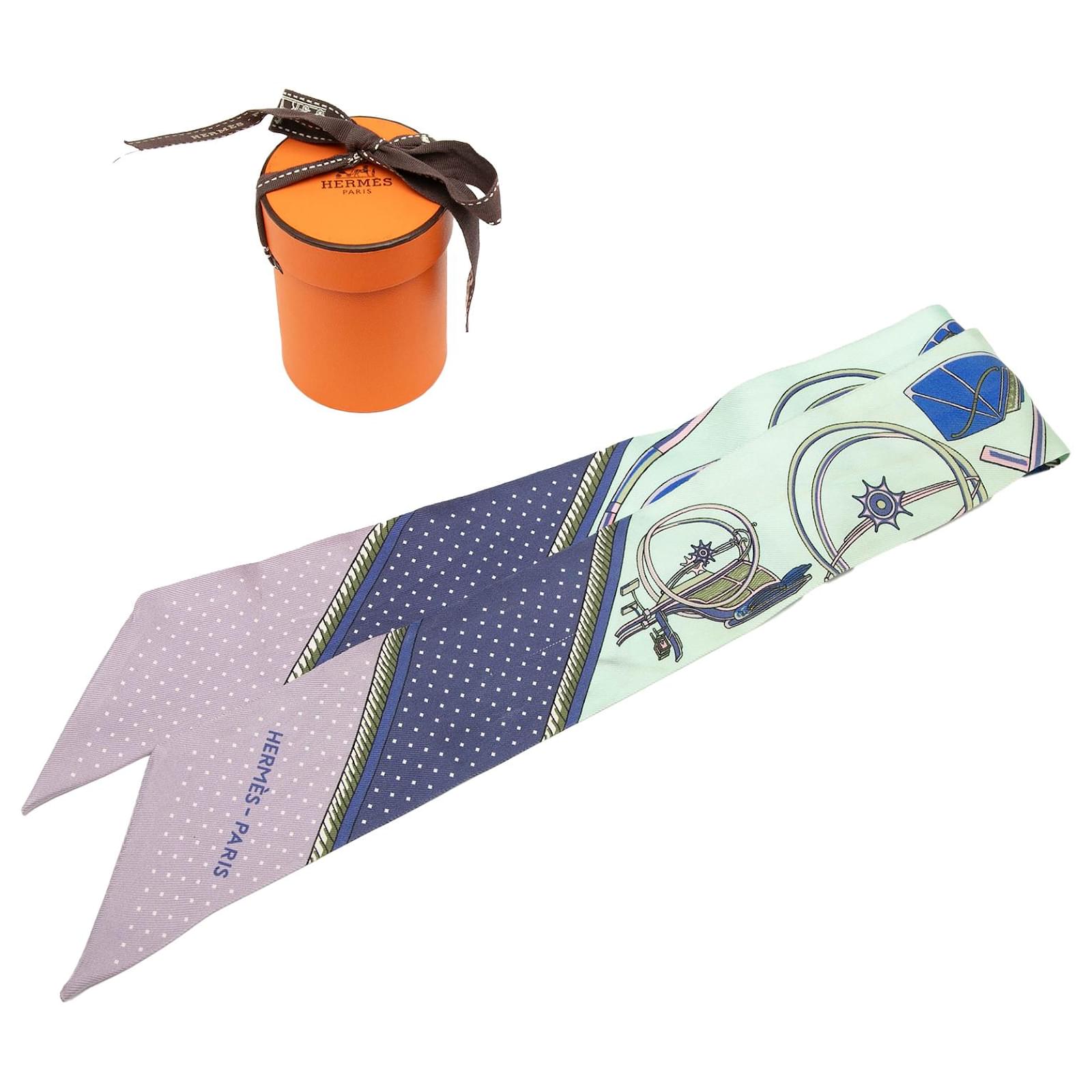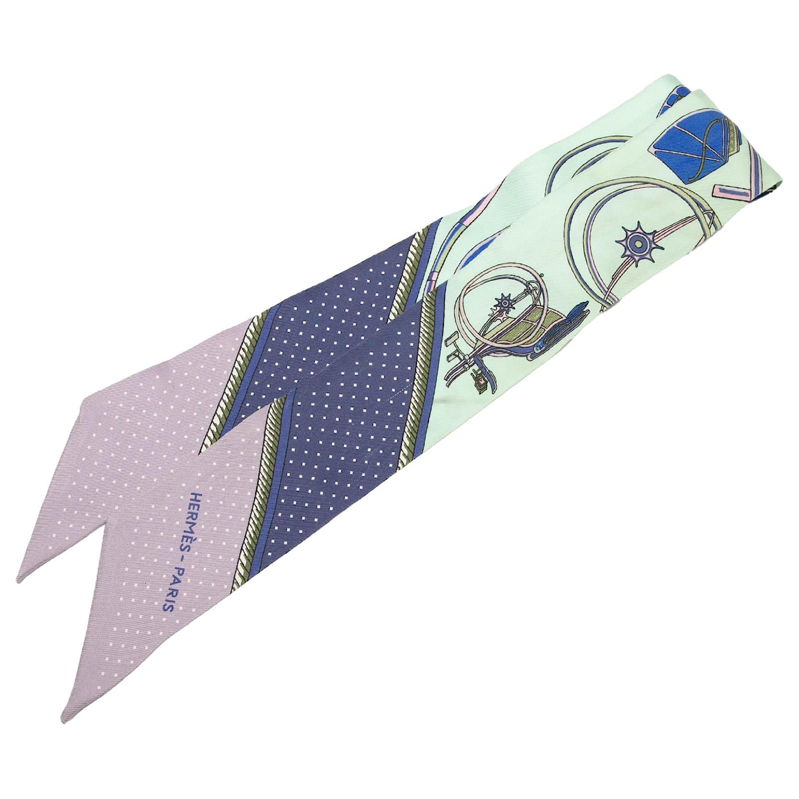 Hermès Blue Les Voitures a Transformation Silk Twilly Scarf