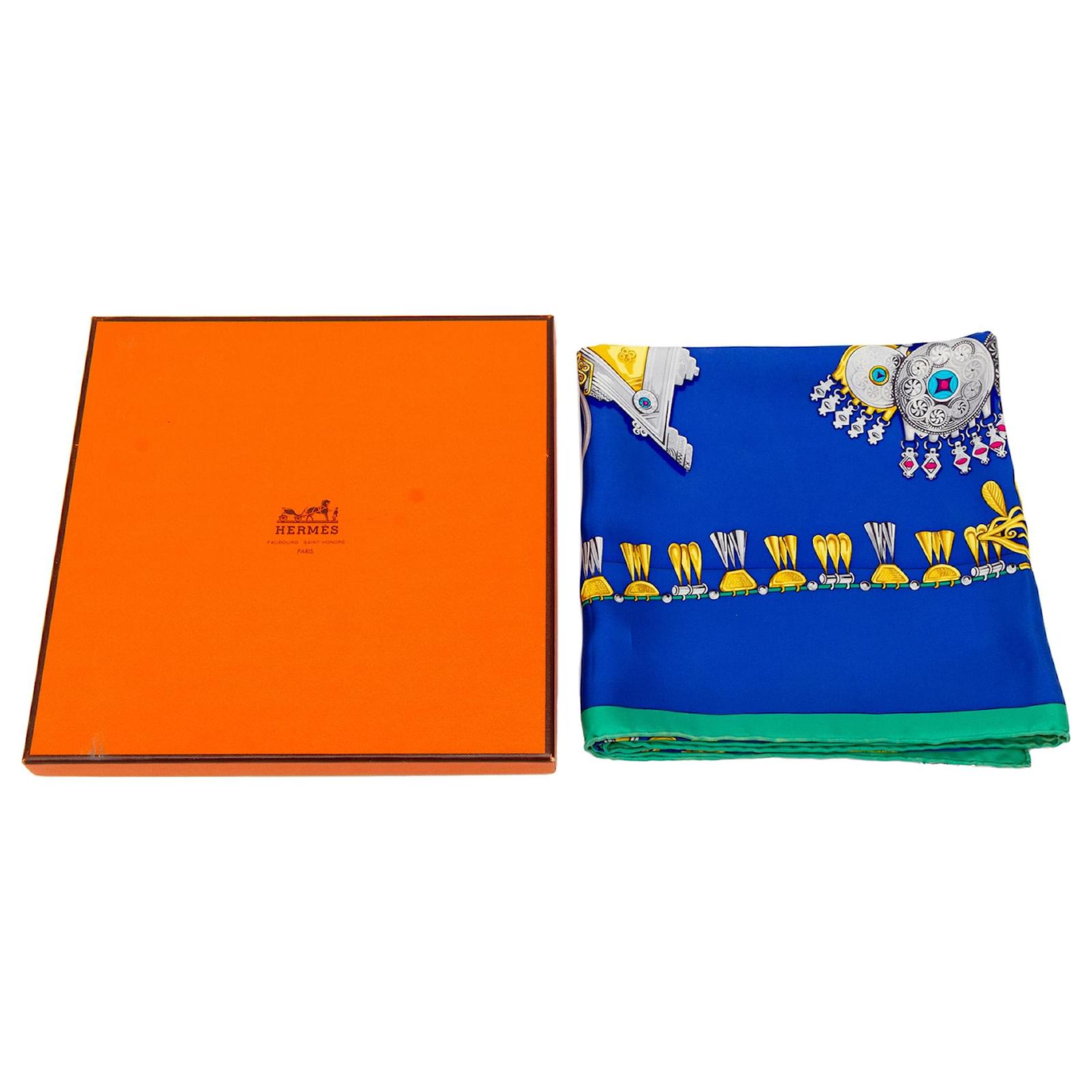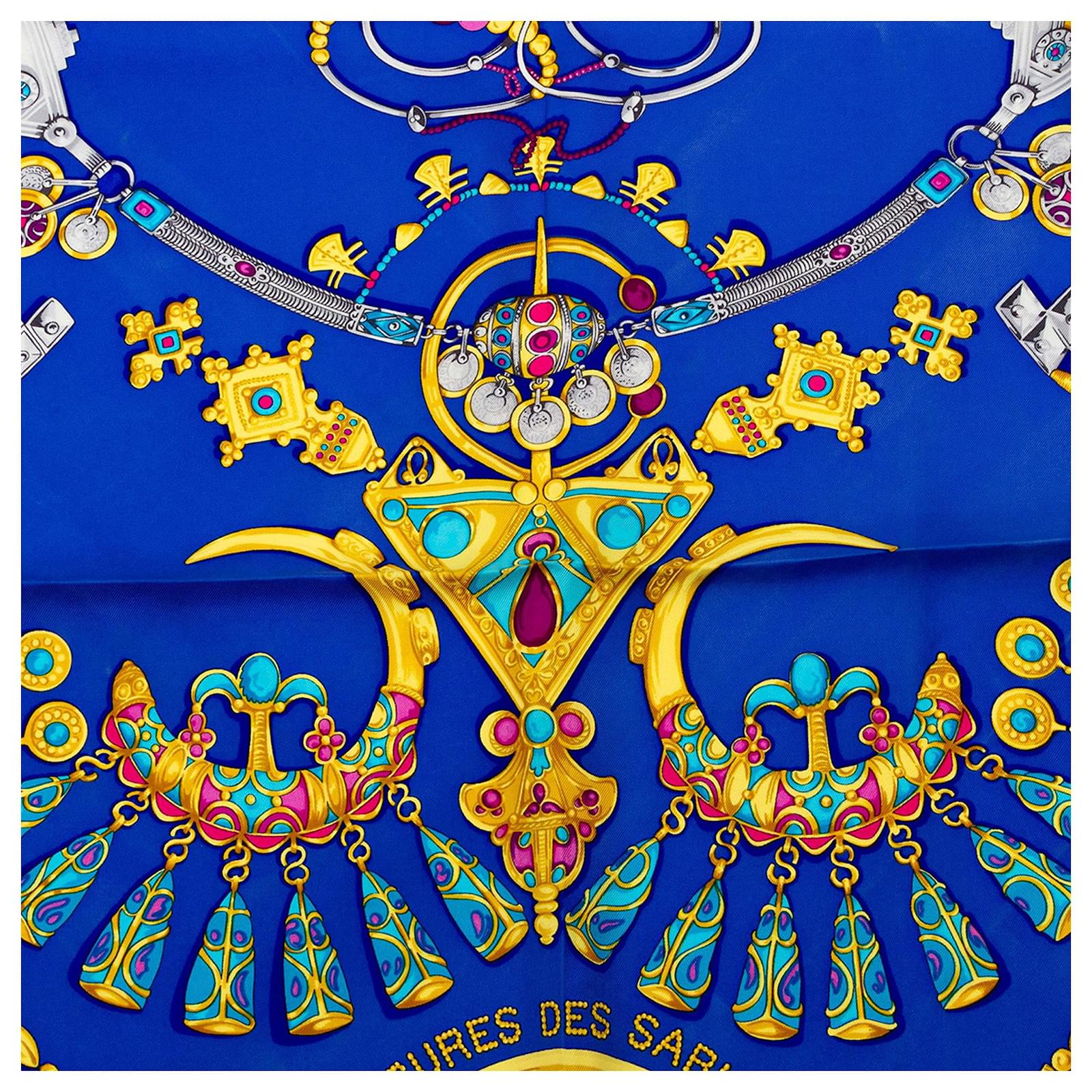 Hermès Blue Parures Des Sables Silk Scarf 90